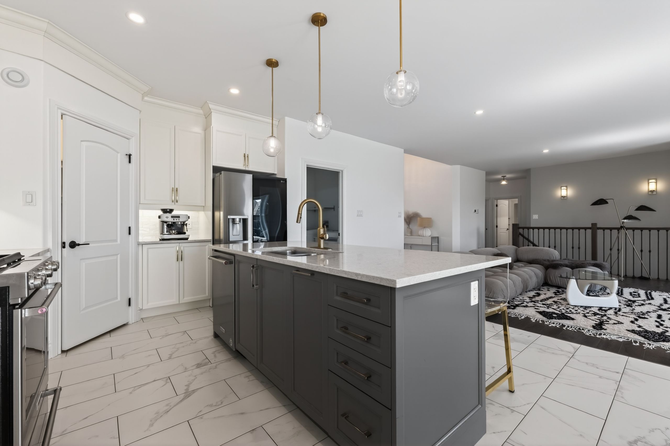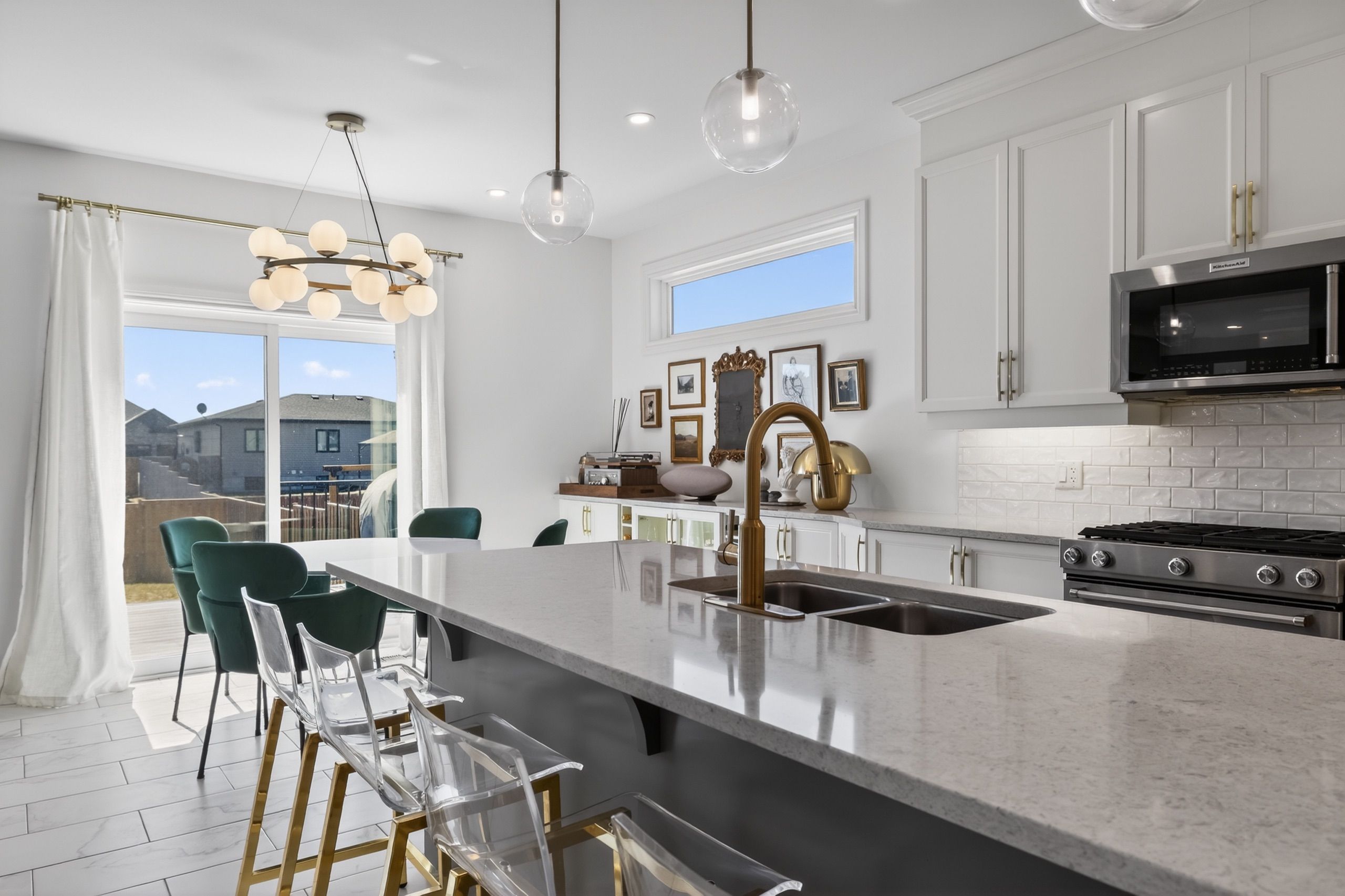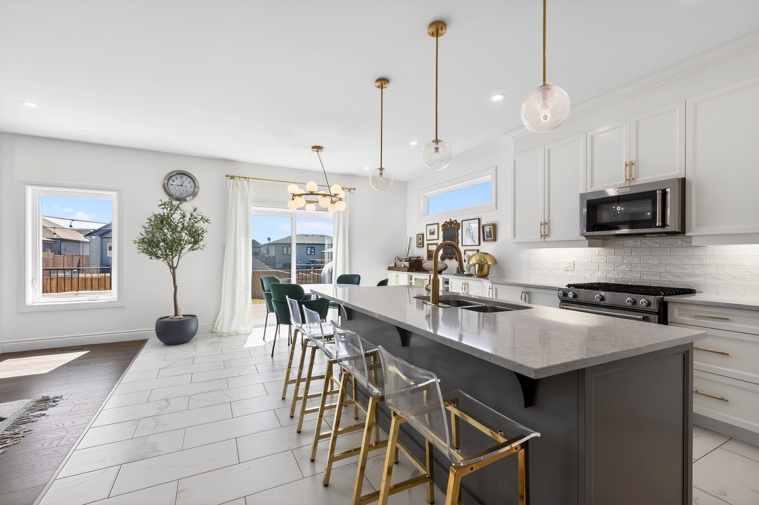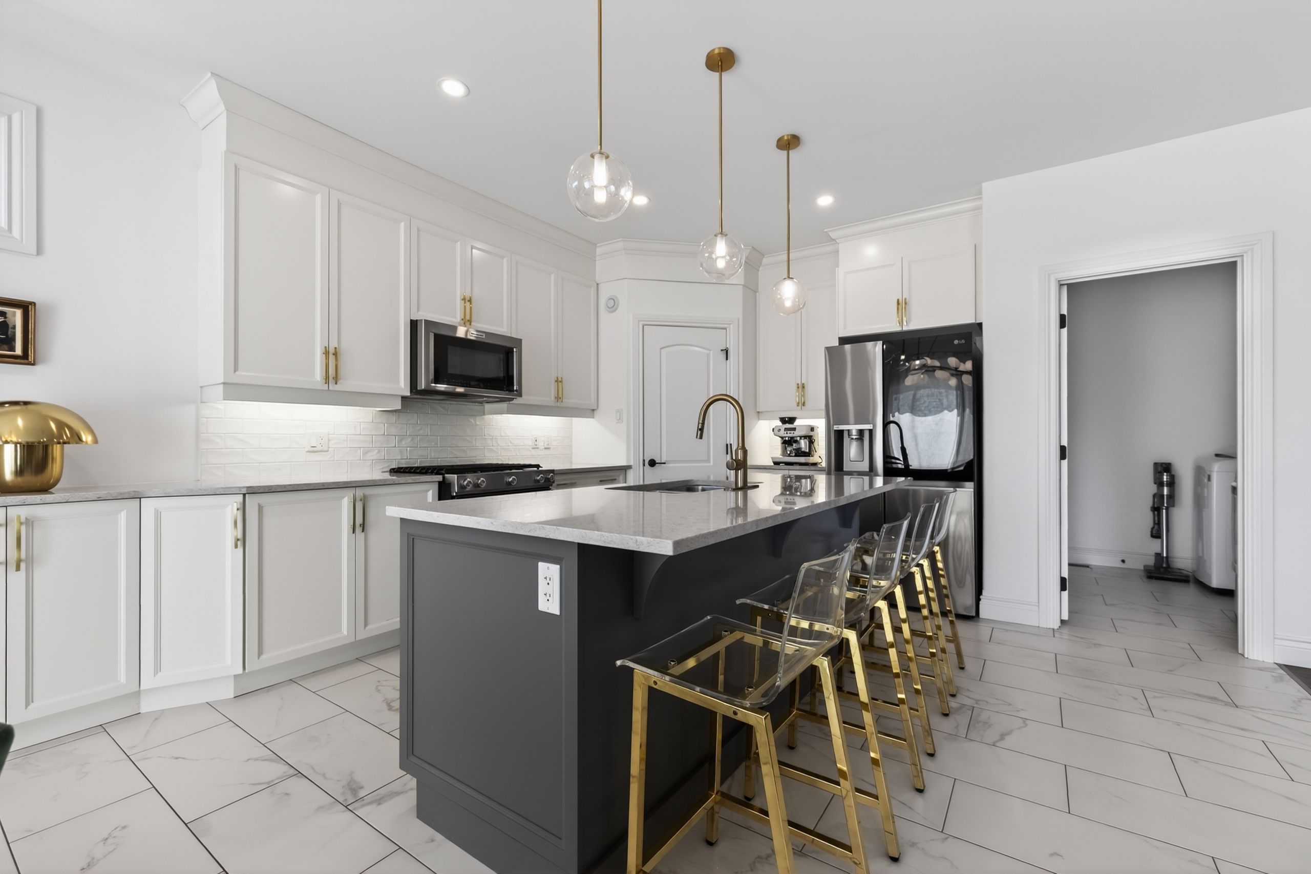 • Stunning kitchen includes quartz countertops, a walk-in pantry, and a large island.