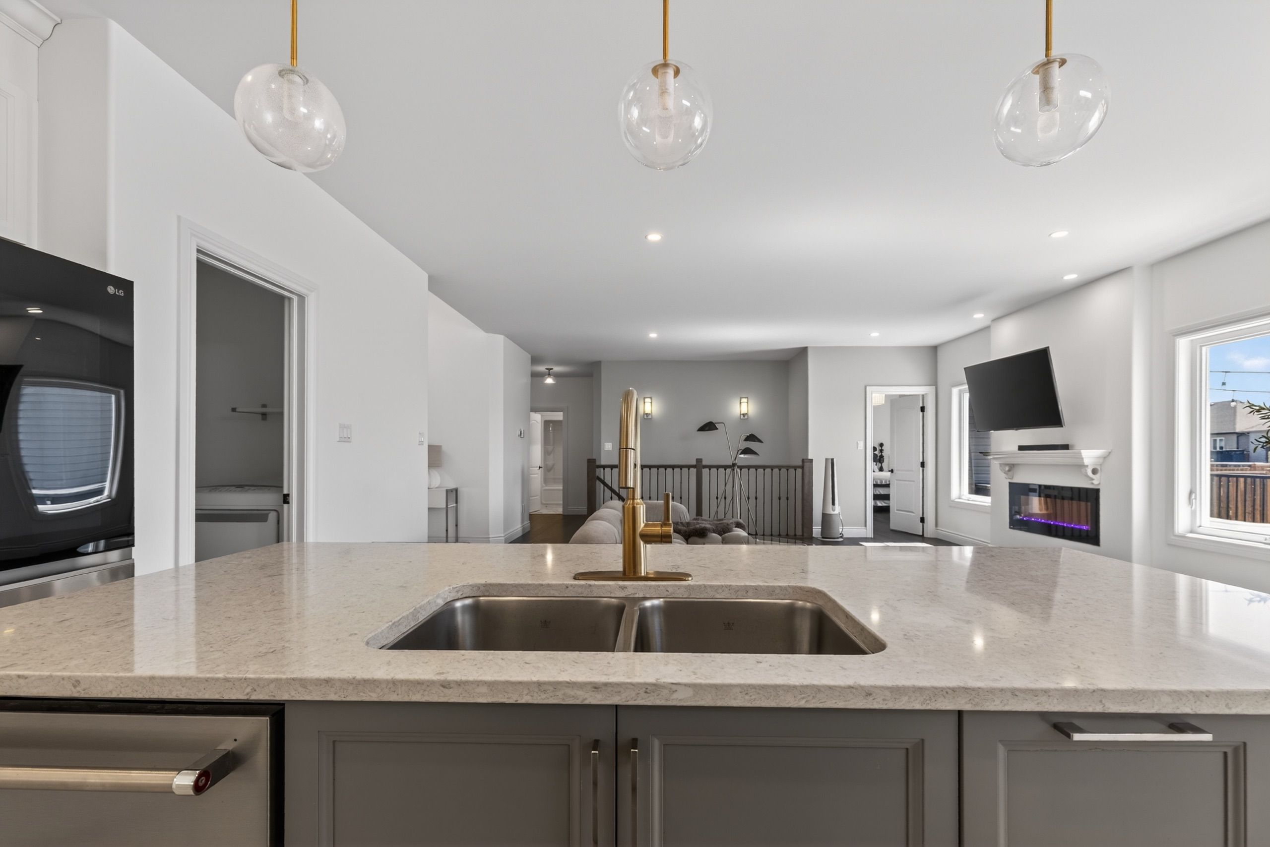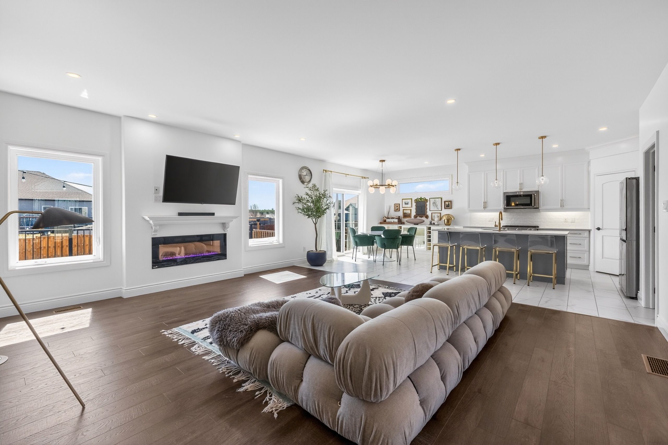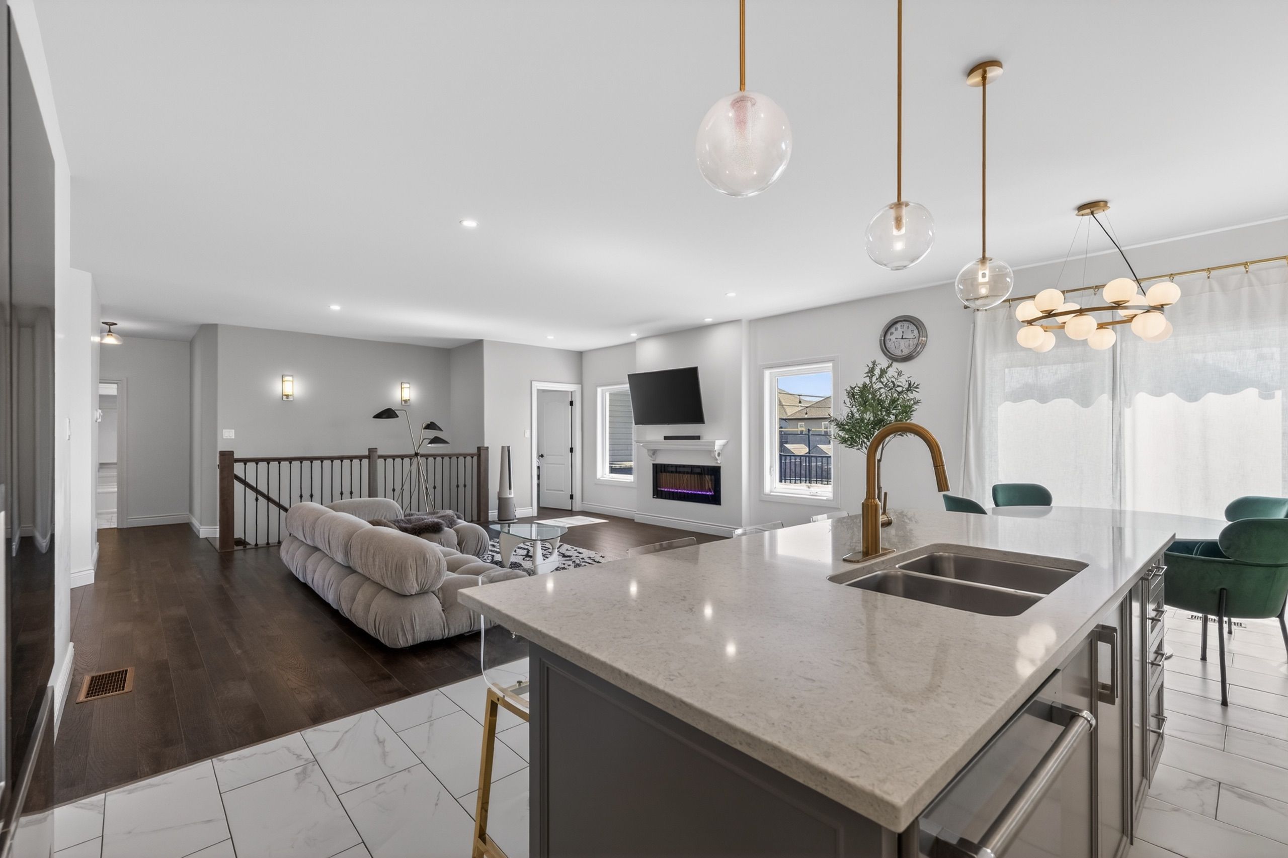 The highly coveted trillium model found in radtke estates makes an immediate impression with a welcoming front entry framed by soaring ceilings that create a striking sense of space and arrival. 6 nile street in petawawa offers an exceptional opportunity to settle into a newer home and make it distinctly your own. Spanning over 1,500 square feet on the main level, the open-concept living area is filled with natural light throughout the day, creating a warm and uplifting ambiance. The living room is anchored by a stunning fireplace and elevated by an elegant tray ceiling. The kitchen is a defining highlight of the home, showcasing stunning quartz countertops, a highly functional walk-in pantry, coffee station, and a super-sized island that naturally becomes the hub of conversation and connection. Perfect for casual dining, the island offers generous seating and exceptional prep space while keeping everyone comfortably connected to the heart of the home. The dining area flows seamlessly to an expansive composite deck, with eastern exposure welcoming beautiful early morning sunshine. A truly spacious primary suite features a walk-in closet designed to support elevated, well-organized wardrobe needs, and an exceptionally well-appointed ensuite complete with a deep standalone soaker tub and an impressive glass-and-tile shower. Two additional bedrooms share a second full bathroom, while the main-floor laundry and mudroom has easy access from the attached double garage. The lower level remains unfinished and ready for your vision-an expansive open space offering the freedom to design additional bedrooms, recreation areas, home gyms, or storage exactly the way you want them, adding meaningful value over time as your plans take shape. This home is move-in ready while still offering room to personalize and expand over time with space that adapts easily to the way you live today-and the way you may want to live tomorrow.