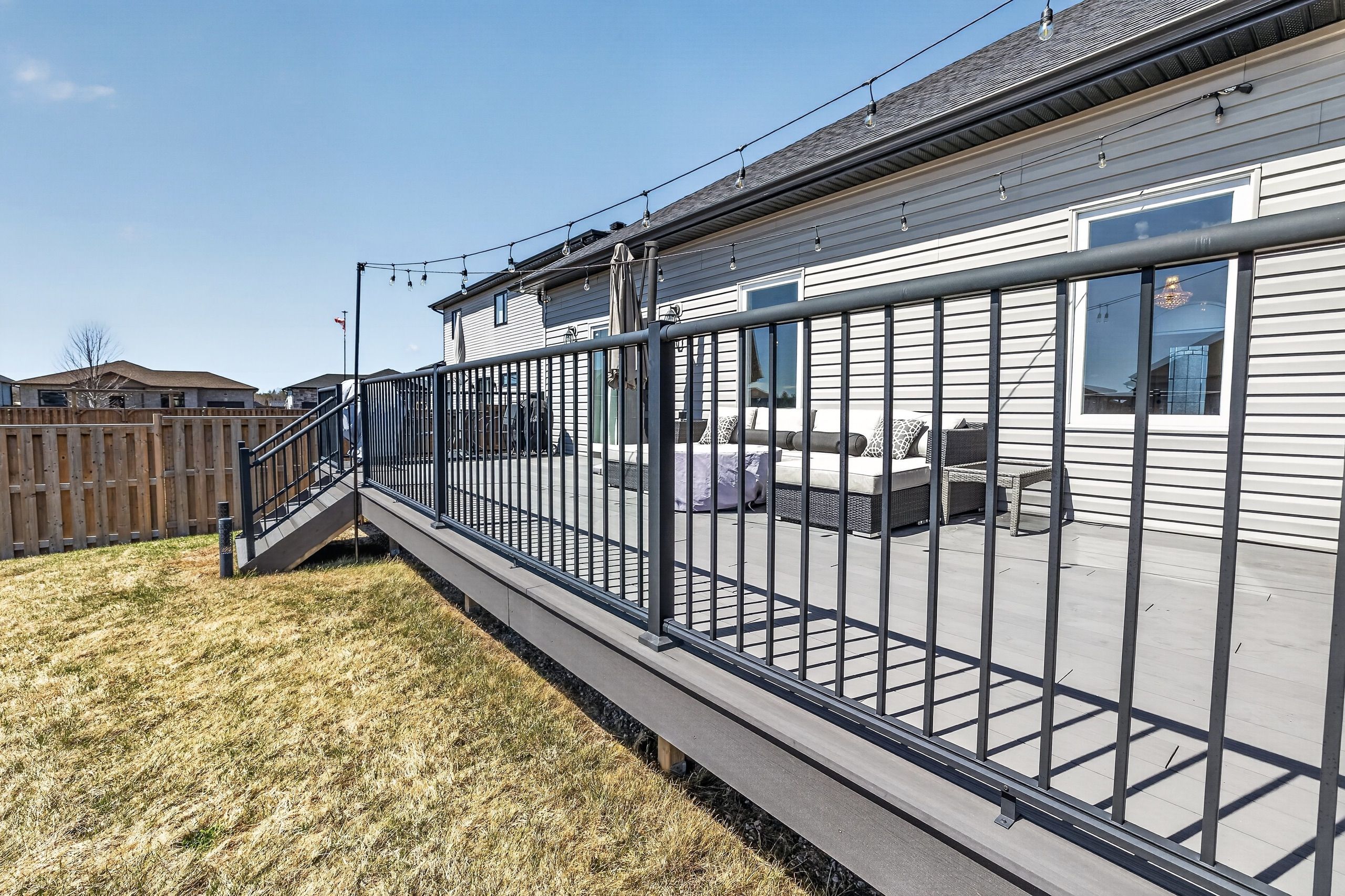 • Expansive composite deck with morning sun, perfect for outdoor relaxation.