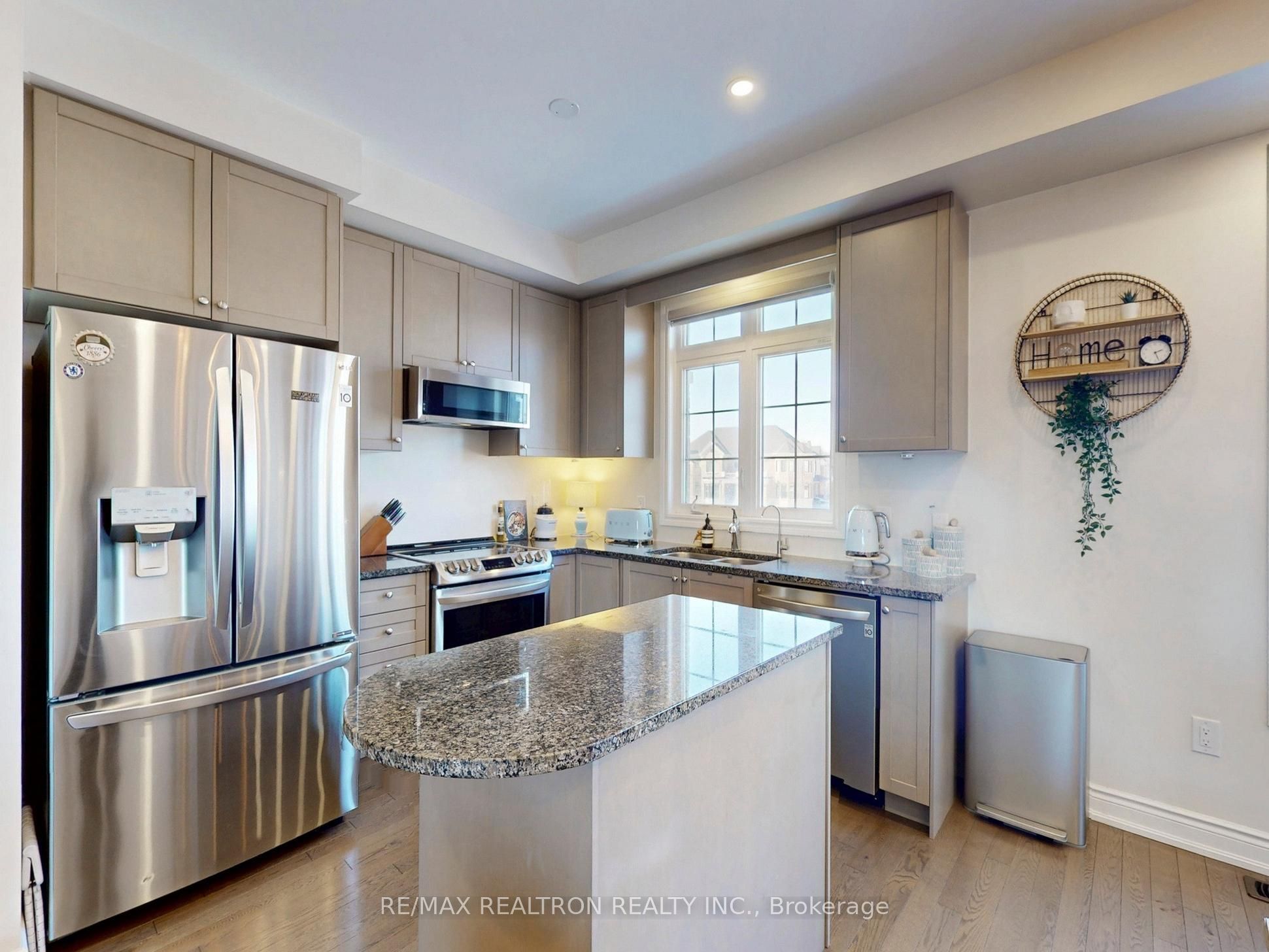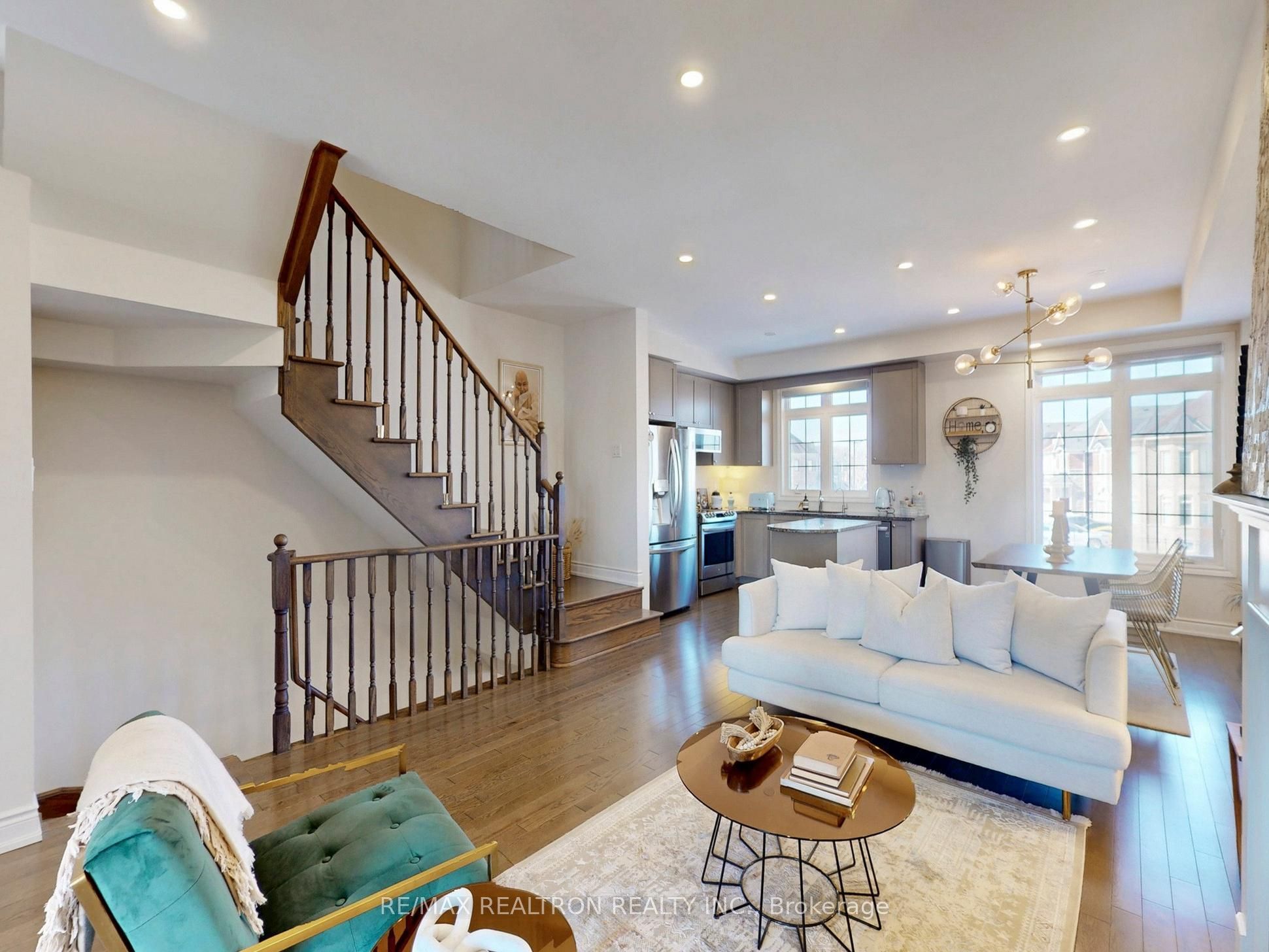 Rare freehold townhome offering modern finishes, private outdoor living, and unbeatable walkable convenience in one of the area's most desirable family-friendly communities. Well-maintained by its original owner for the past six years, this bright and spacious home features 3 generous bedrooms and 4 bathrooms with a thoughtfully designed layout ideal for modern living. The ground-level family room offers a walk-out to a charming porch, creating a versatile space perfect for relaxing, working from home, or welcoming guests. The sun-filled main level features an open-concept great room with fireplace and large windows, seamlessly connected to a gourmet kitchen with granite countertops, centre island, and upgraded stainless steel appliances. Step out to the large covered patio - perfect for entertaining or relaxing. Hardwood flooring runs throughout the ground floor, main floor, and second-floor hallway. The primary bedroom includes a private balcony, walk-in closet, and 4-piece ensuite, while two additional well-sized bedrooms offer comfort and practicality for family members or guests. Perfectly situated in a prime location, just a 2-minute walk to two bustling shopping plazas offering grocery stores, banks, restaurants, gyms, medical clinics, daycares, restaurants and the library. Enjoy easy access to parks, scenic trails, schools, and major highways including hwy 407 and 401. Surrounded by thriving business hubs, this high-demand neighbourhood delivers the ideal balance of convenience, comfort, and community. A move-in ready home offering lifestyle, and everyday ease in a truly walkable neighbourhood.