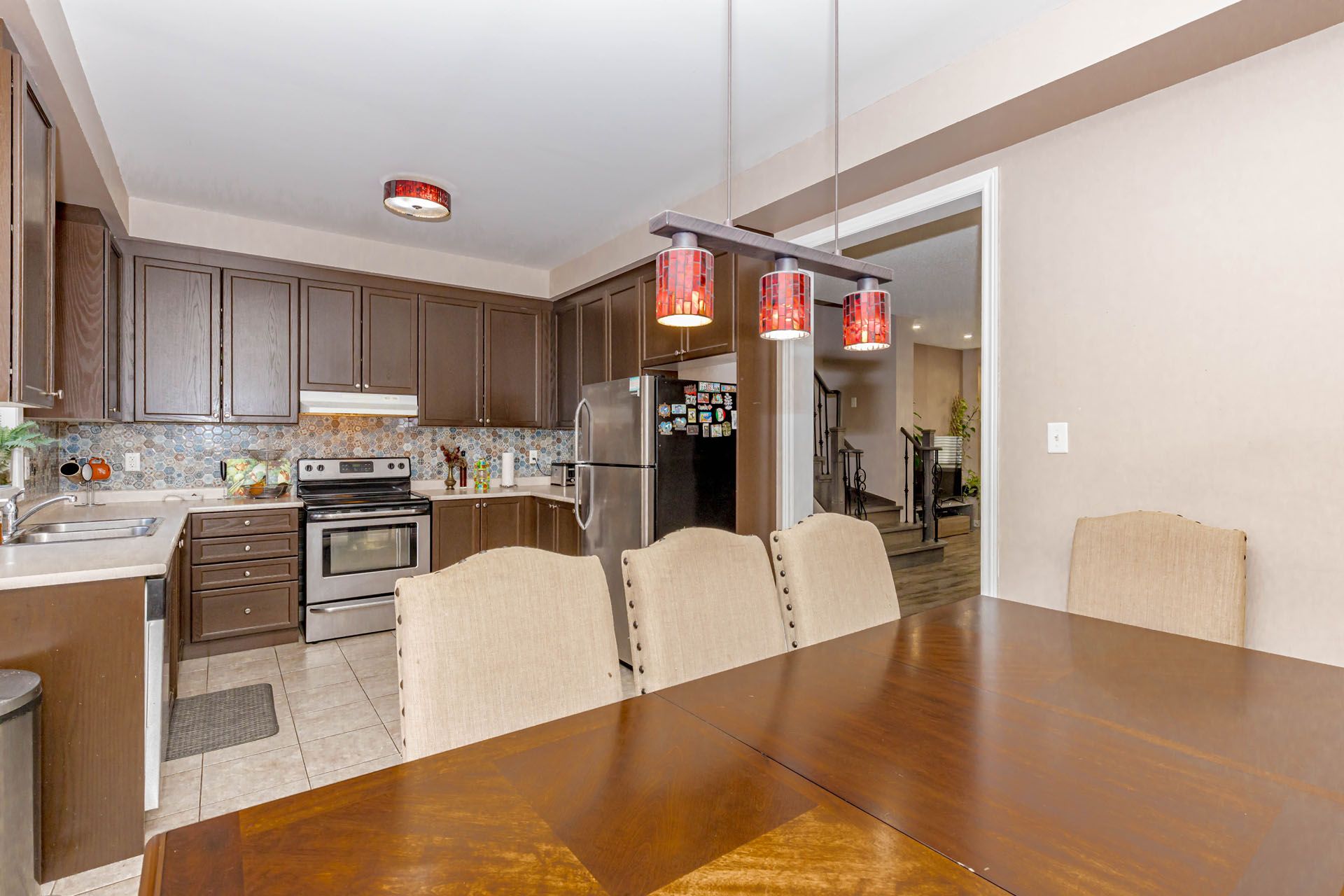 Beautiful. Spacious. Move-in ready! This 3 + 1 bedroom freehold townhouse is lovingly maintained. It features 9ft ceilings, open concept living/dining, breakfast area w/ walk out to a huge deck. Freshly painted, new flooring. Oak railings, upgraded main door. Ground level has 3pc and bedroom can be a used as a rental potential. Walkout to fully fenced yard. Close to school, transit, park, go, shopping, easy access to hwy 401/407.