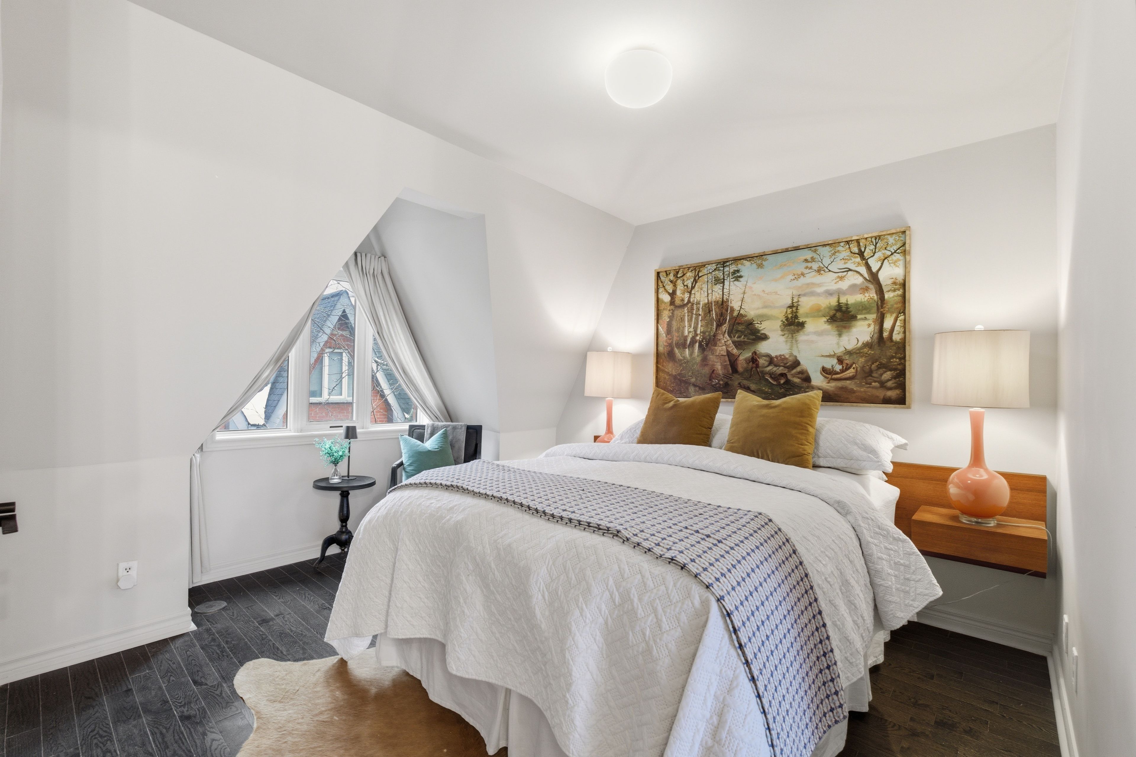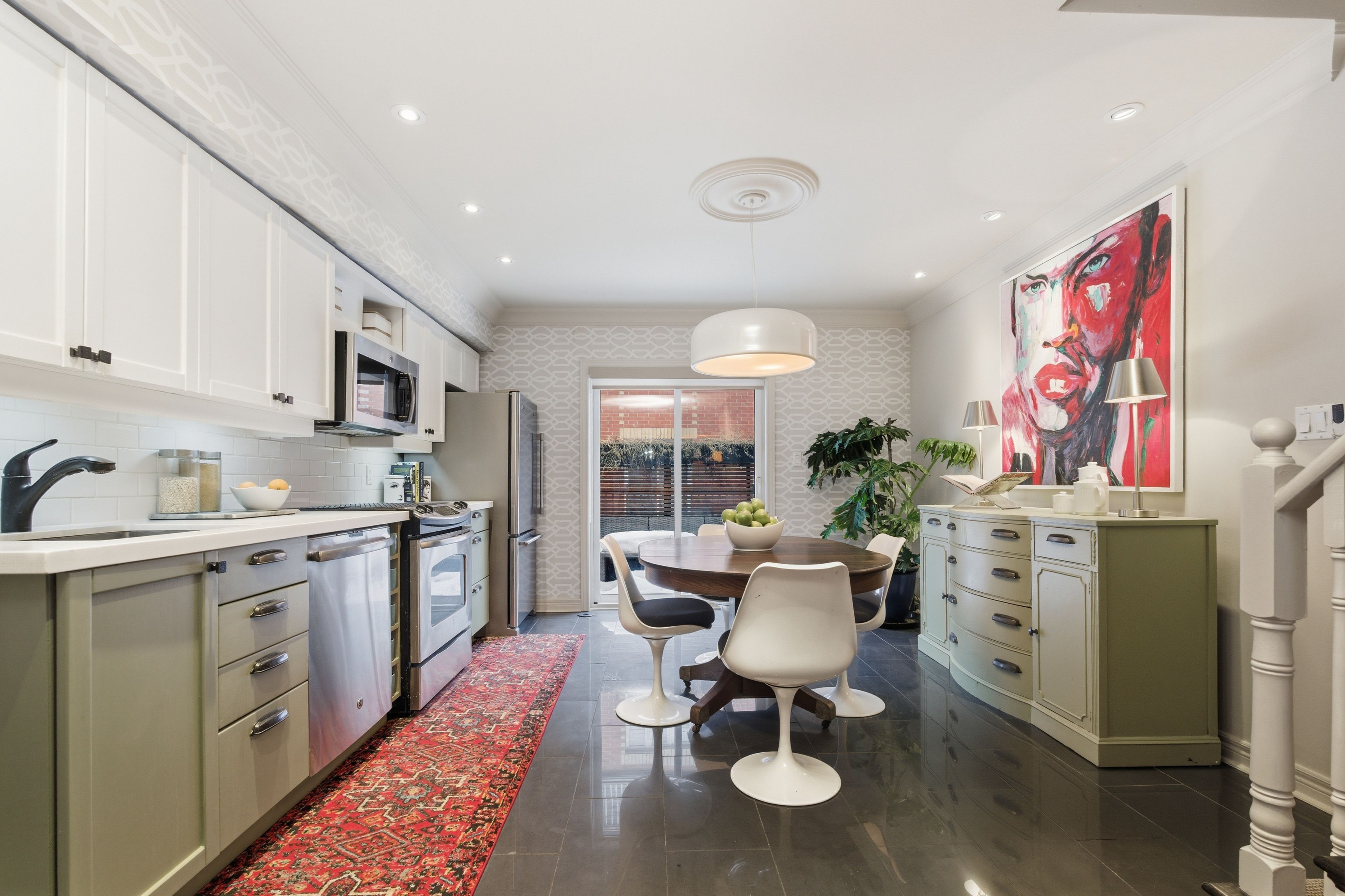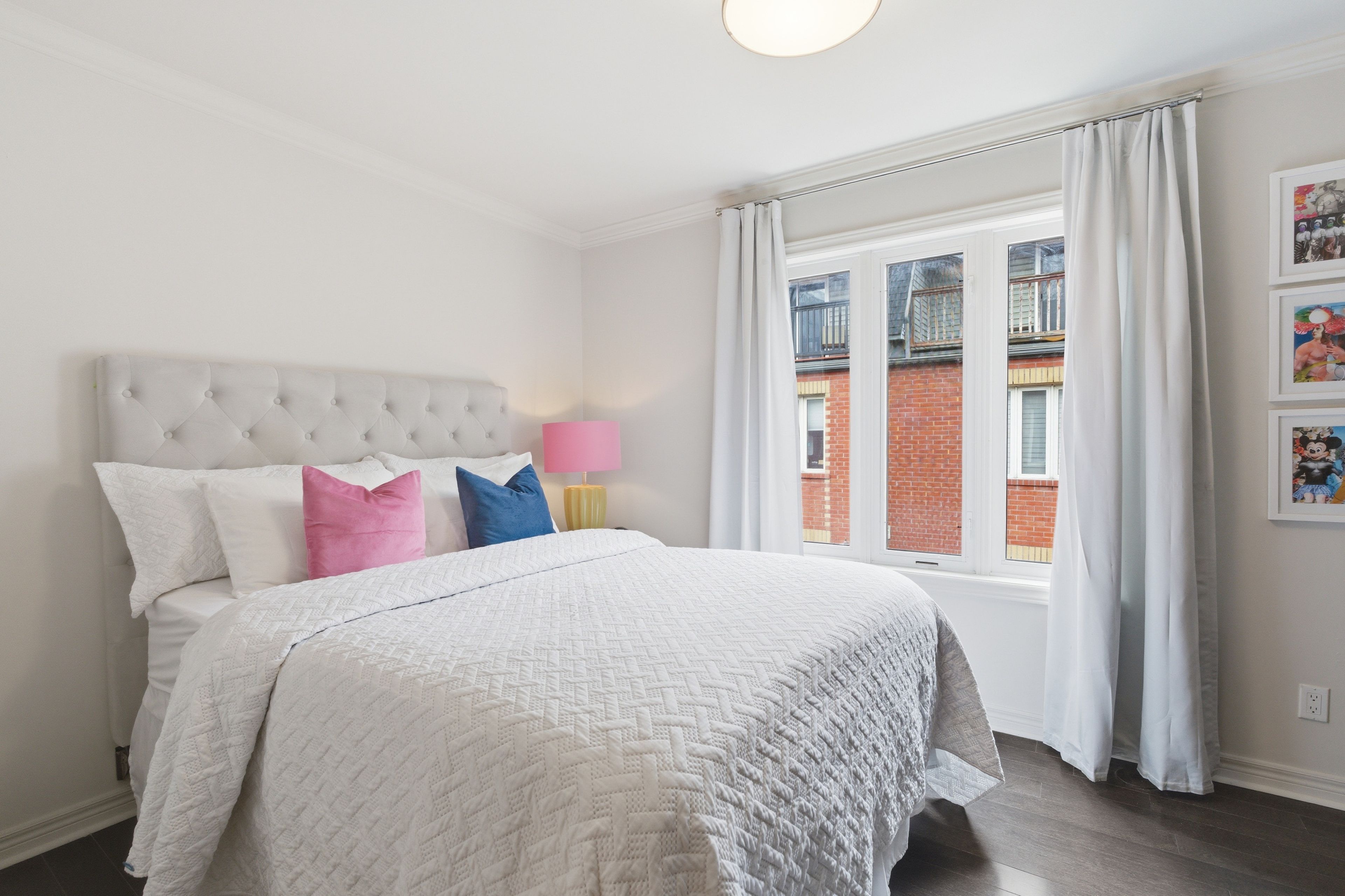 Tucked away on a quiet lane in corktown, this 3-storey freehold townhouse offers a rare sense of calm just minutes from the city energy. The open concept main floor living space features nearly 10-foot ceilings, highlighted by classic wainscoting and crown moulding. Hardwood floors run throughout, complemented by a new stair runner that adds warmth. The kitchen has freshly painted cabinets and quartz counters, functional as-is with plenty of potential for a future refresh. Walk out to the deck with a gas line for convenient bbqing and a comfortable spot to lounge. The second level with two bedrooms and a full bathroom and laundry in between. The entire third floor is dedicated to the primary suite, featuring a fully renovated ensuite in 2023 with marble mosaic tile, a custom vanity, and a curbless shower. Just off the bedroom, the den provides flexible space, ideal for a sitting area, home office, or the opportunity to create your dream walk-in closet, and also opens to a private balcony. The basement provides additional living space, including a framed-out future washroom with plumbing rough-in (currently used as a storage room), along with direct access to the garage. The location is hard to beat. Queen east shops and cafés are a short walk away, streetcars along king, queen, and dundas are nearby, and neighbourhood favourites like corktown common and underpass park offer easy access to green space.