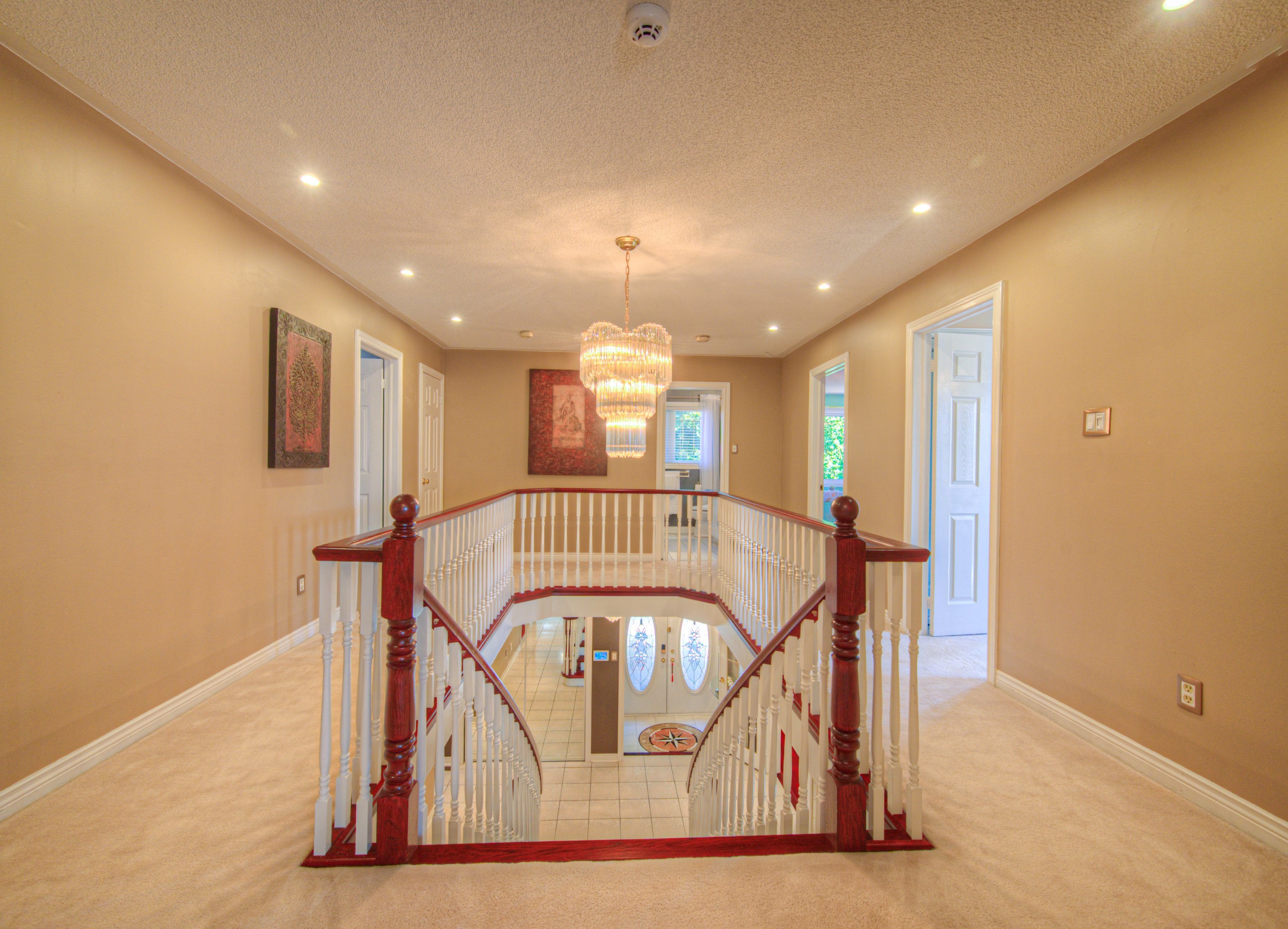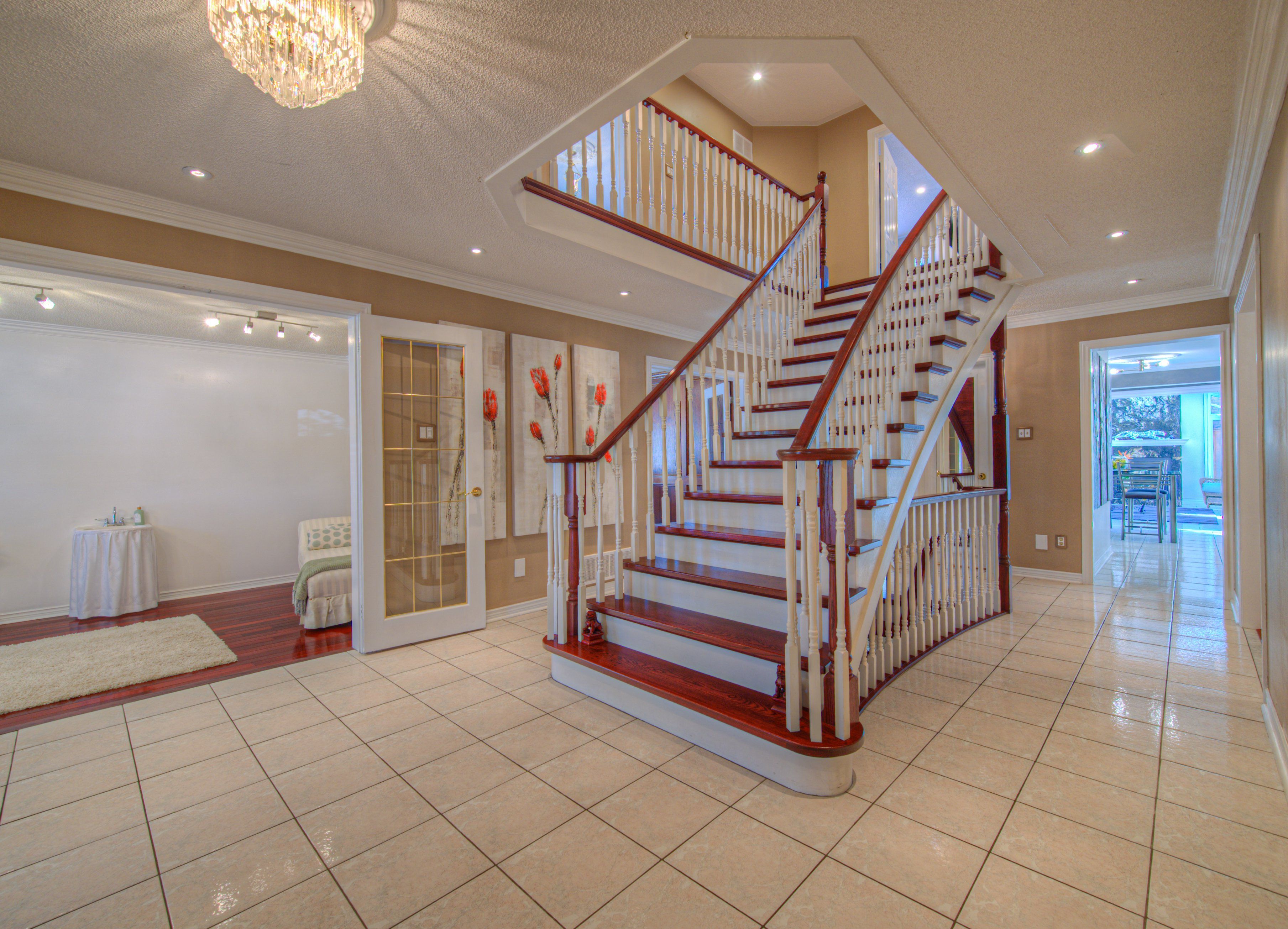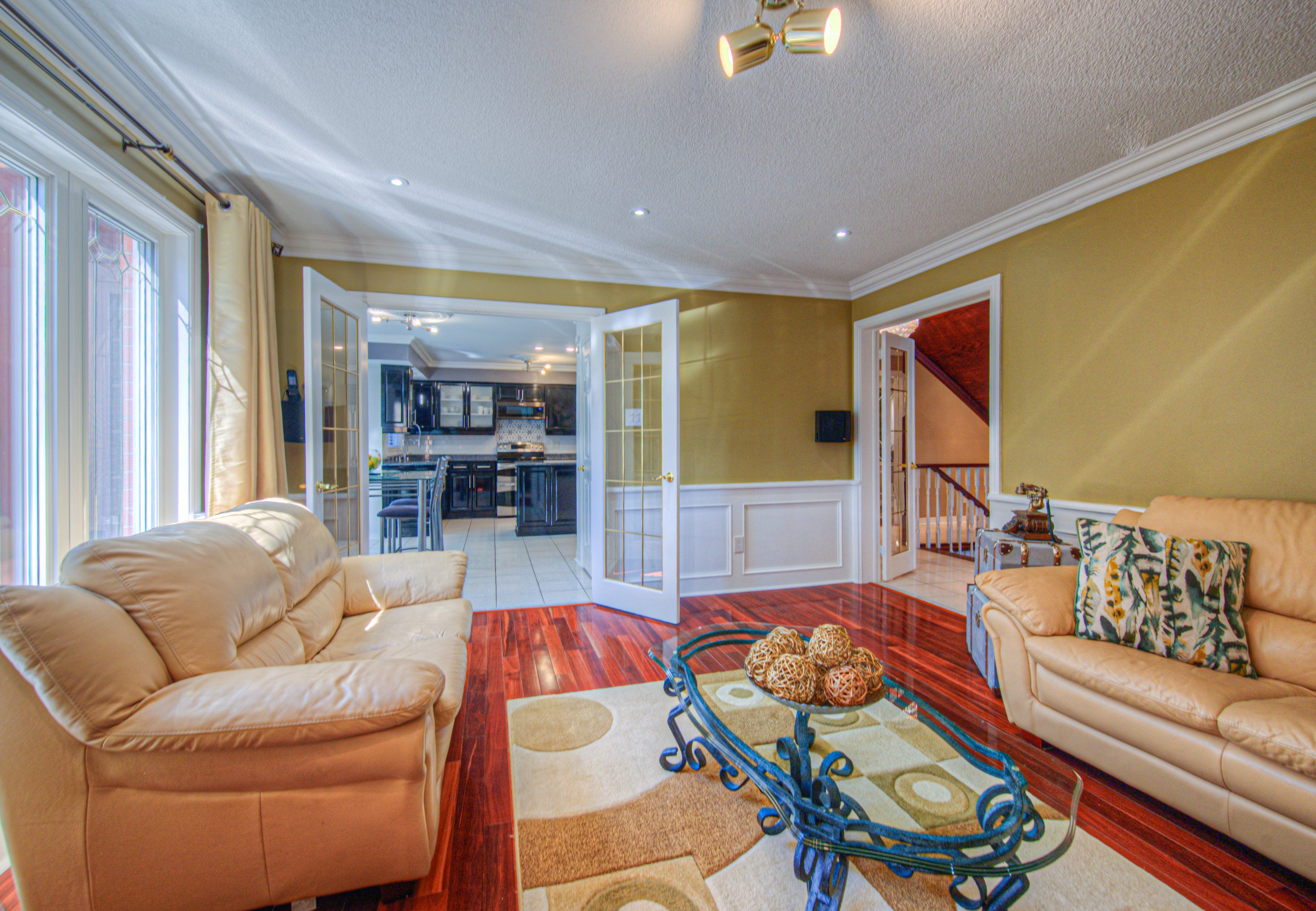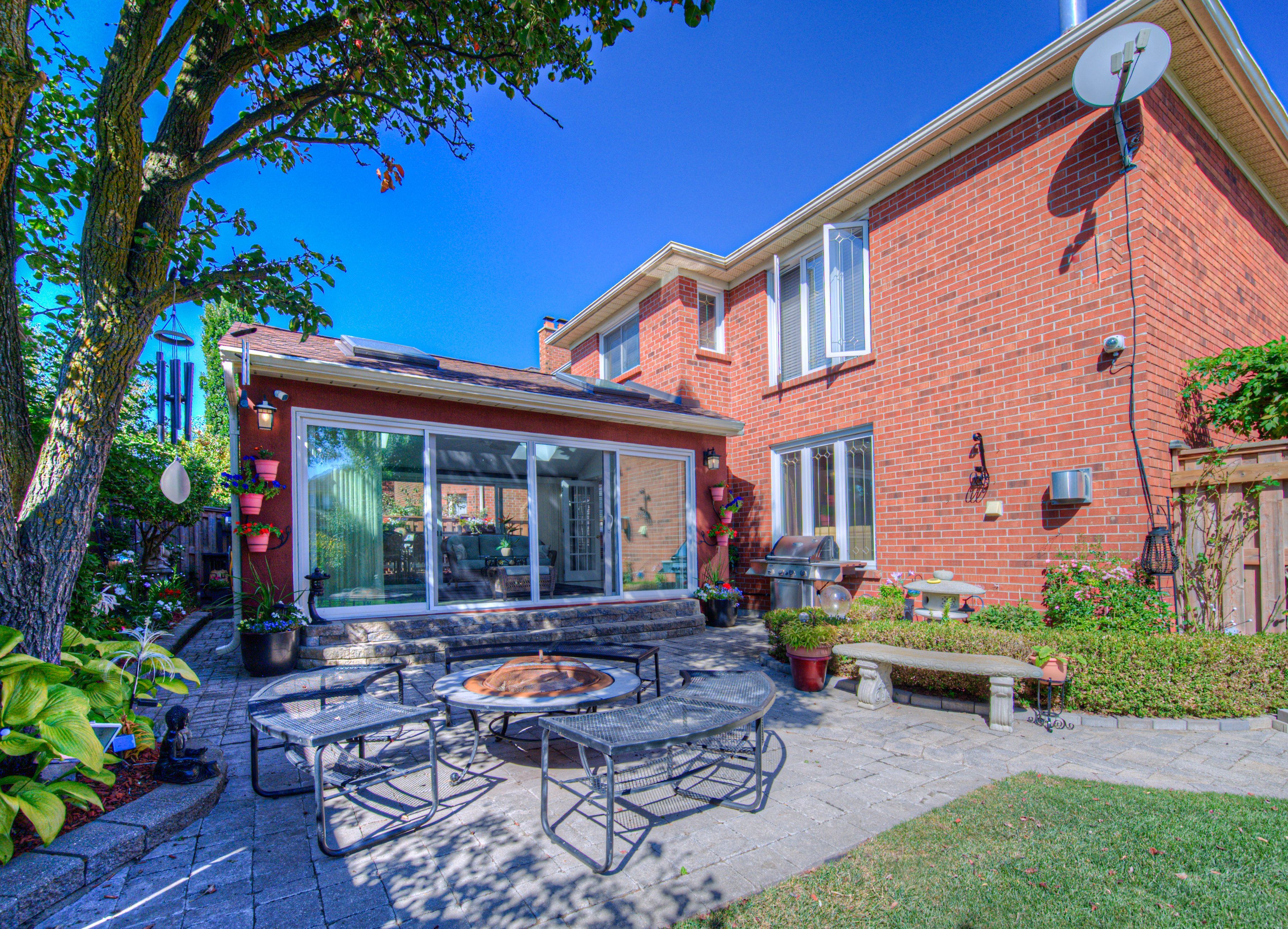 Former model home occupied by loving original owners! Absolutely stunning home with in-law or teenager's suite on a private side of the home with walk-in closet and full bath! Meticulously maintained feng shui oriented home with a heated sunroom and a stunning staircase built to size in the home! You will be charmed by the elegance and charm of this home with extensive crown molding, hardwood, wrought iron special designed mirrors & cabinetry, extensive granite & marble as soon as you step into this home that just keeps going on and on. The home spans over 5,000 sqft of living space with 5 bedrooms, 3. 5 bathrooms, amazing sunroom with gas fireplace and heated marble flooring open to both sides of the yard with sliders, 4 bedrooms on second level with 3 full baths, master bedroom with two walk-in closets or make one into nursery plus a spa like ensuite with a soaker tub, glass shower, heated towel bar, his & hers sinks, marble heated floors; fully finished basement with oversized l-shape rec room with gas fireplace, exercise room, extra pantry/wine cellar. The main floor has an elegant office with wood paneling, formal dining room with a beautiful one piece special design mirror, living room/working room for home business, family room/den with a cozy gas fireplace, modern chef's kitchen with marble countertops with top of the line appliances! The yard is fully fenced, has mature trees and is full of beautiful perennials. The home was fully renovated in 2018-19 kitchen, basement, sunroom, mudroom, spa ensuite, powerless kinetico water softener with torking system, ro, eaves guard, all new potlights, all windows, front door. Other updates include: roof 2012, ac 2017, central vacuum, furnace & hot water heater nov 2024, gas hook up for bbq. Double garage plus the interlock driveway can park 6 cars! Just minutes from 401, shopping, schools, trails, this home is a rare find that offers a perfect blend of luxury and elegant living style in a family oriented neighborhood.
