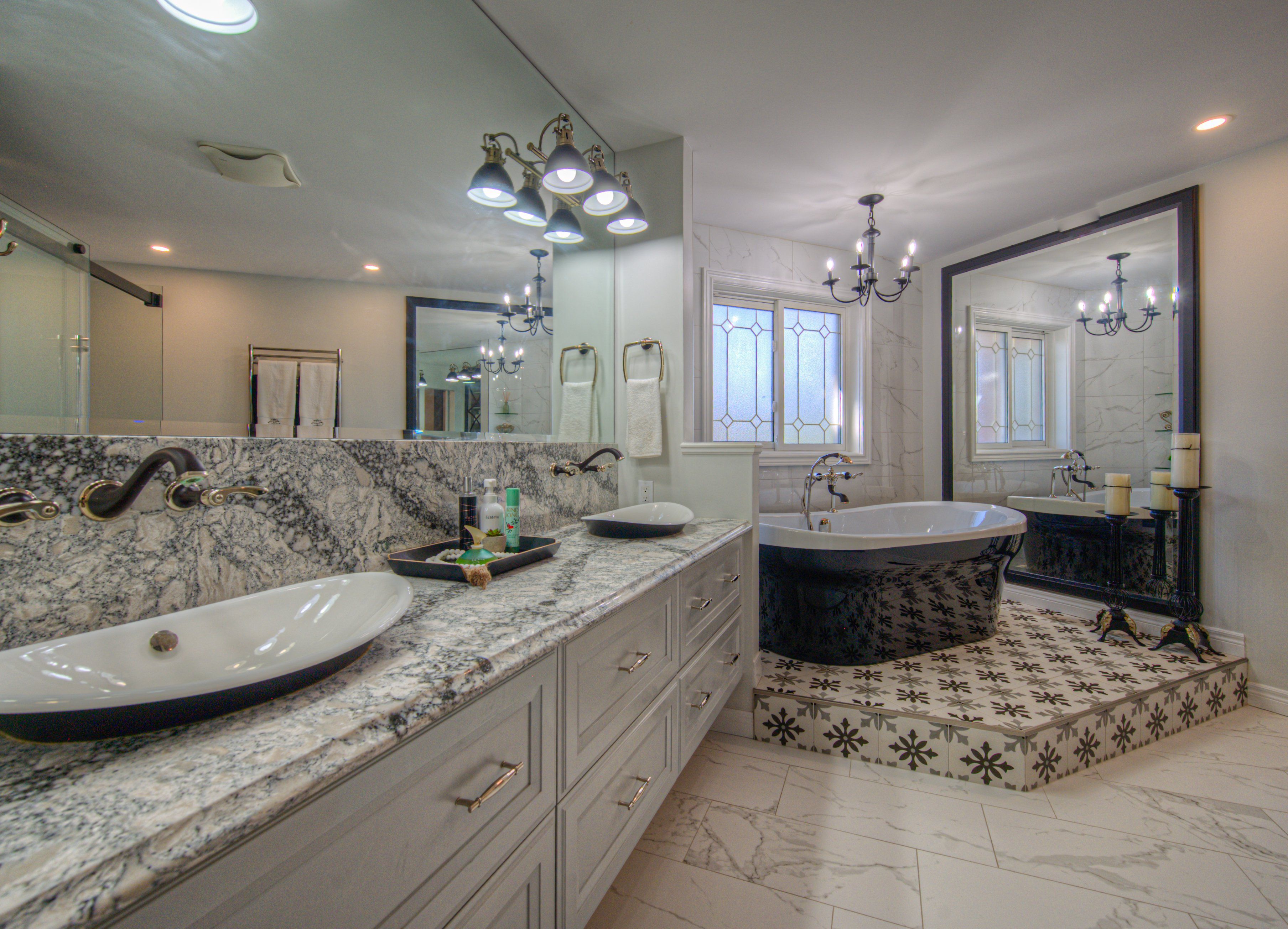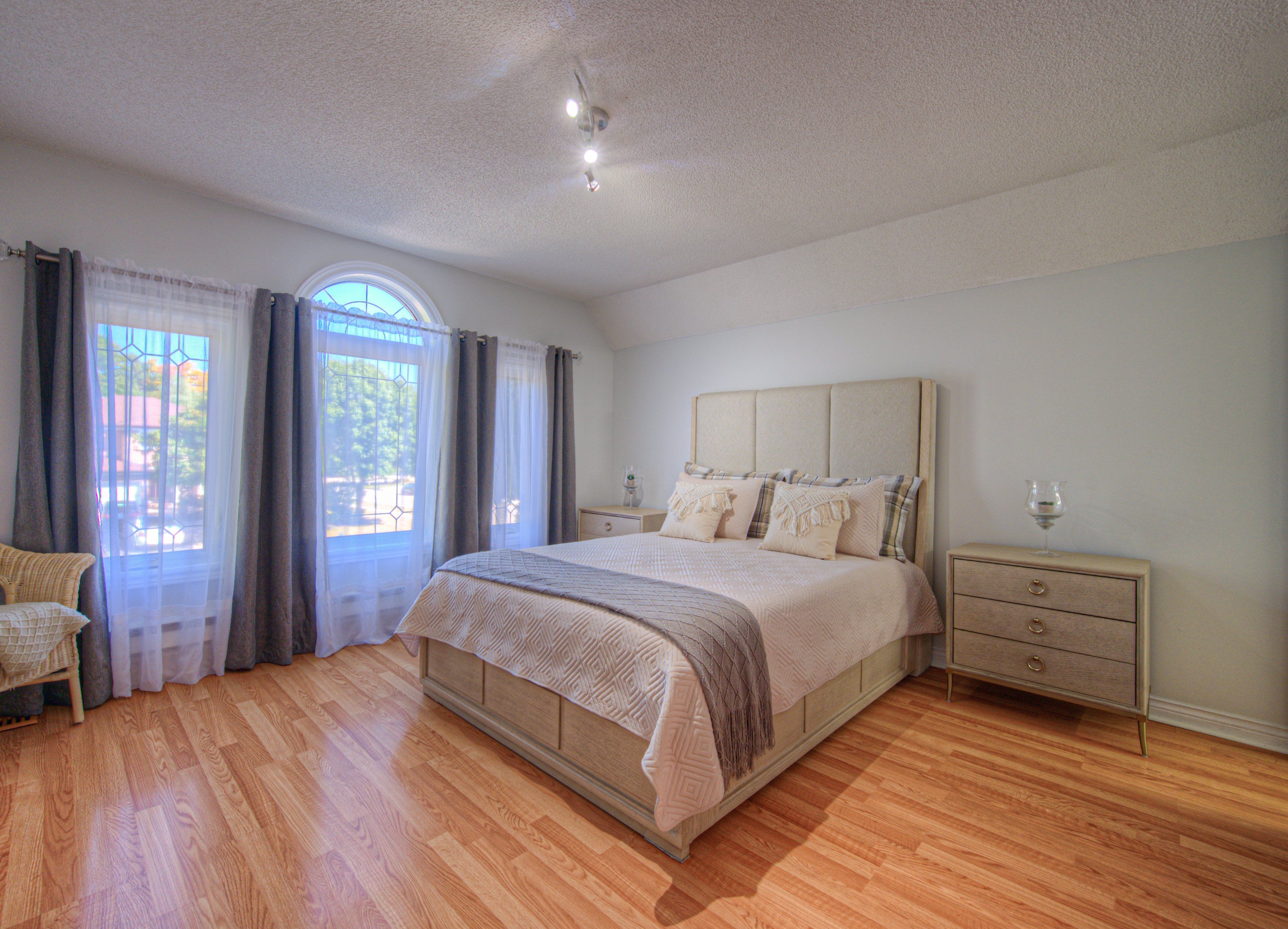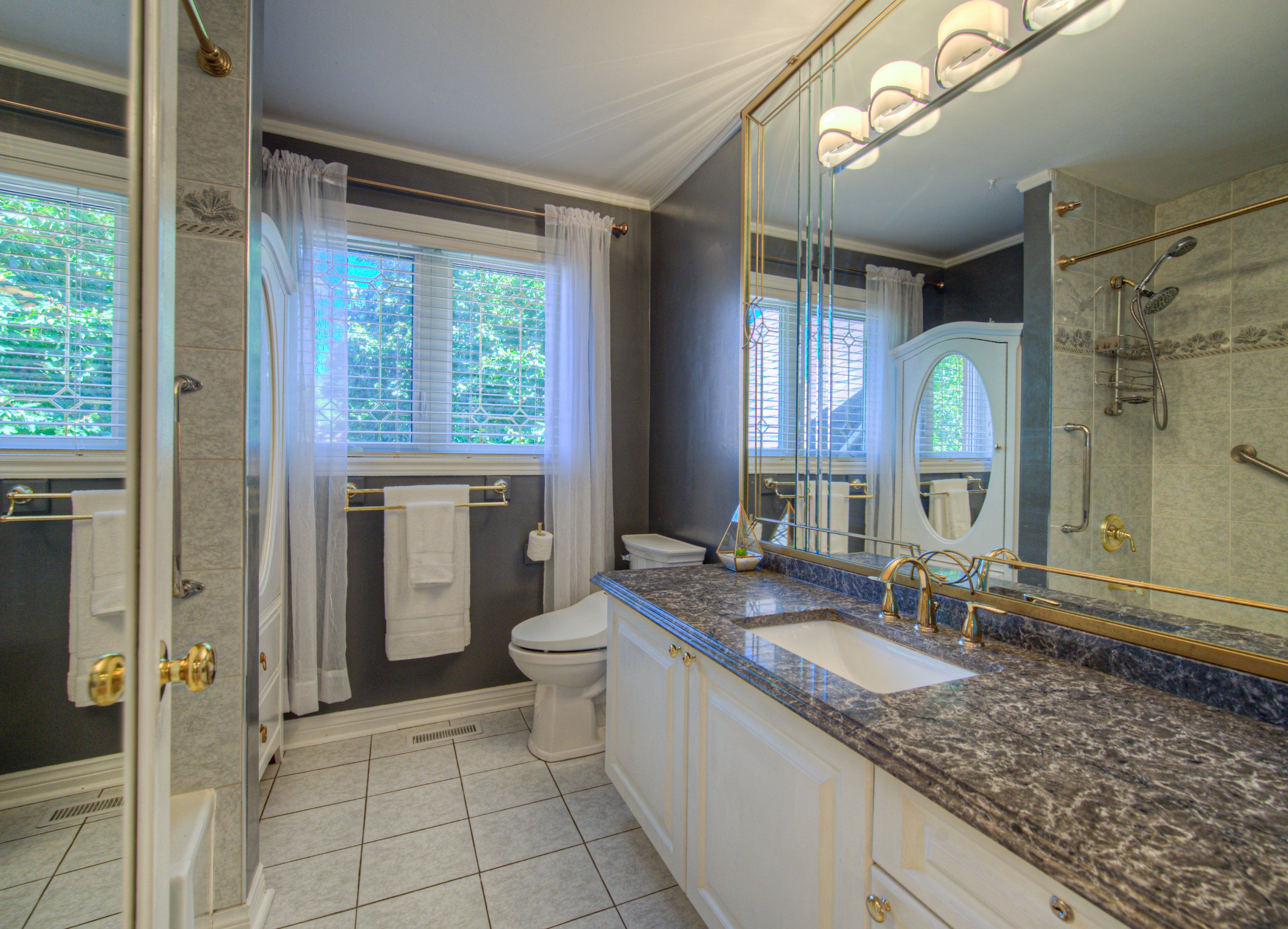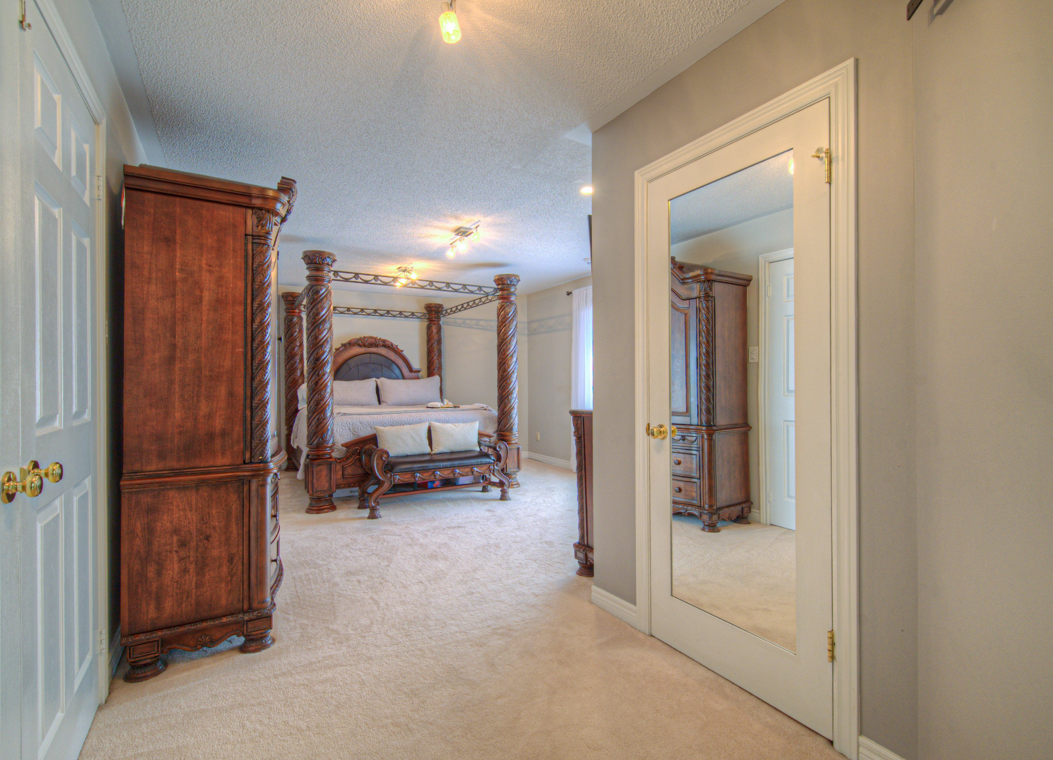 Former model home occupied by loving original owners! Absolutely stunning home with in-law or teenager's suite on a private side of the home with walk-in closet and full bath! Meticulously maintained feng shui oriented home with a heated sunroom and a stunning staircase built to size in the home! You will be charmed by the elegance and charm of this home with extensive crown molding, hardwood, wrought iron special designed mirrors & cabinetry, extensive granite & marble as soon as you step into this home that just keeps going on and on. The home spans over 5,000 sqft of living space with 5 bedrooms, 3. 5 bathrooms, amazing sunroom with gas fireplace and heated marble flooring open to both sides of the yard with sliders, 4 bedrooms on second level with 3 full baths, master bedroom with two walk-in closets or make one into nursery plus a spa like ensuite with a soaker tub, glass shower, heated towel bar, his & hers sinks, marble heated floors; fully finished basement with oversized l-shape rec room with gas fireplace, exercise room, extra pantry/wine cellar. The main floor has an elegant office with wood paneling, formal dining room with a beautiful one piece special design mirror, living room/working room for home business, family room/den with a cozy gas fireplace, modern chef's kitchen with marble countertops with top of the line appliances! The yard is fully fenced, has mature trees and is full of beautiful perennials. The home was fully renovated in 2018-19 kitchen, basement, sunroom, mudroom, spa ensuite, powerless kinetico water softener with torking system, ro, eaves guard, all new potlights, all windows, front door. Other updates include: roof 2012, ac 2017, central vacuum, furnace & hot water heater nov 2024, gas hook up for bbq. Double garage plus the interlock driveway can park 6 cars! Just minutes from 401, shopping, schools, trails, this home is a rare find that offers a perfect blend of luxury and elegant living style in a family oriented neighborhood.