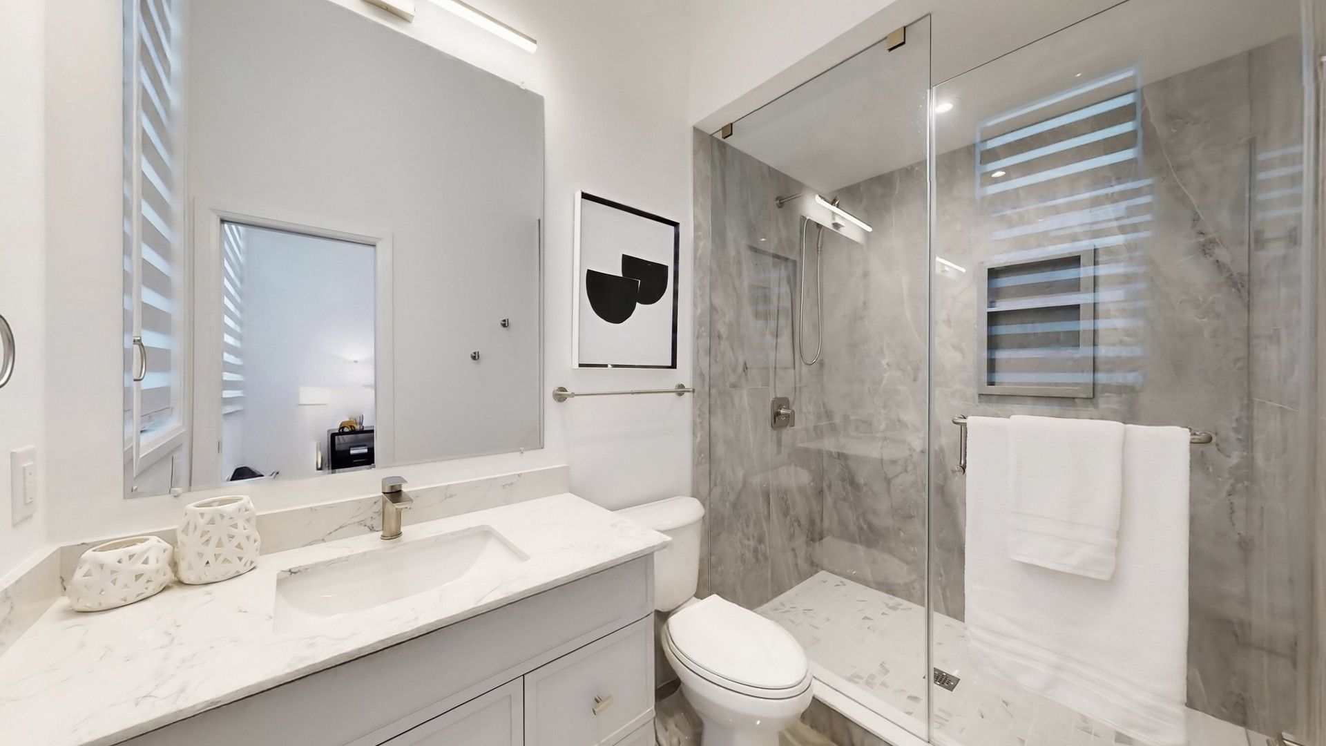 • Luxury kitchen features a large quartz island and premium stainless steel appliances.