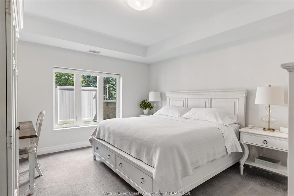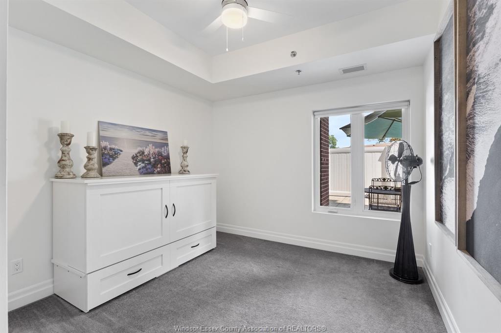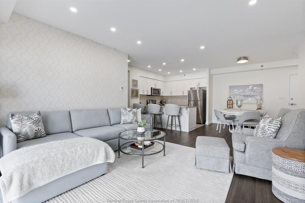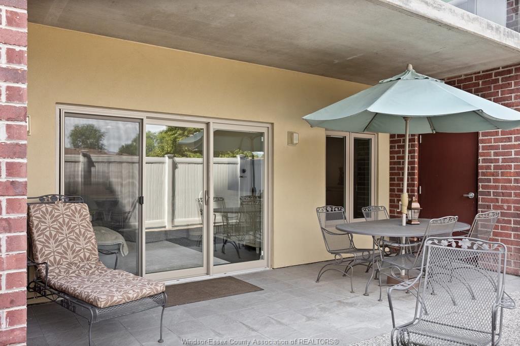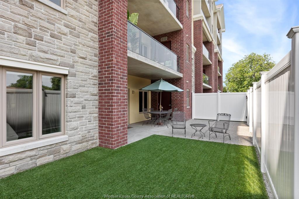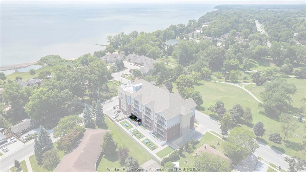 Located directly across from lakeside park and lake erie in kingsville. This rare unit is approximately 1200 square feet with a walkout to a spacious private terrace, complete with a custom turf area. This outdoor area is much larger than a standard balcony and is fully fenced. Perfect for you and your pet !! Directly outside the fence is access to the attached outdoor common area that includes multiple sitting areas and provides barbeques. Inside, the open concept layout features a bright living area and a well-appointed kitchen with granite counters and stainless steel appliances. It has 2 full bathrooms and 2 generous bedrooms; the master ensuite includes a walk-in shower and double sinks. Also for you to enjoy is the top-floor party room and an outdoor rooftop lounge area with amazing views of the lake and the park. *** unique to this property is the included heated underground parking space and storage locker *** call today for more information and to view this stunning unit