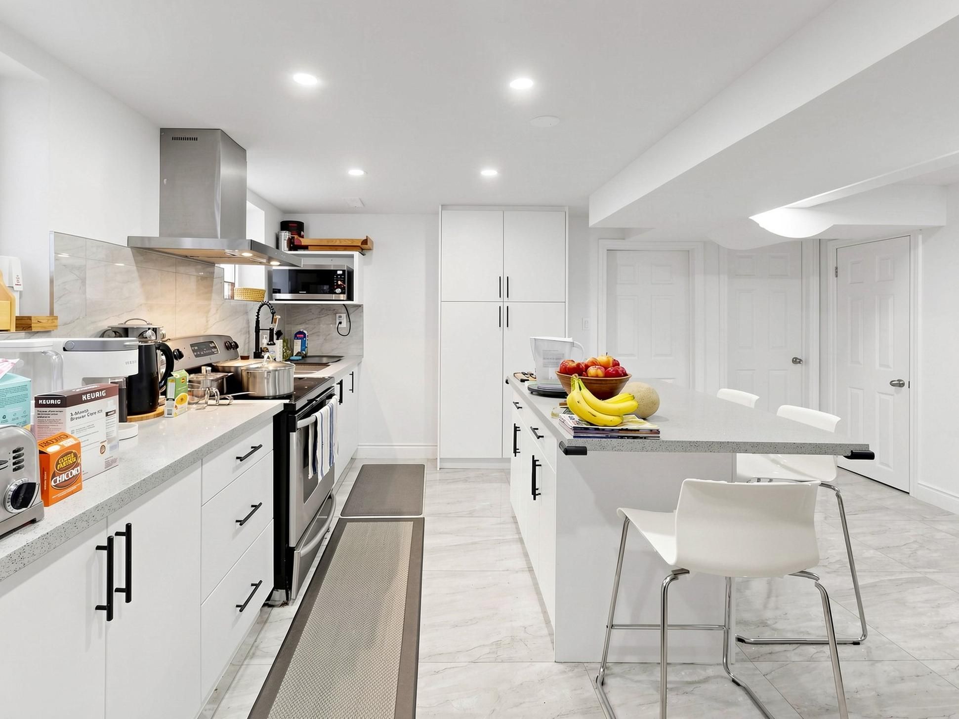 • Chef's kitchen with high-end appliances and a stylish gas range.
