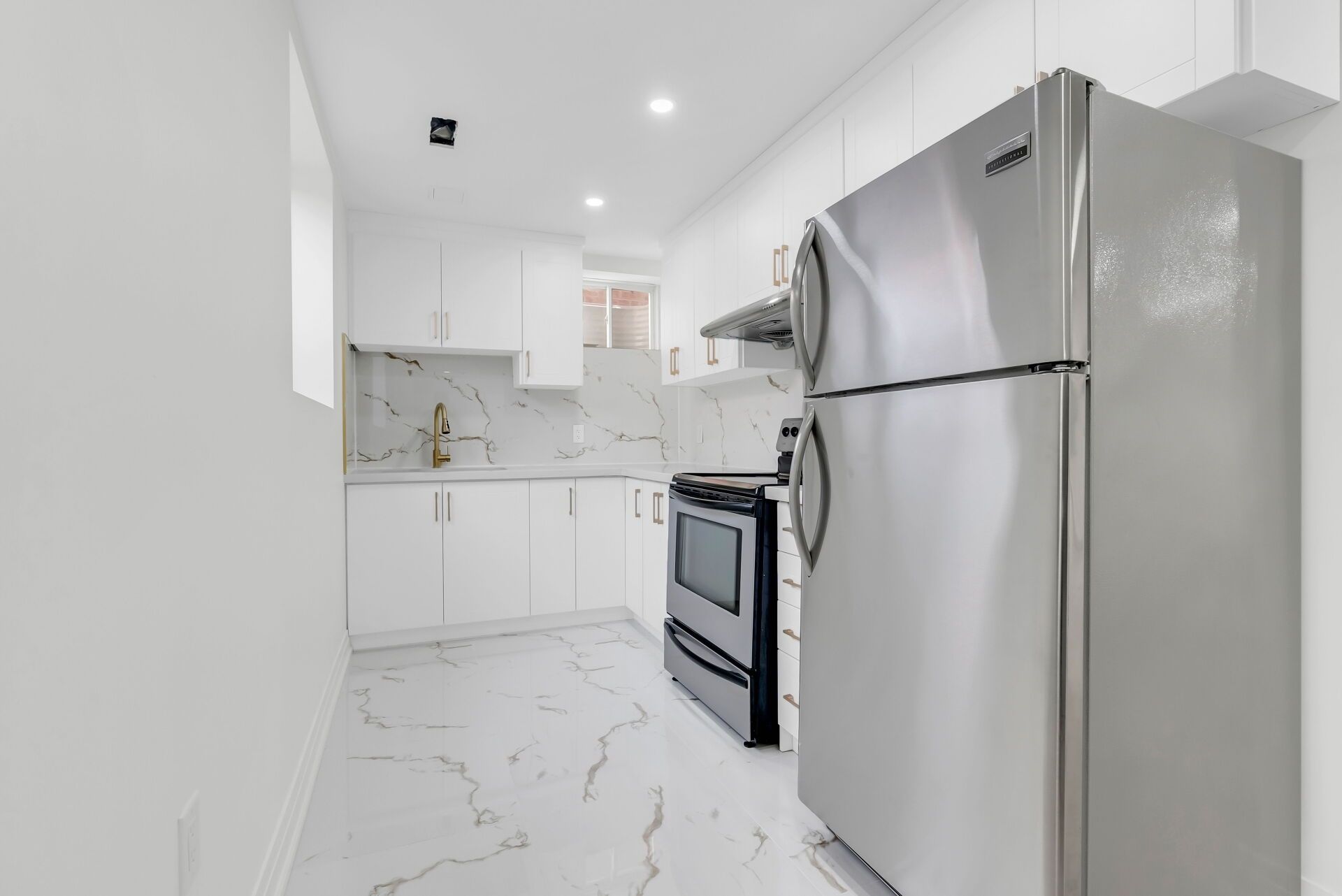 • Gourmet kitchen with high-end appliances and quartz countertops.