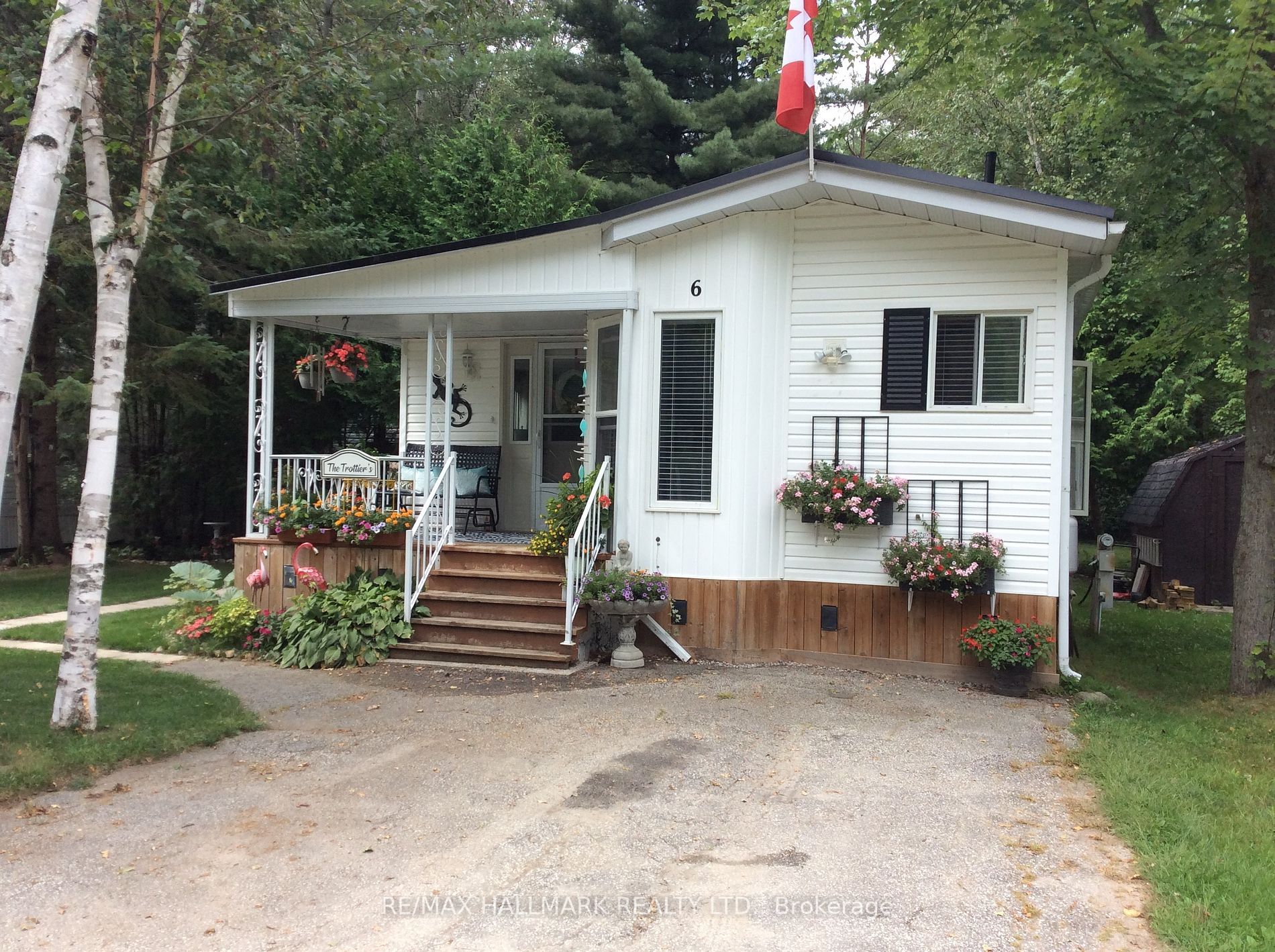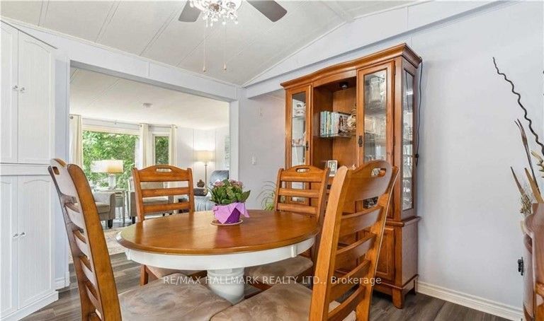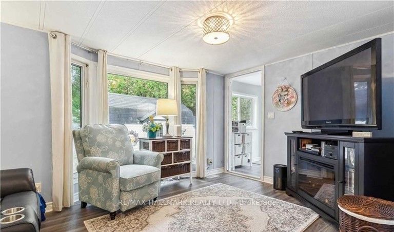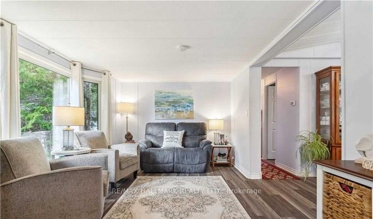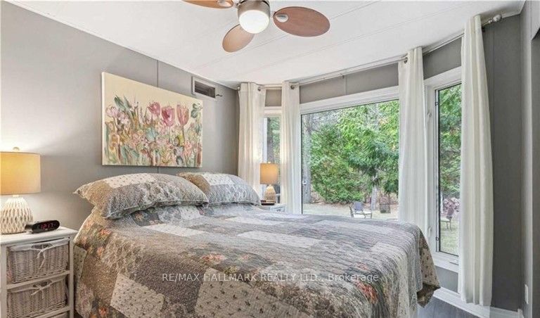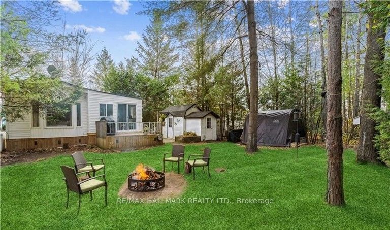 Welcome to the highly sought-after wasaga pines cottage & resort community - a peaceful, family-friendly land-lease neighbourhood surrounded by nature. This absolutely beautiful three-season mobile bungalow has been completely updated and lovingly maintained in pristine condition. Enjoy exceptional curb appeal with lush gardens and manicured lawns leading into a bright and airy open-concept living space. The home features 2 bedrooms, a 4-piece bathroom, and sunfilled bay windows that fill the space with natural light and create a warm, inviting ambiance. The spacious kitchen features a vaulted ceiling, gas stove, double sink, pantry, ceiling fan, and reverse osmosis water filtration system-perfect for comfortable everyday living or entertaining guests. Step outside to your large private backyard oasis, complete with a deck ideal for summer bbqs and outdoor gatherings. The property is surrounded by mature trees and backs onto forest conservation, offering exceptional privacy and a tranquil natural setting. A fantastic bonus feature is the separate detached office / bunkie, perfect for extended family or guests staying over during the summer, or for use as a creative art studio, hobby room, or private workspace. Enjoy a relaxed cottage lifestyle with 5-star resort-style amenities, including: two outdoor swimming pools mini putting course wagon rides horseshoe pits basketball & volleyball courts playground & sports field dog park jumping pillow community dances & recreation hall all this just a short drive to the sandy beaches of georgian bay and the vibrant shoreline of wasaga beach.