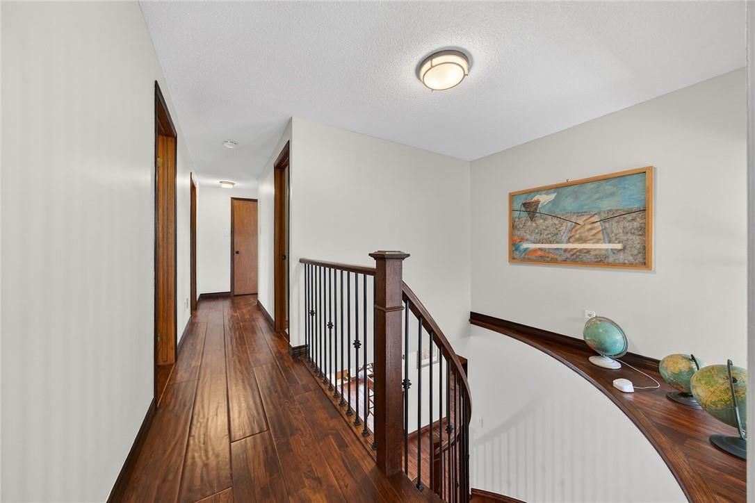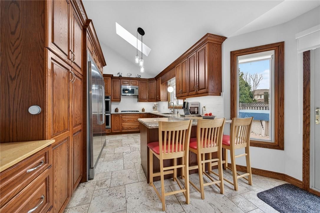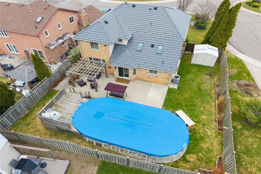 Outstanding home in a choice neighborhood set in a convenient location close to all amenities, park, highway access, schools and public transportation. This is a beautiful home starting with its attractive brick exterior, aggregate cement driveway for 4 cars and extensive landscaping! Access to the fully fenced backyard is accommodated with walkways on both sides of the home which features a quality above ground pool with a deck and a quality cover for off season. This is a turn key quality home featuring travertine tile flooring in the spacious kitchen with granite counter tops and upscale appliances. Attractive wood flooring is present extensively on the main and bedroom floor levels. Other features to note are the skylights in the kitchen with vaulted ceiling, the curved staircase, balconies overlooking the entrance and kitchen, and laundry located on the main level. A beautiful ensuite bathroom in the primary bedroom and high ceilings in the mostly finished basement level.