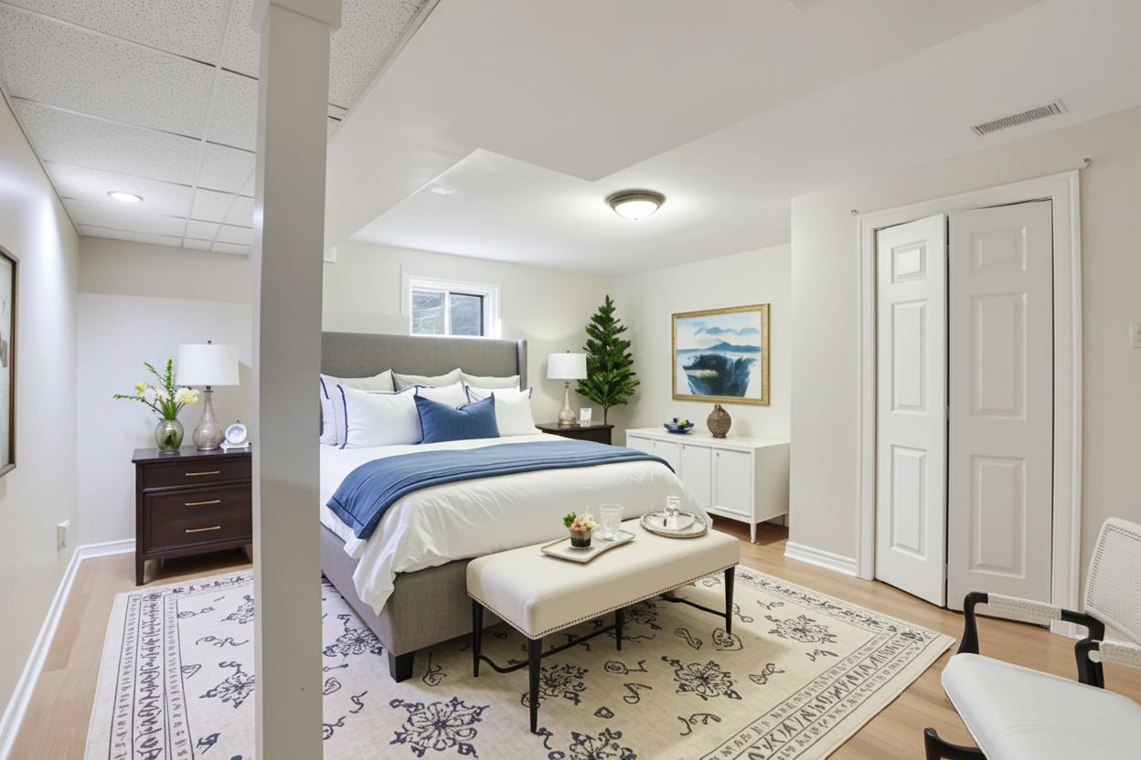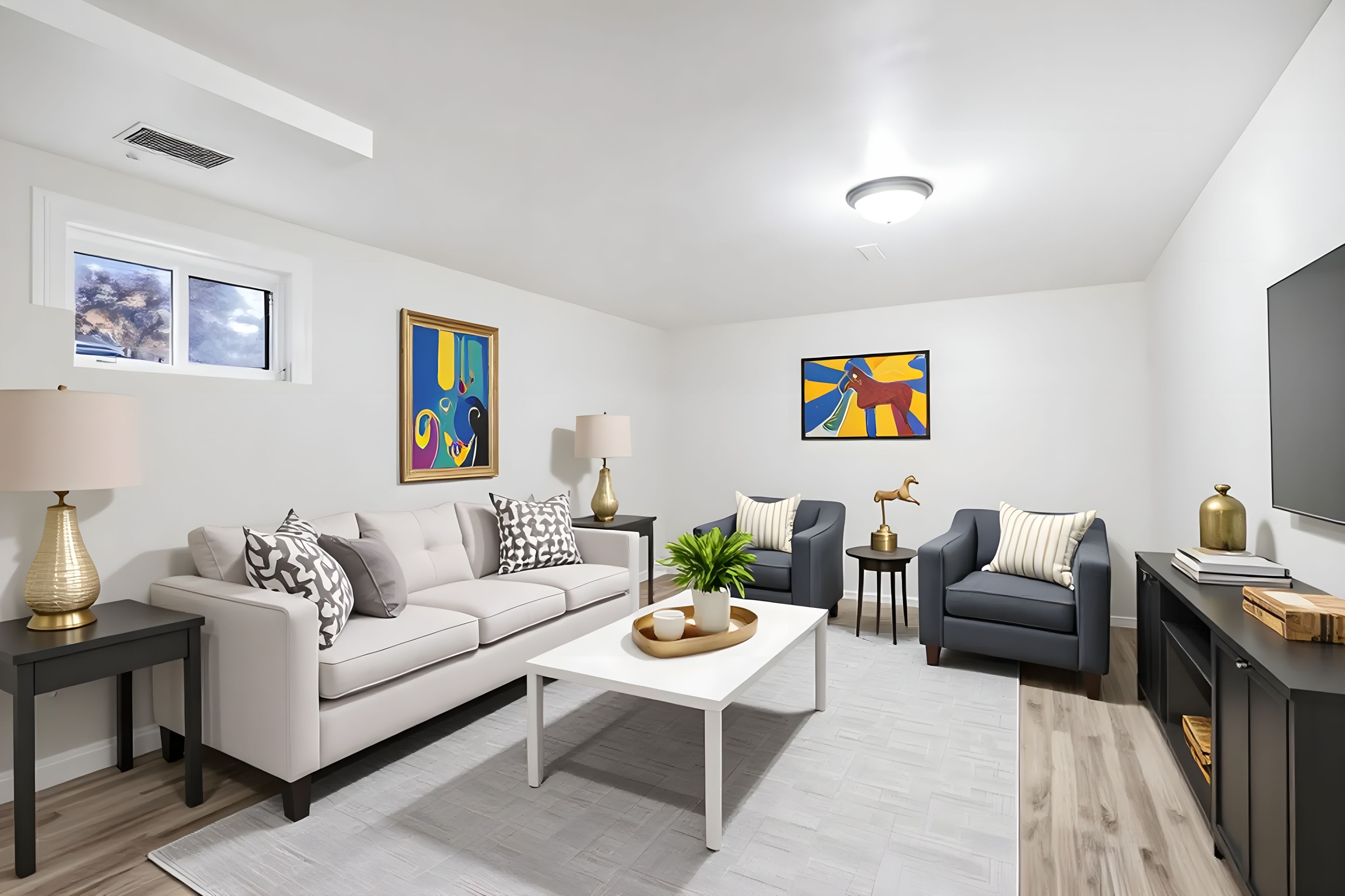 • Finished basement adds a fourth bedroom and flexible space for various activities.