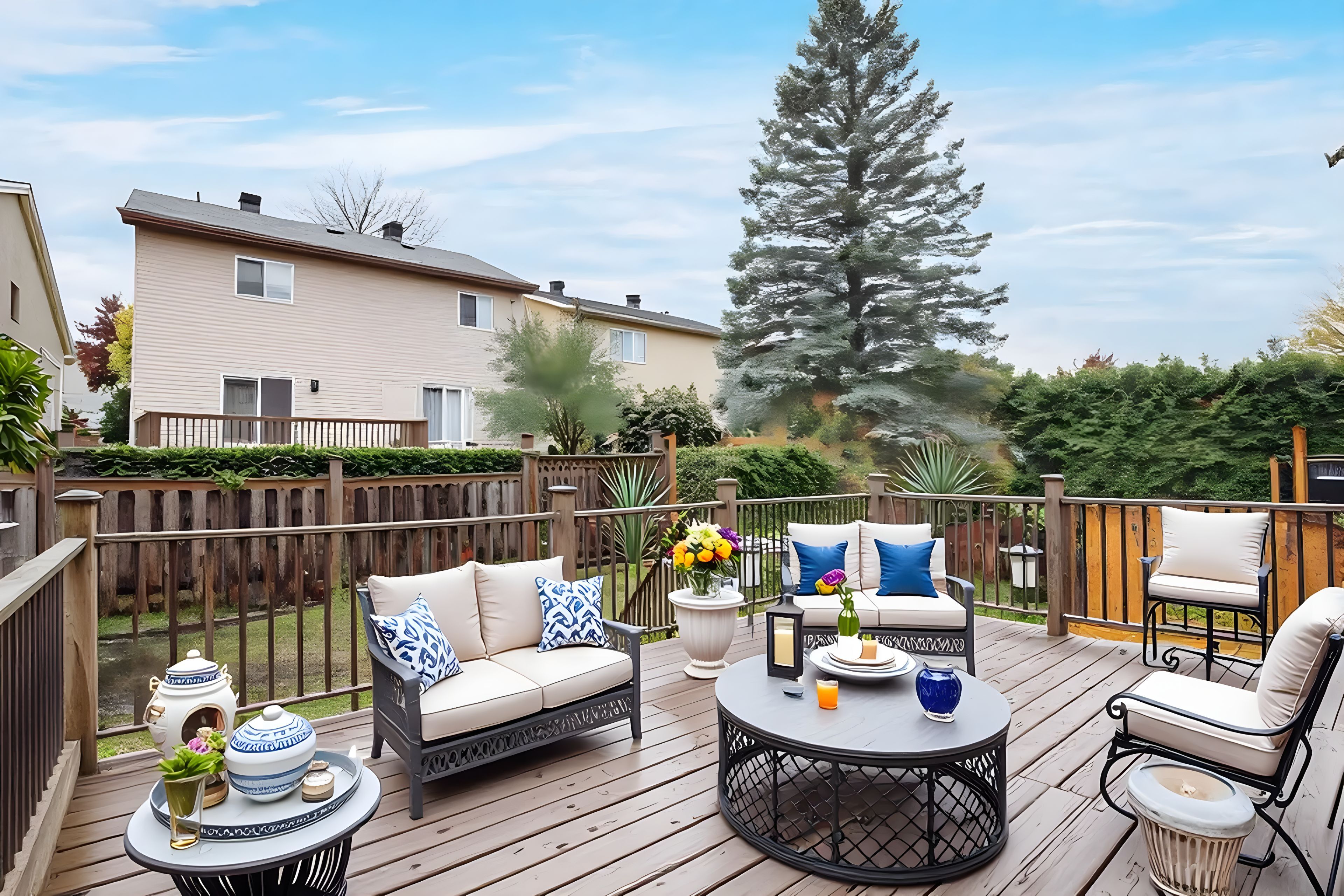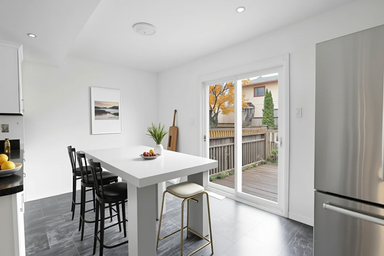 • Bright eat-in kitchen overlooking a private fenced backyard for outdoor fun.