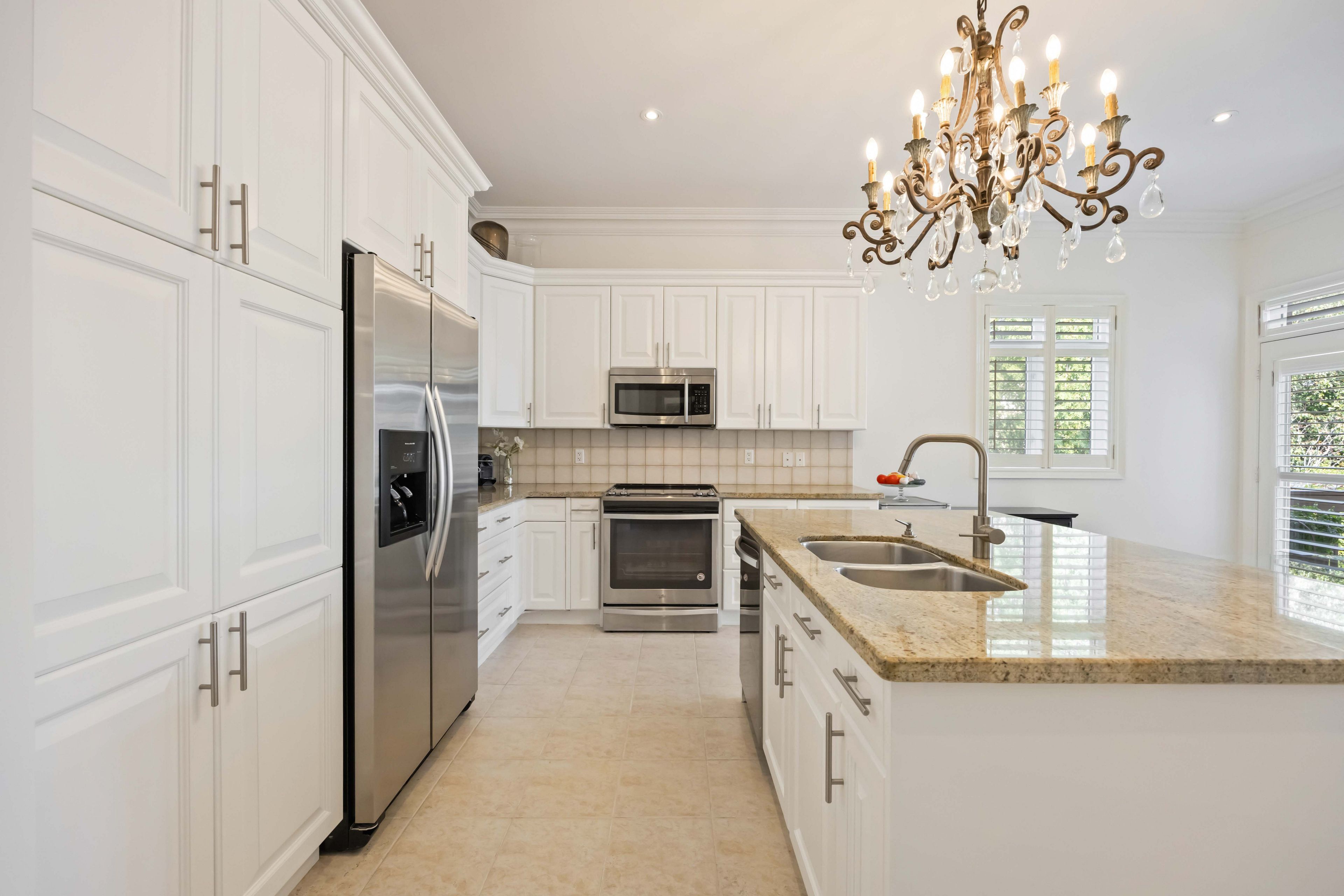 • Gourmet kitchen with granite countertops and stainless steel appliances.