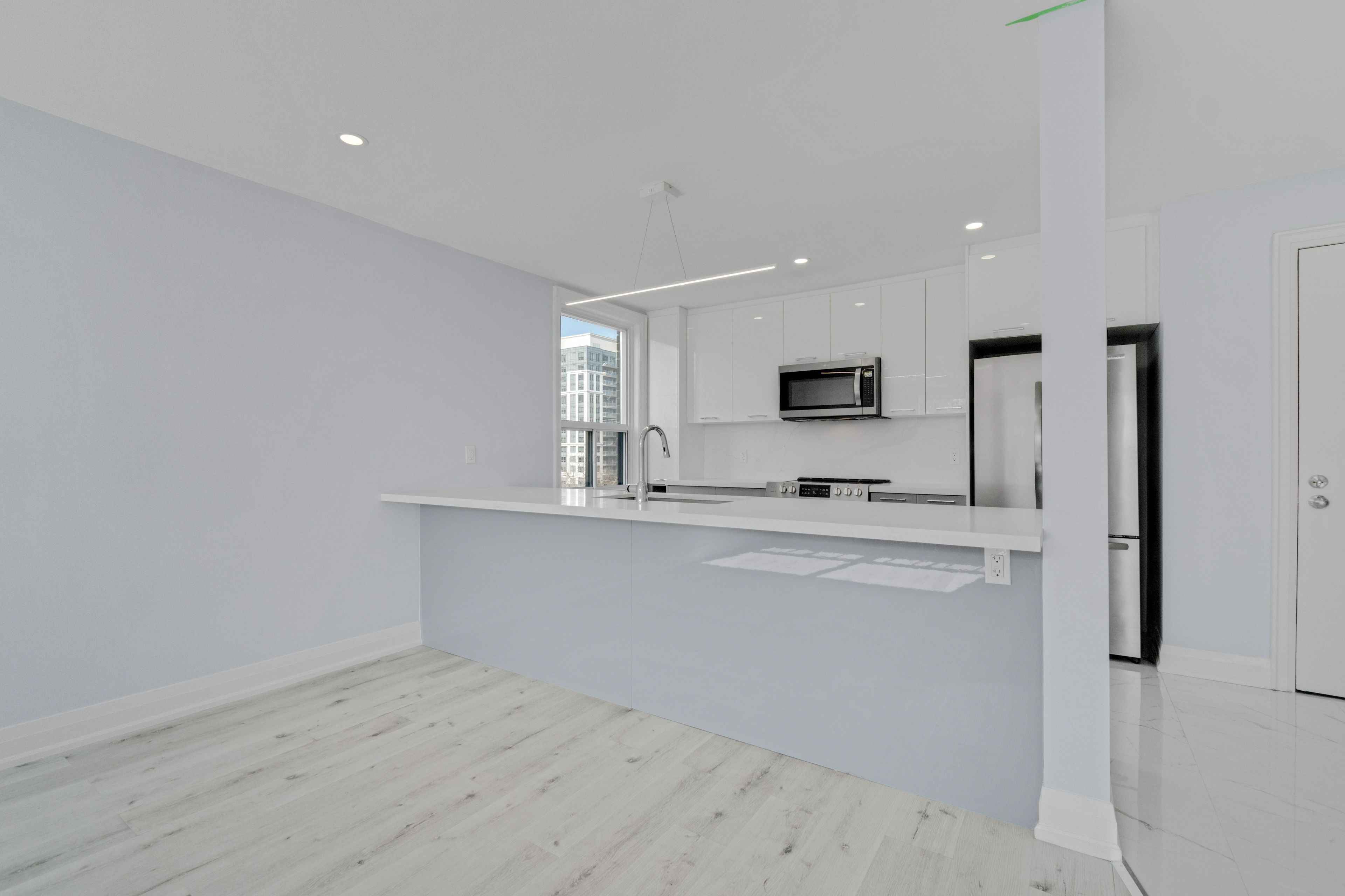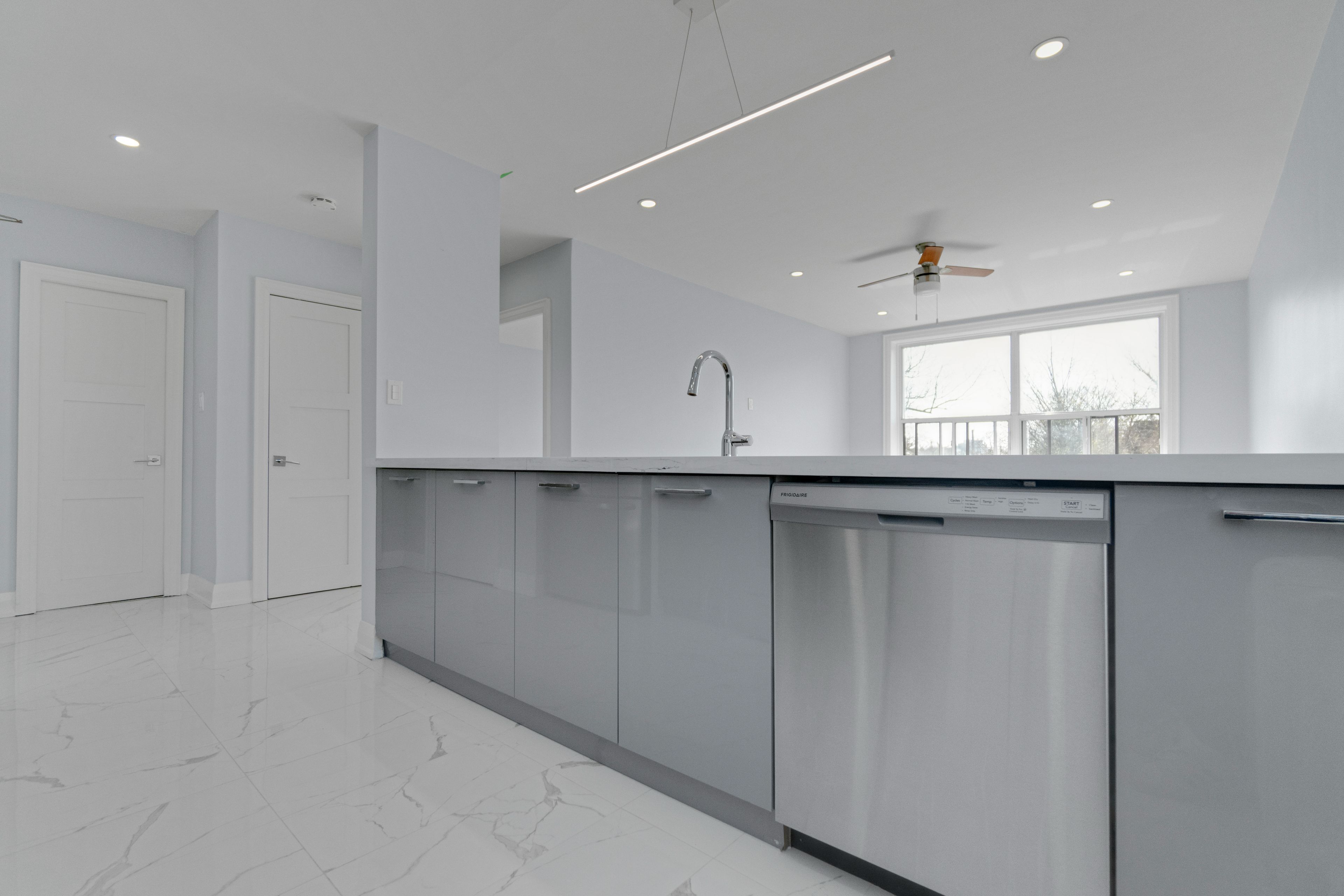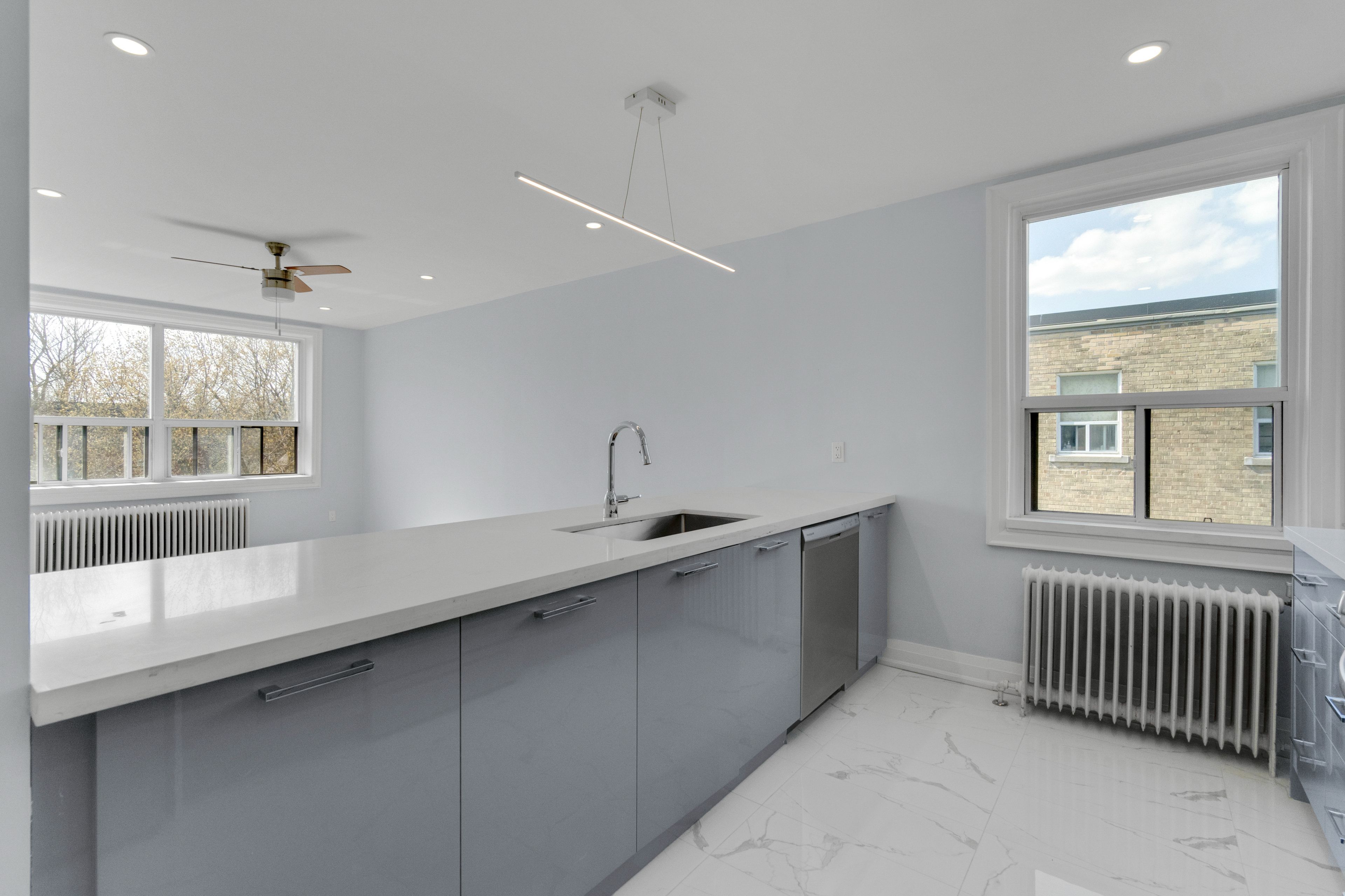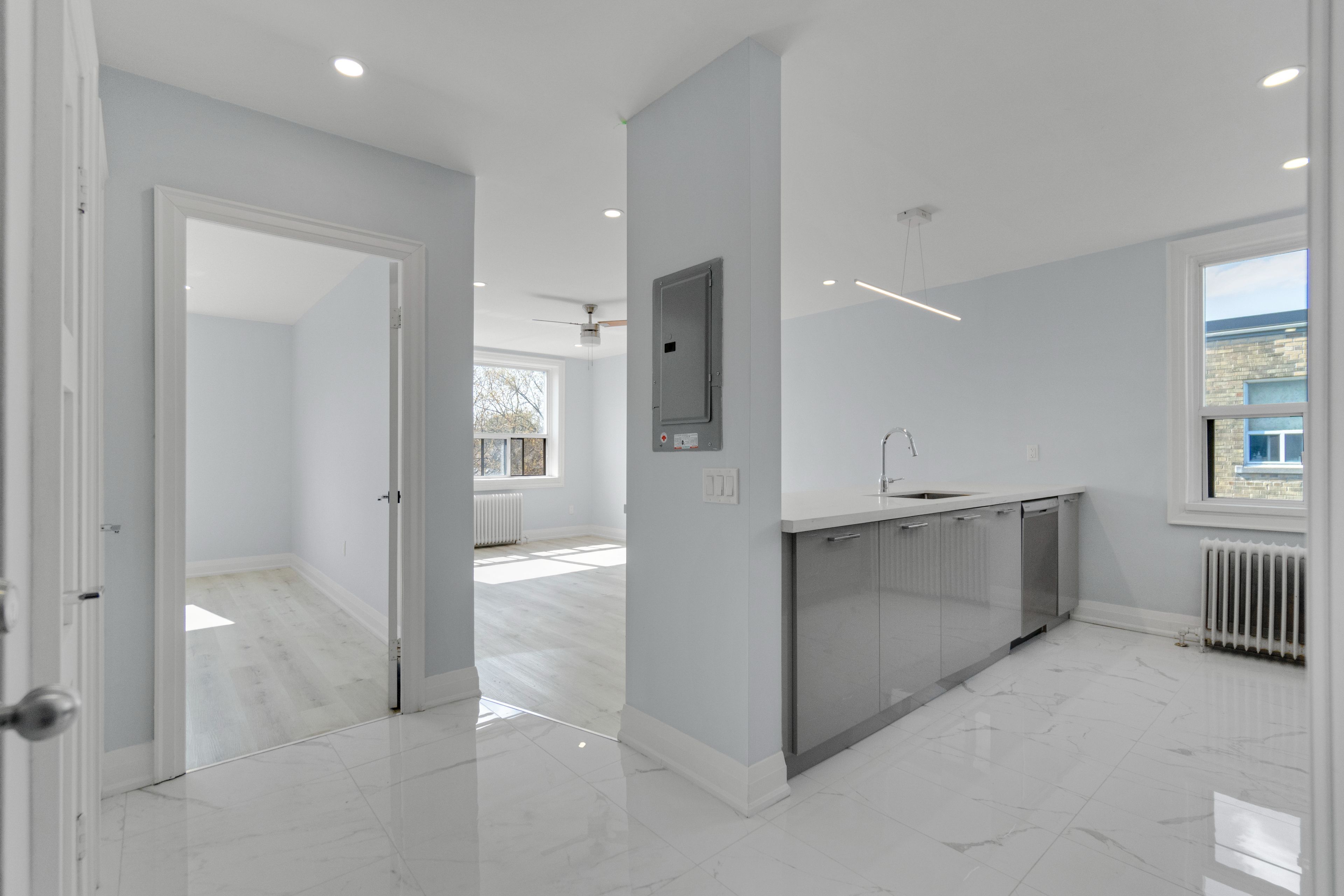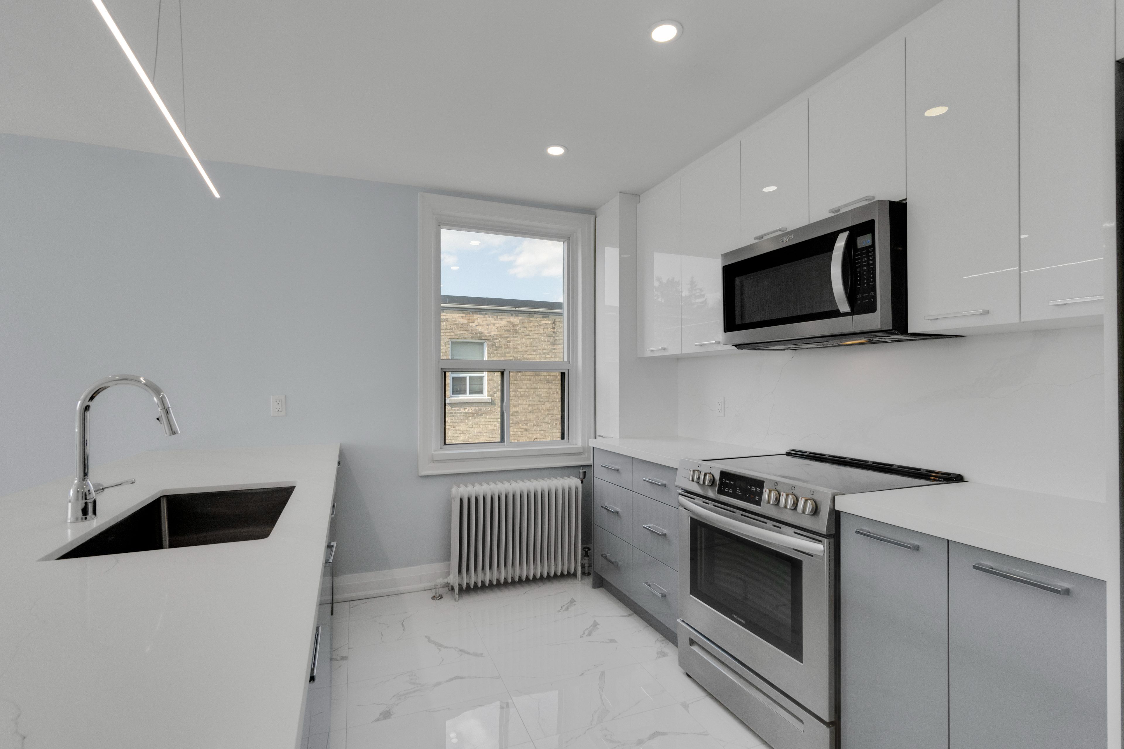 Newly renovated third-floor unit in the highly sought-after lawrence manor neighbourhood. This bright and spacious suite features 8-foot ceilings and has been thoughtfully upgraded throughout with pot lights, new vinyl flooring and oversized baseboards. The modern kitchen is equipped with stainless steel appliances, quartz countertops and a striking book-matched backsplash along with ample cupboard space for storage. The open concept living area is filled with natural light from a large window and included a ceiling fan for added comfort. The generously sized bedroom offer vinyl flooring, pot lights and a closet. One (1) parking included. Ideally located just minutes to yorkdale mall, public transit, university subway, lawrence bathurst plaza, grocery stores and convenient access highway 401.