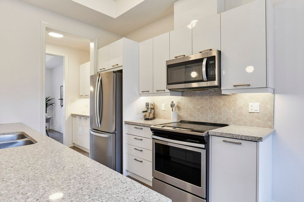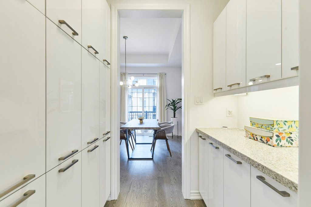 • Modern kitchen features quartz countertops and a butler's pantry.