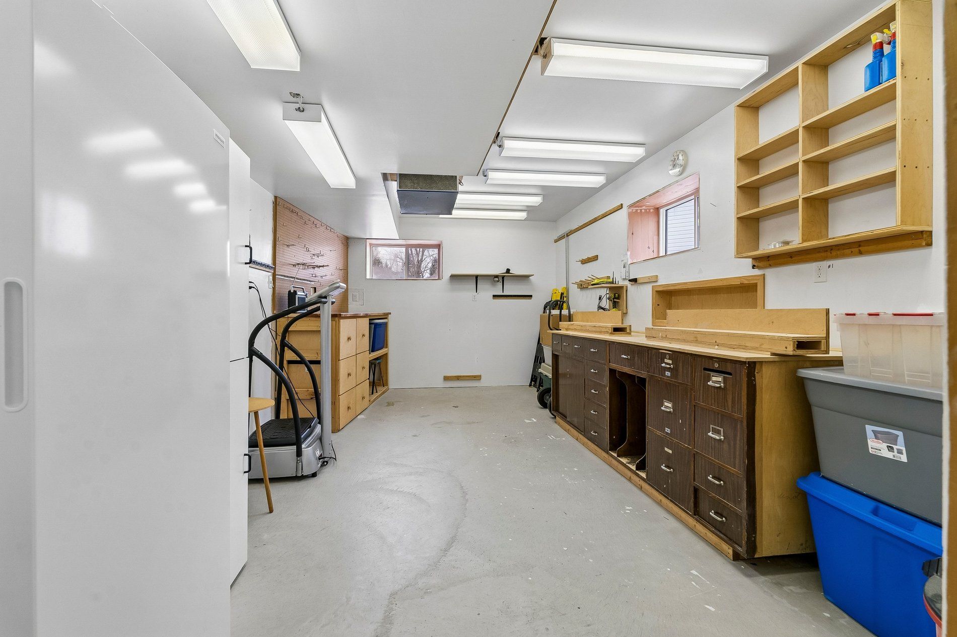 Beautifully maintained raised bungalow on a premium corner lot - wasaga beach nestled on a quiet crescent in a mature residential subdivision of wasaga beach, this well-maintained raised bungalow sits on a desirable corner lot and offers comfort, functionality, and abundant natural light throughout. The bright and inviting main floor features 2 spacious bedrooms and 2 bathrooms, along with a versatile living room that can also serve as a work-from-home area. The open-concept kitchen seamlessly connects with the family and dining areas, creating an ideal layout for everyday living and entertaining. A walk-out leads to a generous 12 ft x 16 ft deck, perfect for outdoor relaxation and summer gatherings. Large picture windows allow plenty of natural light to fill the home. The partially finished basement offers a large great room complete with a murphy bed, providing excellent flexibility for hosting family and friends - whether for recreation, movie nights, or overnight stays with a bathroom and walking closet. A good-sized workshop presents an opportunity for future bedroom conversion, adding further value and functionality. Ample storage space is available throughout the lower level. Major updates include a new storm door (2025), a/c (2019), furnace (2017), patio door, windows throughout the main floor, roof (2012). Bonus features: in-ground sprinkler system and a handy backyard shed. This home is well-suited for a small growing family or as a comfortable retirement residence, ideally located just minutes from everyday amenities, including shopping, schools, public transit, school bus routes, the blueberry recreation trail, scenic walking trails, skiing, beautiful beaches, the wasaga stars arena, and the modern wasaga beach public library.