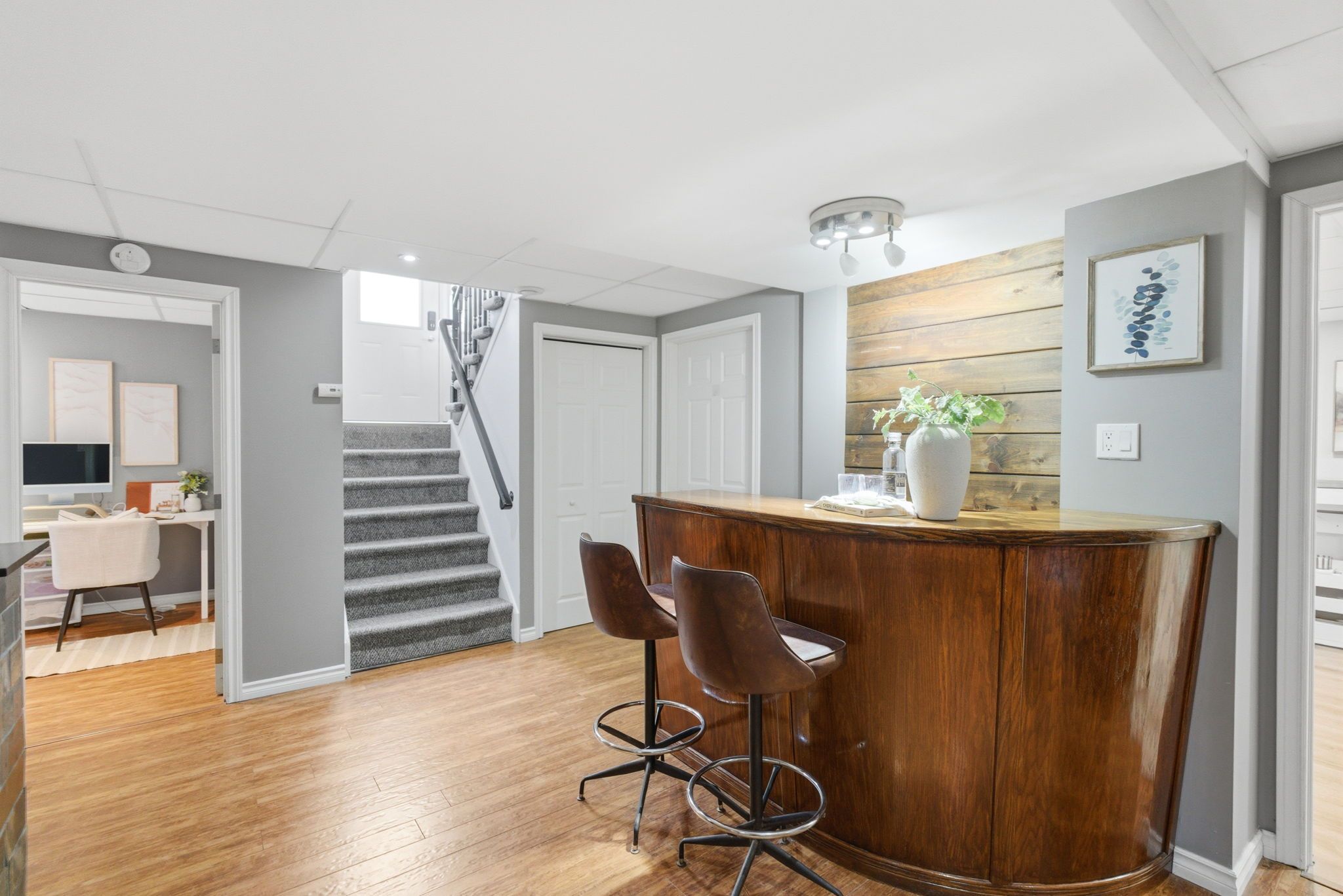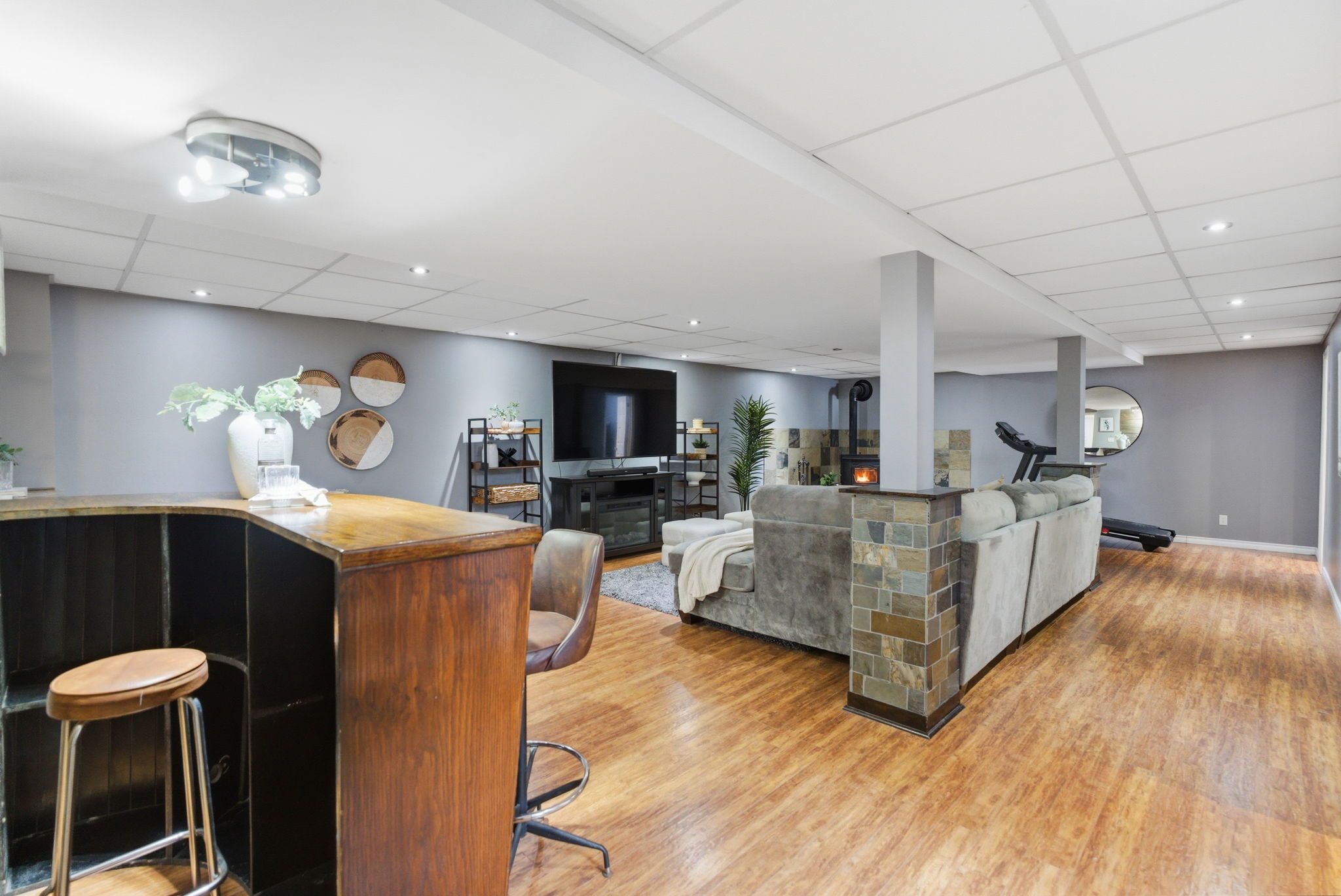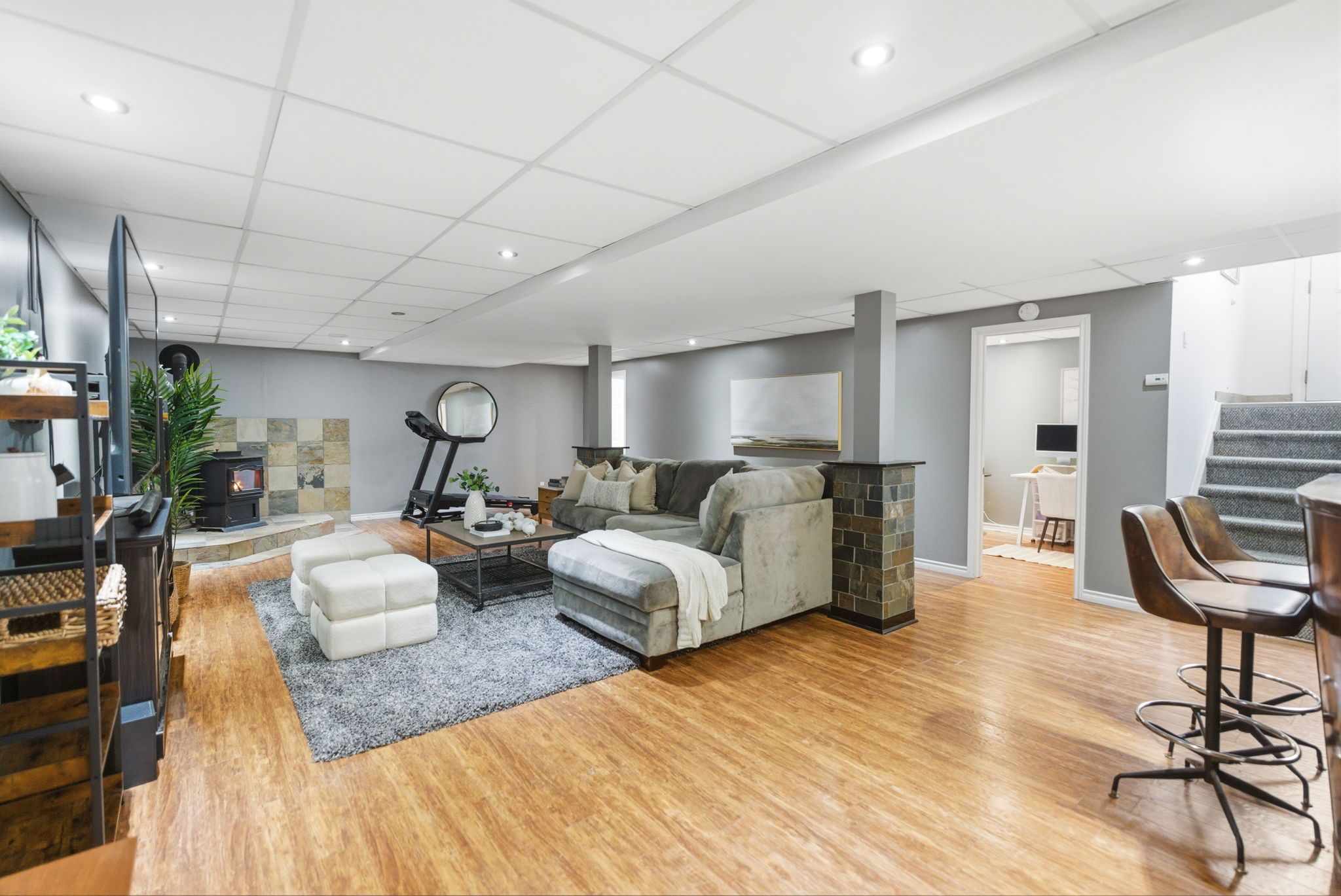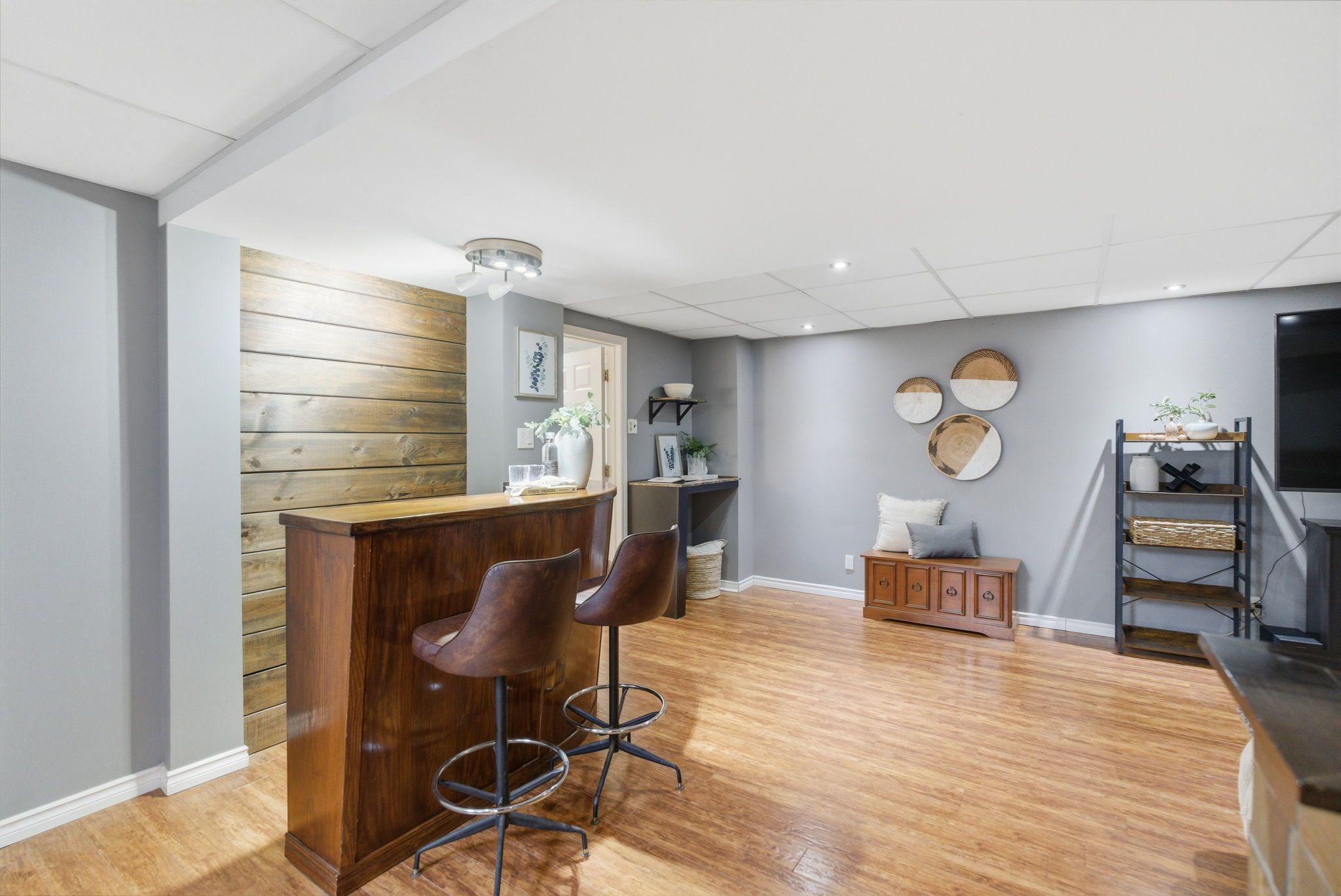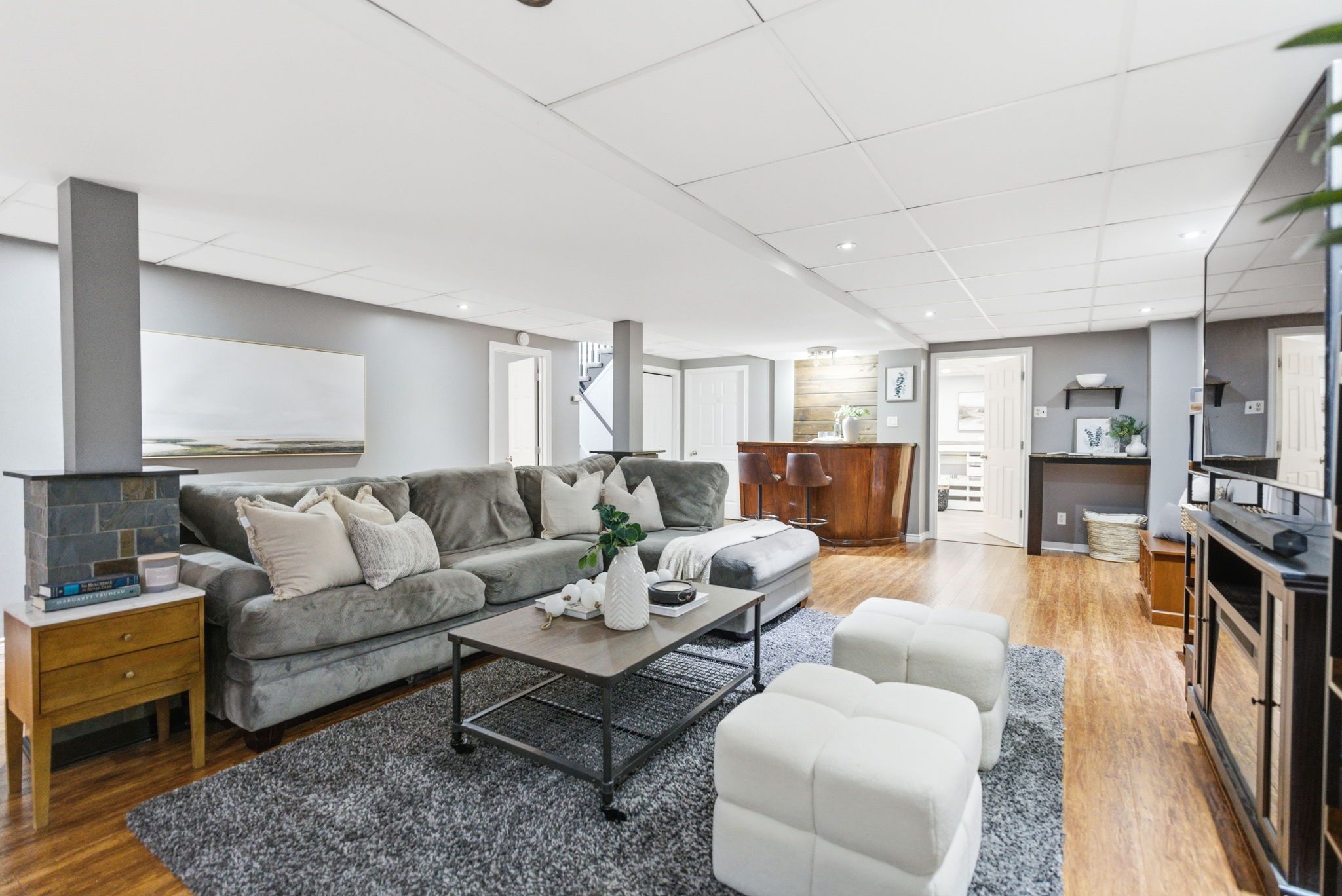 • Finished basement with rec room, dry bar, and additional bedrooms.