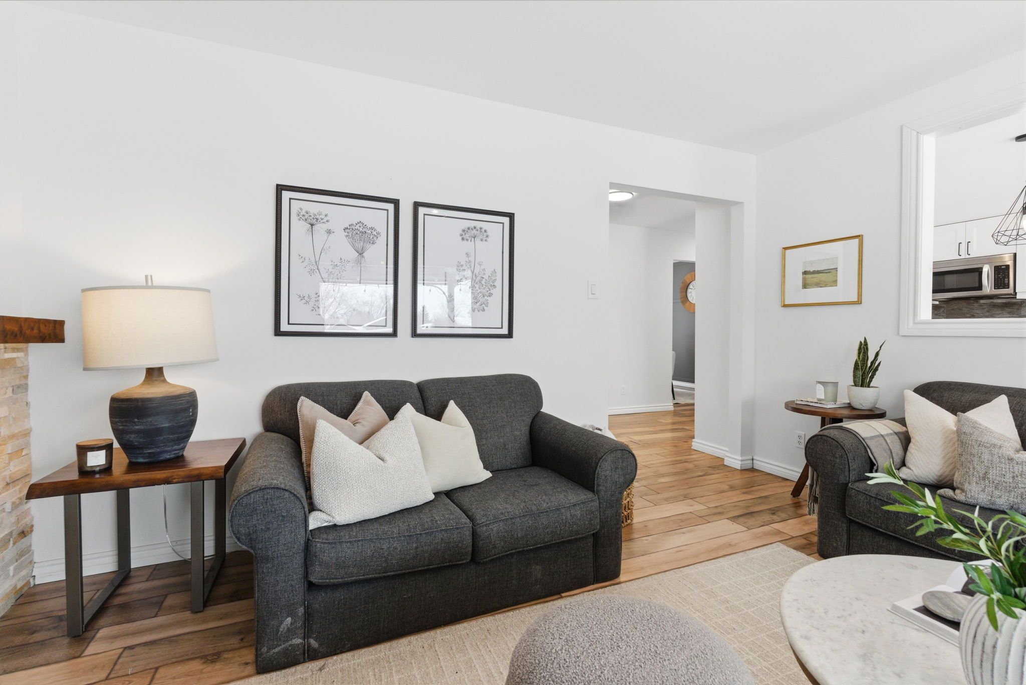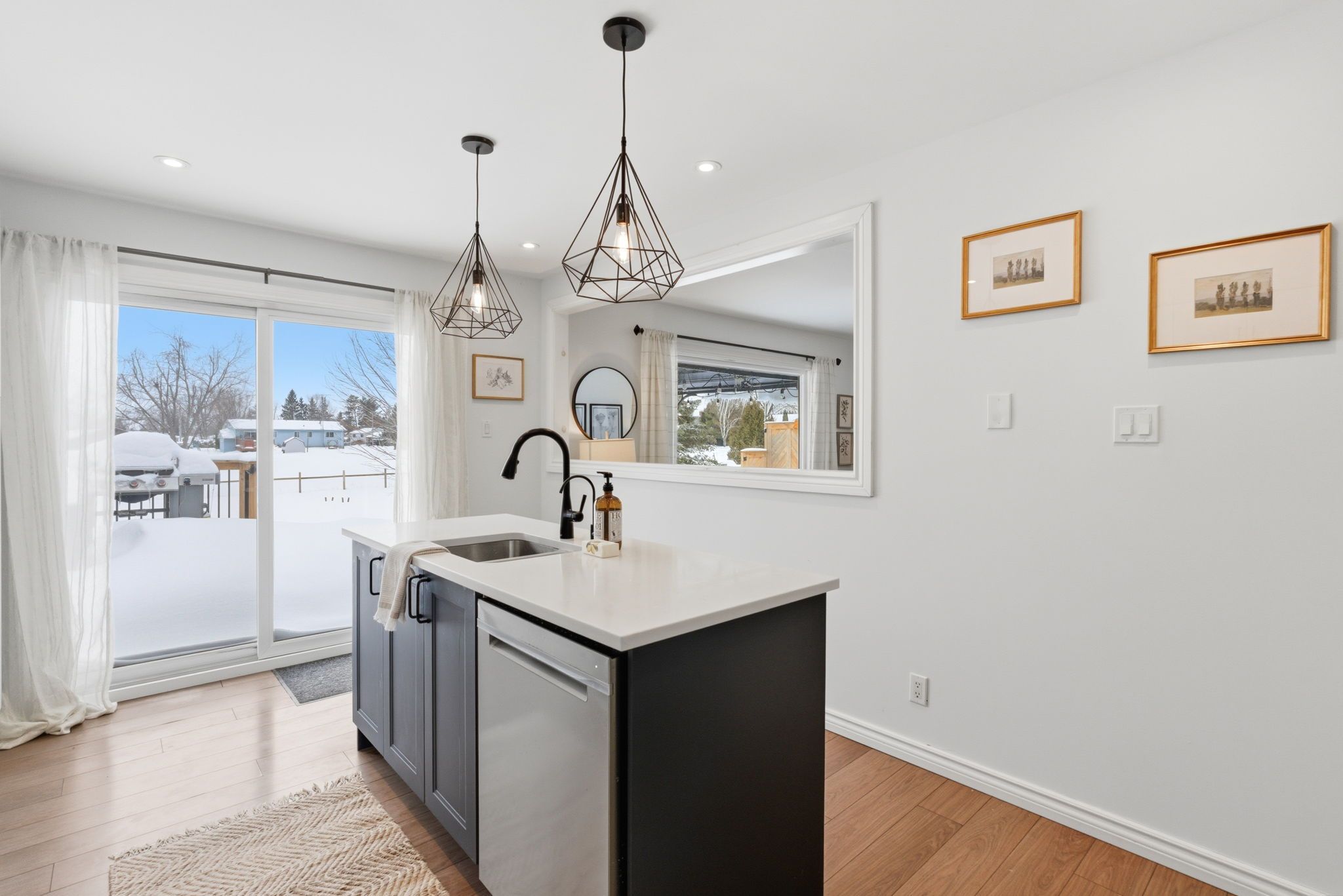 • Updated kitchen with quartz countertops and modern features.