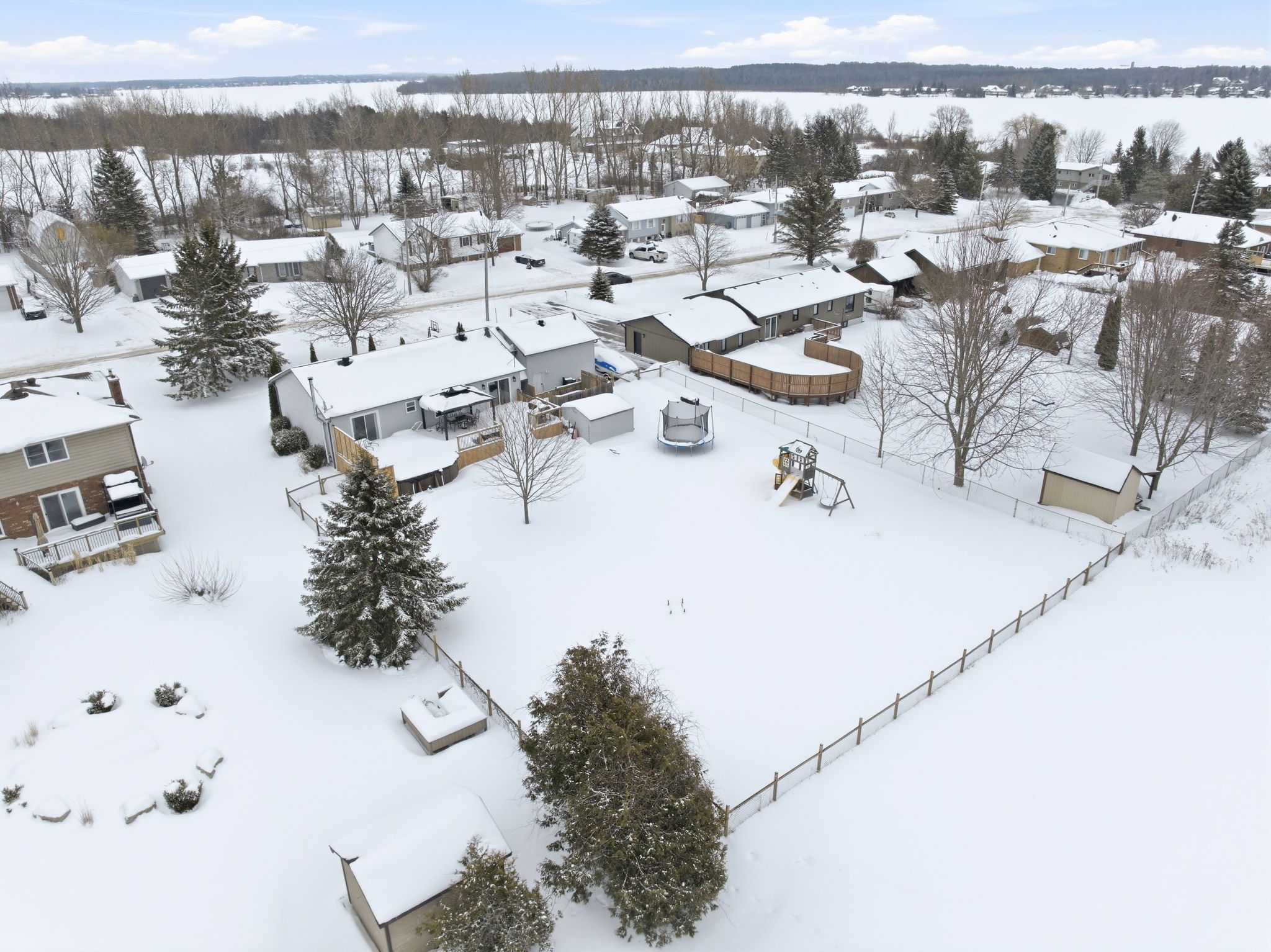 This home is a rare gem. Steps away from the shores of lake scugog** this 3 plus 2 bedroom features: over 2800 sqft of living space**2 full bathrooms** 1 2 pc ensuite** newly updated kitchen** quartz countertop** walkout to the large deck featuring an above ground pool and hot tub**large 100ftx200ft lot**formal dining room with panel accent wall** huge family room with a large window that looks out to the deck and above ground pool** fully finished basement featuring dry bar, 3pc bathroom, fireplace, 2 bedrooms and a large open space rec room**enormous 2 car garage** six car driveway with an extra spot perfect for a trailer or boat**