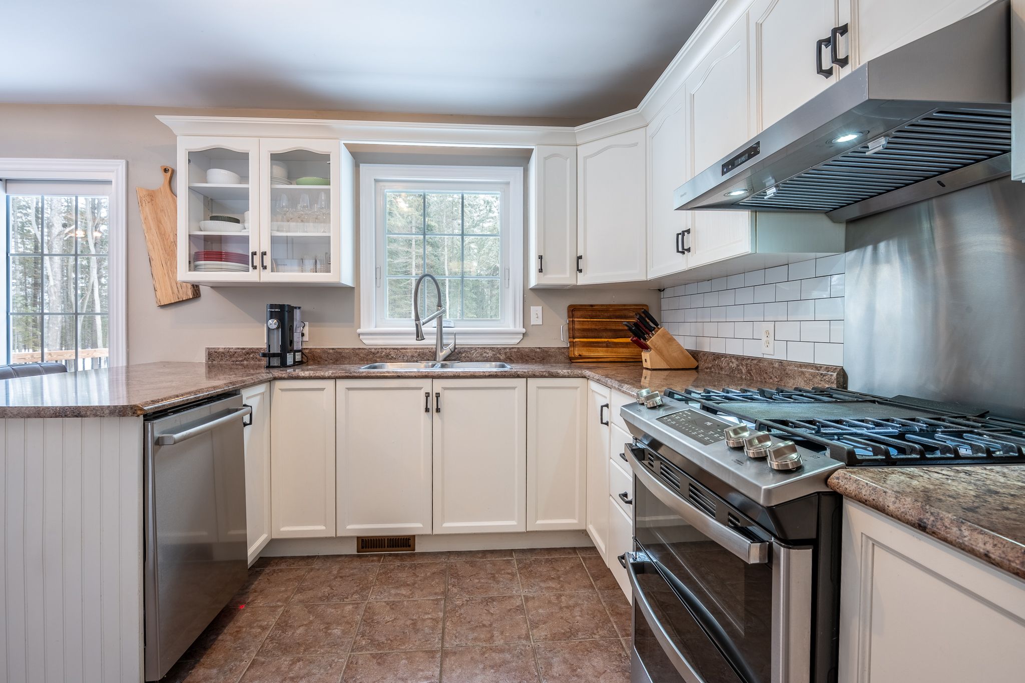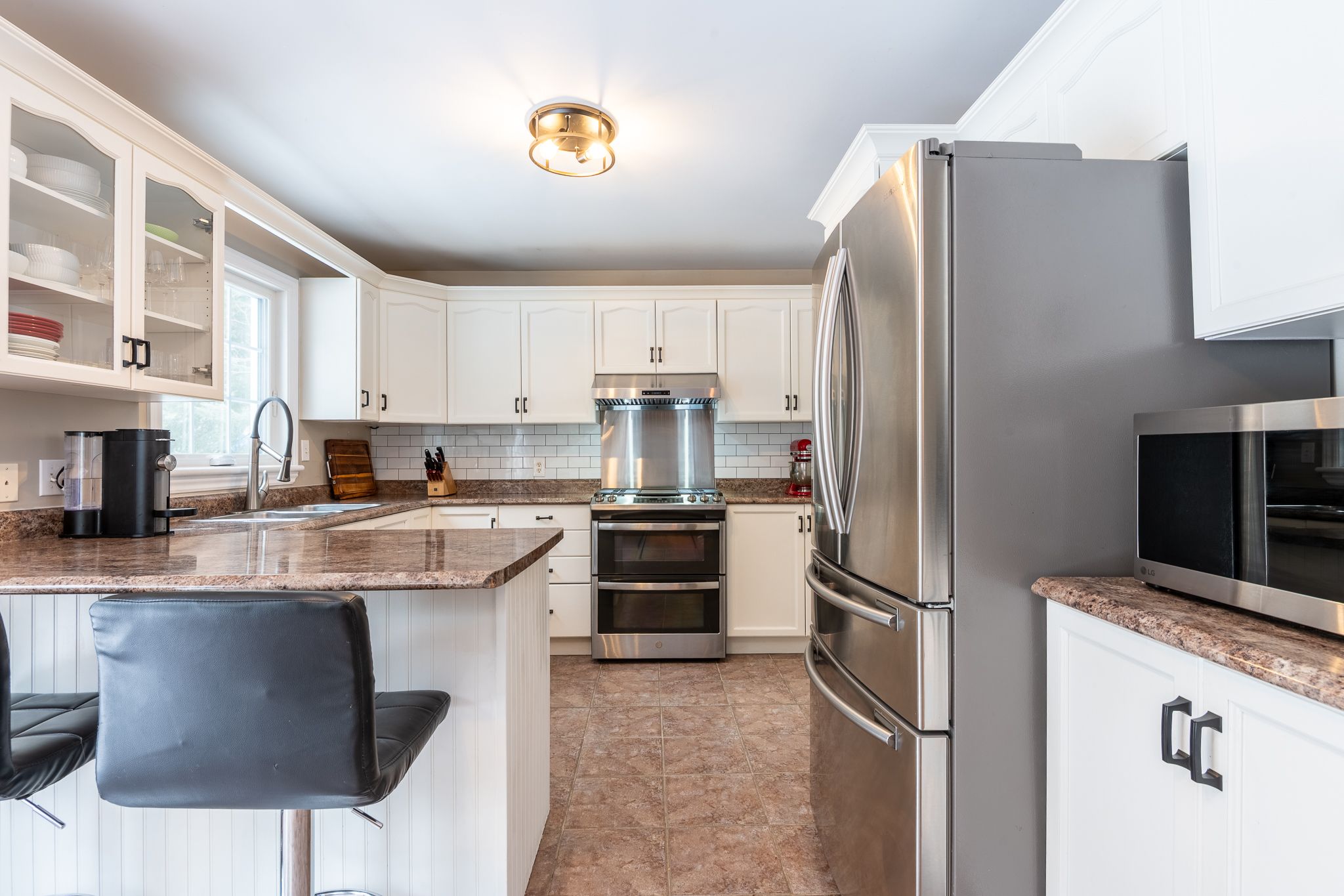 • Functional kitchen with stainless steel appliances and a cozy breakfast nook.