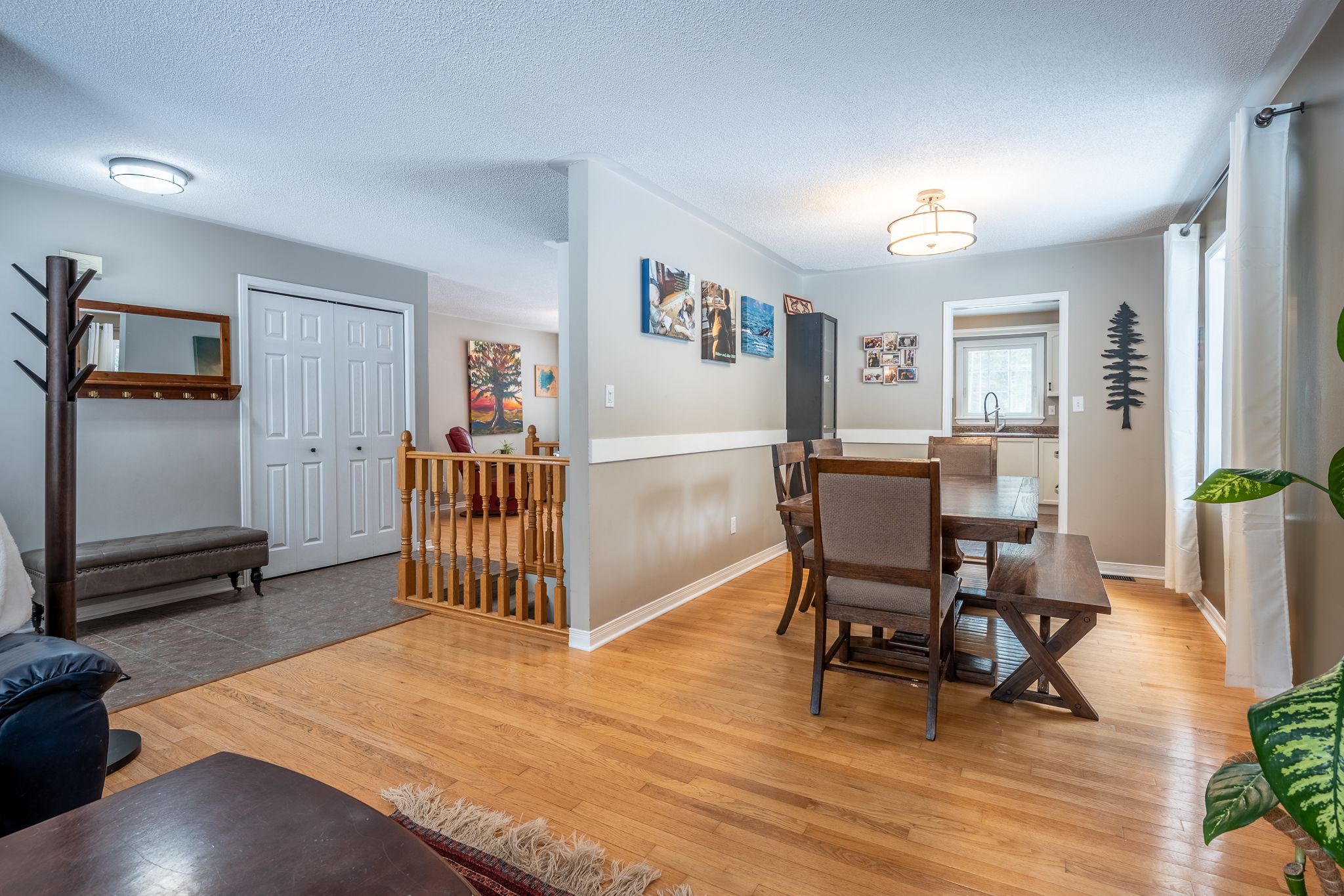 Welcome to this beautifully maintained bungalow set on a picturesque one-acre lot in the sought-after forest neighbourhood. Tucked away on a quiet street, this home offers the perfect balance of privacy and convenience, just minutes from garrison petawawa, schools, parks, walking trails, and everyday amenities, an ideal setting for families. The bright and inviting main floor is filled with natural light and features hardwood flooring throughout. The kitchen is designed for both function and gathering, offering generous prep space, stainless steel appliances, and a gas range. A versatile breakfast nook or den provides additional living space and direct access to the back deck and newly finished interlock patio, perfect for entertaining or relaxed family time outdoors. A formal dining area flows seamlessly into the cozy living room, highlighted by a gas fireplace, creating a warm and welcoming space for everyday living. The main level includes a spacious primary bedroom with a newly updated 3-piece ensuite and walk-in closet, along with two additional bedrooms and a full bathroom, well-suited for growing families. The fully finished lower level expands your living space with two additional bedrooms, a third full bathroom, a beautifully appointed laundry room with ample storage, and a large family room ideal for movie nights, play space, or a home gym. Outside, the fully fenced, park-like yard offers exceptional space for children and pets to play safely, while the covered front porch provides a charming spot to enjoy your morning coffee. Extensive recent updates include many new windows, patio door, front door, back deck, interlock patio and walkway, stone steps, updated lighting, hardware, and refreshed fixtures throughout, all offering peace of mind and a move-in-ready experience.