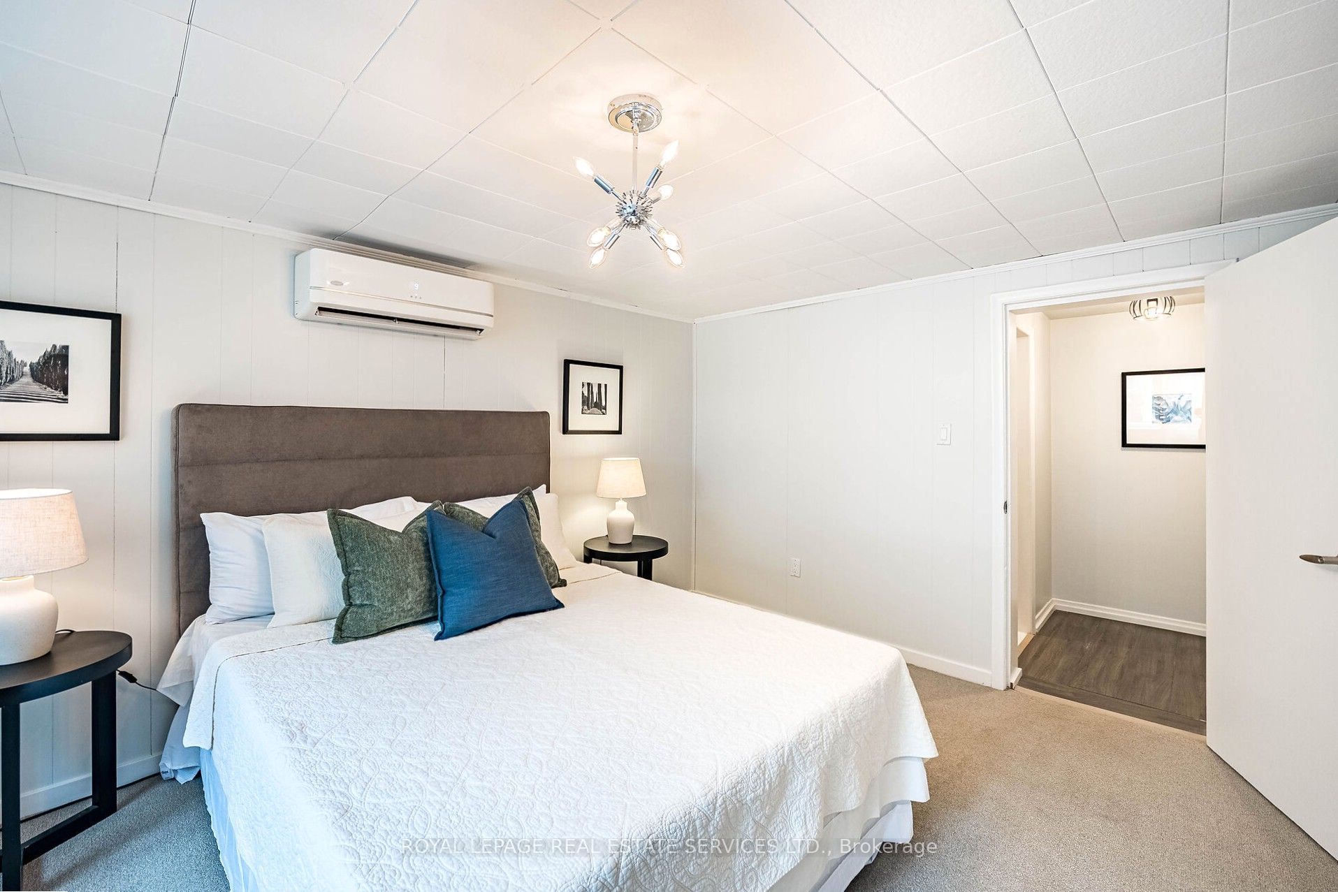 • Spacious bedroom comfortably fits a queen-sized bed.
