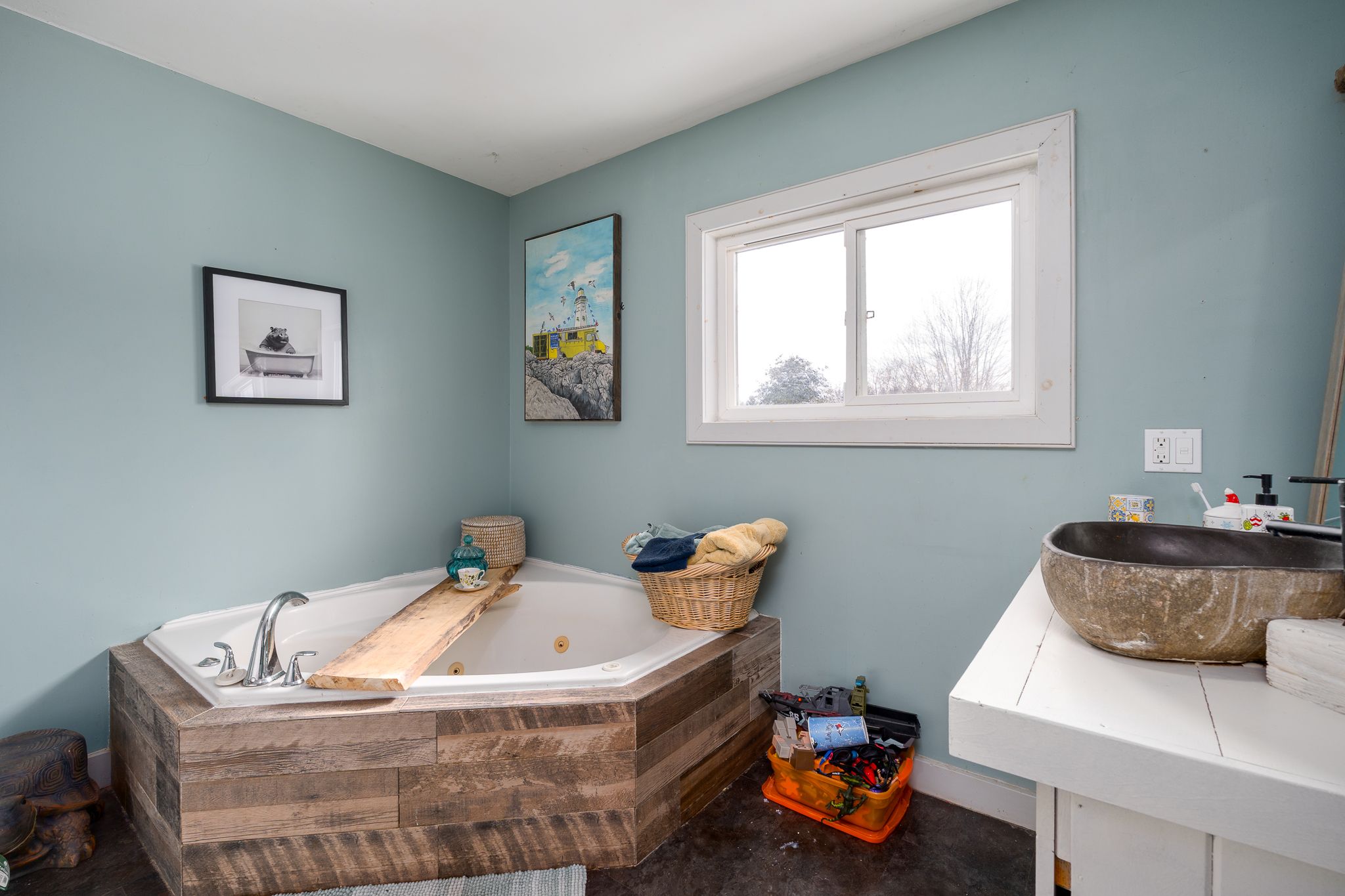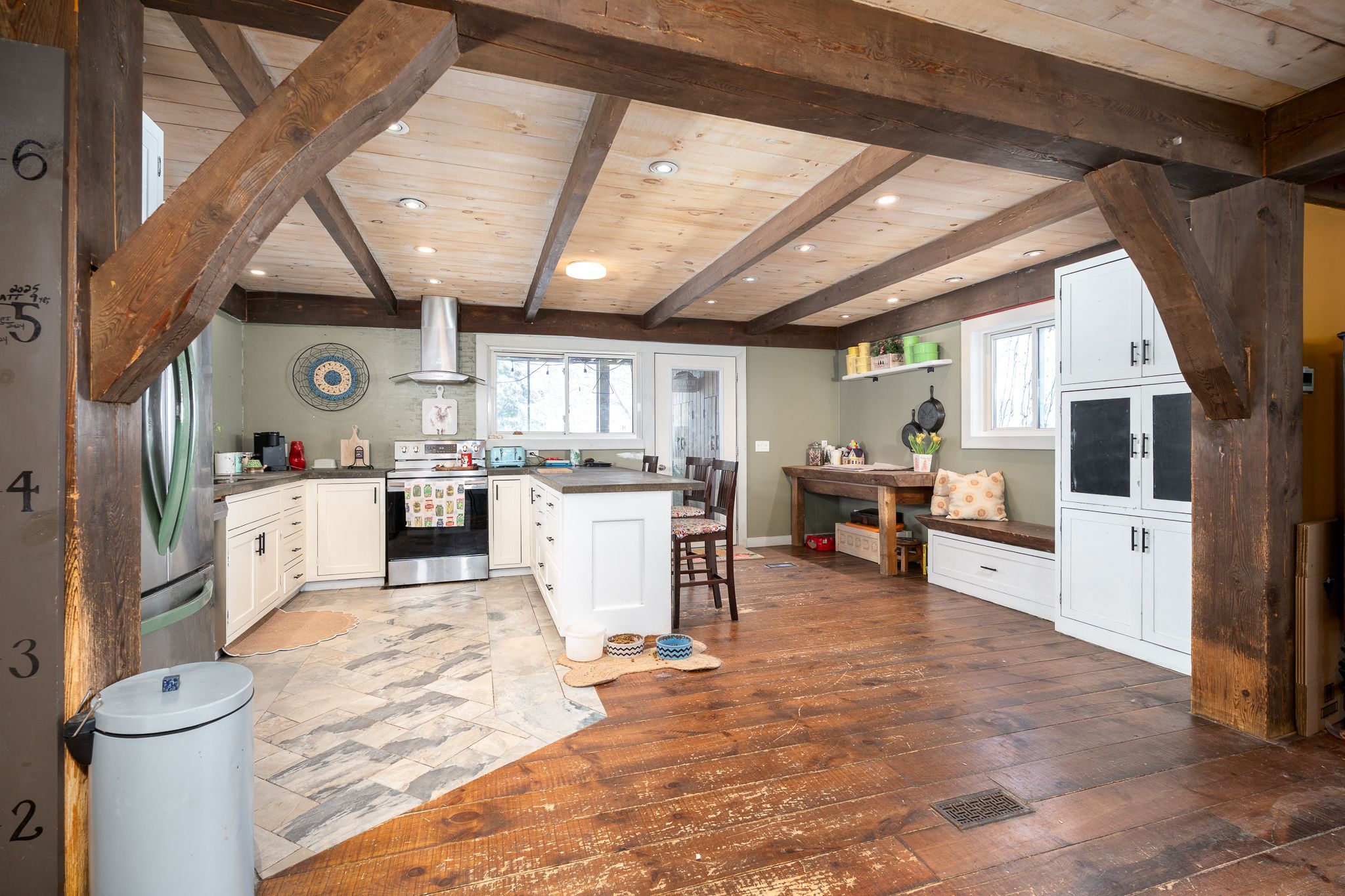 Welcome to 6 union street in the heart of croydon - a warm,character-filled retreat where timeless craftsmanship meets comfortable modern living. This inviting 4+1 bedroom, 2-bath post-and-beam two-storey homeshowcases stunning exposed wood accents throughout, highlighted by impressive hemlock beams that give the space its signature charm. Step inside to a bright and airy open-concept main floor featuring: a spacious living room anchored by a grand stone wood-burning fireplace a dedicated dining area perfect for hosting family and friends a generous eat-in kitchen with abundant cabinetry, extensive counter space, and seamless flowjust off the kitchen, enjoy a beautifully screened-in deck overlooking the private backyard - an ideal spot for morning coffee or warm summer evenings. This level also includes a full 4-piece bathroom and convenient mudroom with direct walkout access to the yard. Upstairs, discover four sizeable bedrooms, including a serene primary suite complete with double closets and a private balcony. A second4-piece bathroom with upper-level laundry adds everyday convenience. The partially finished basement expands your living options with: a spacious recreation room a versatile den - perfect for a home office, gym, or hobby space a fifth bedroom with a walk-in closet a utility room offering additional storageoutside, a detached garage adds versatility, storage, and potential. It can easily complement outdoor entertaining thanks to its covered patio area. Full of character, function, and space, 6 union street offers a rare opportunity to own a truly unique family home with exceptional value.