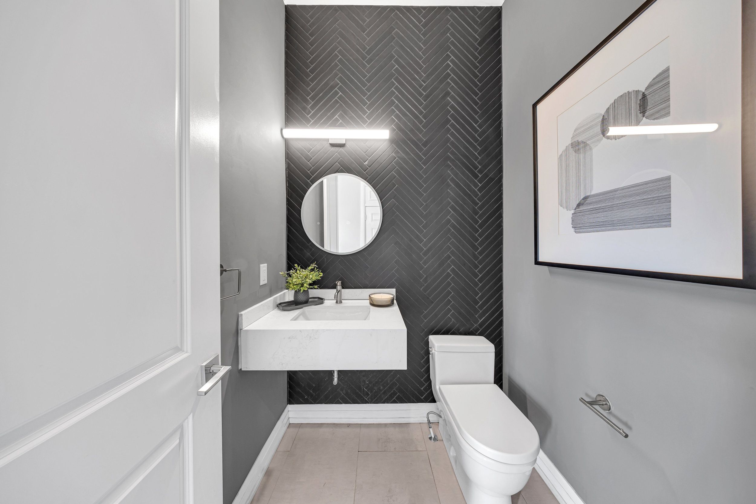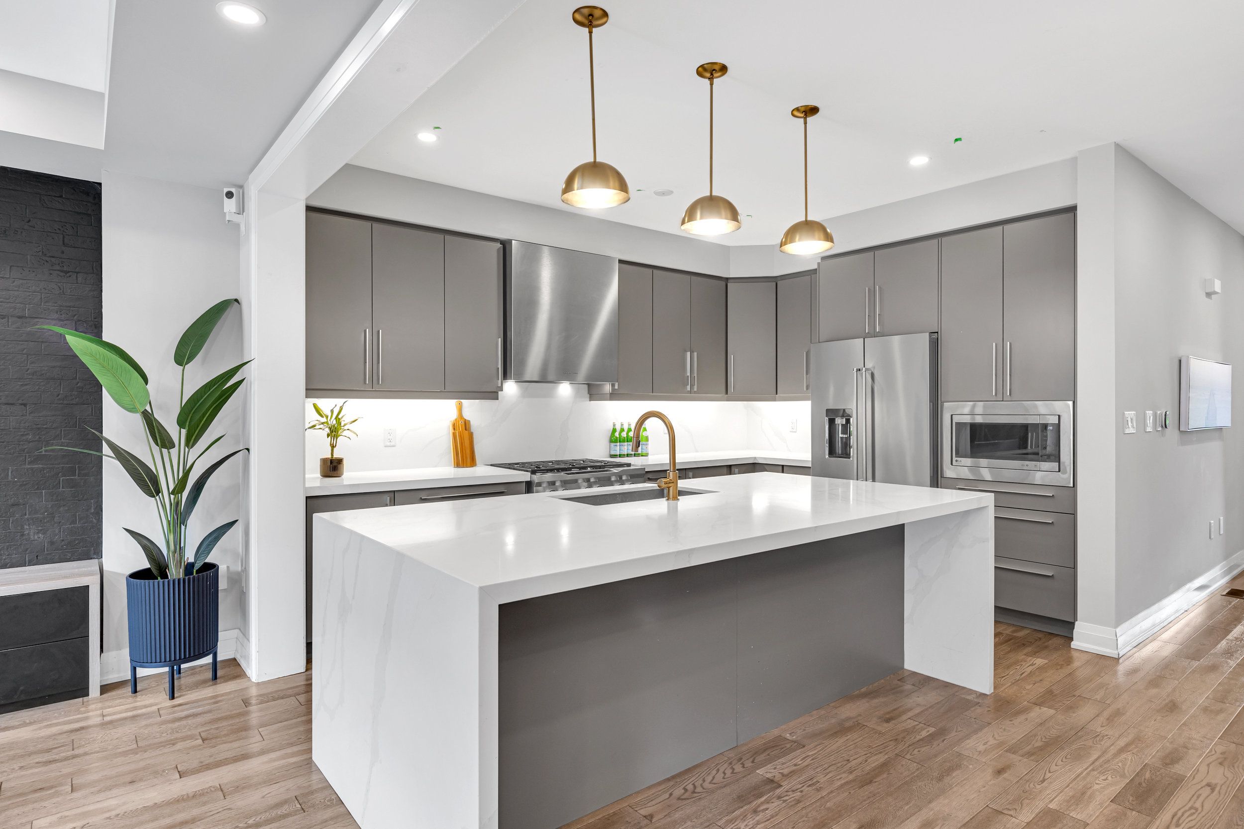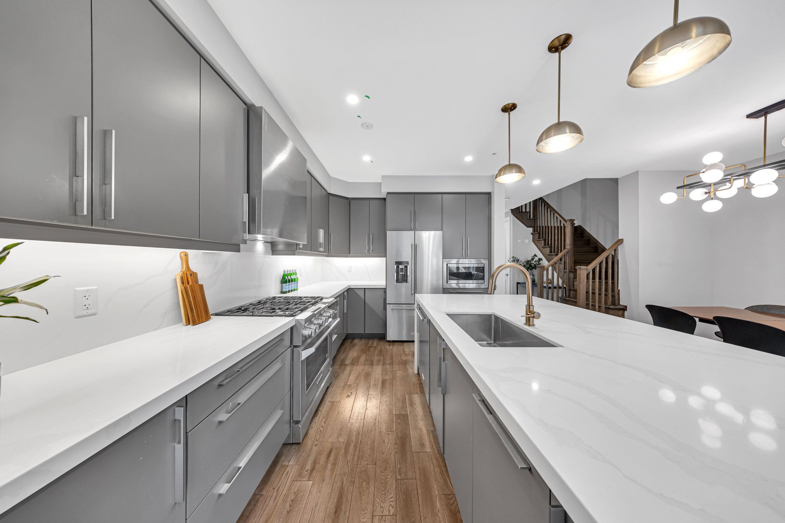 • Gourmet kitchen with quartz countertops and premium KitchenAid appliances.