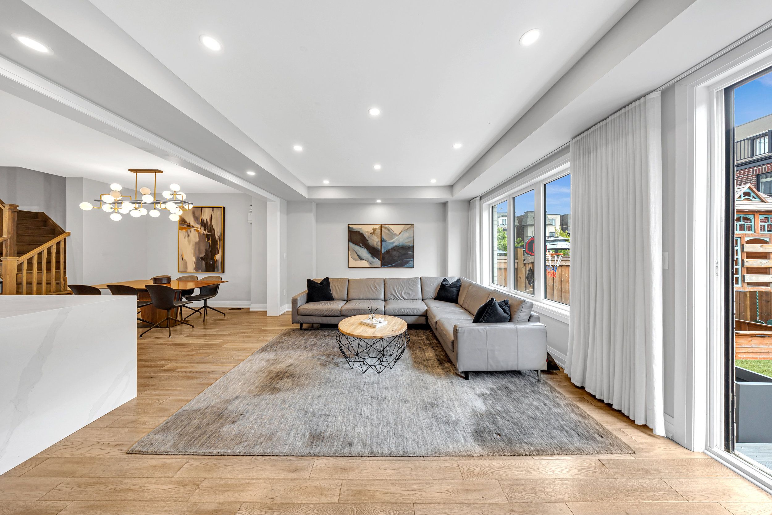 • Open-concept family room features oversized windows and private deck access.