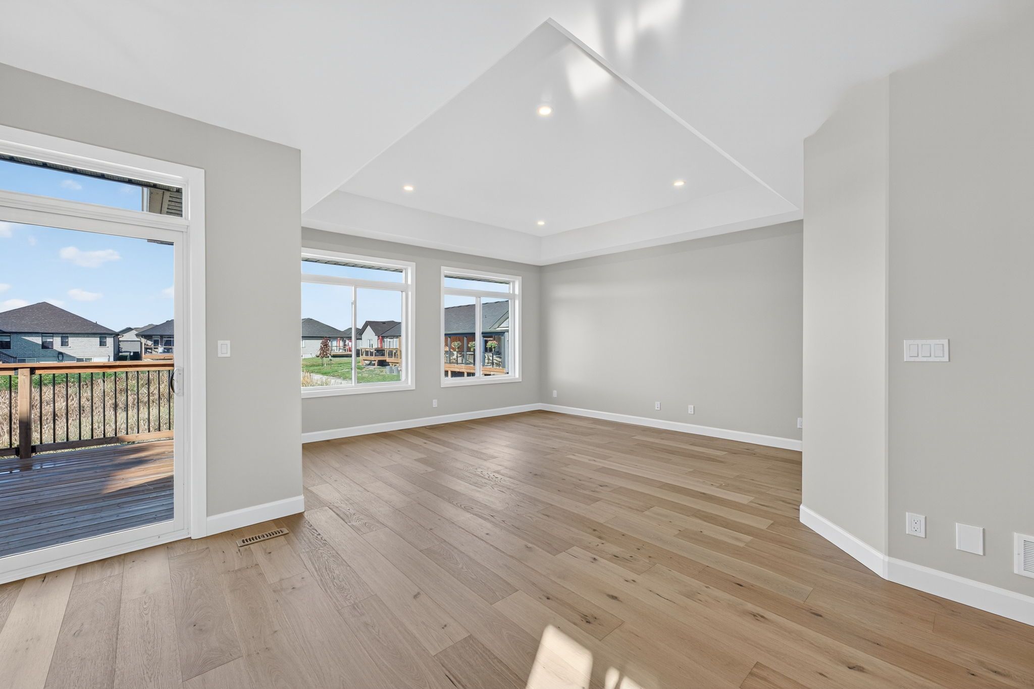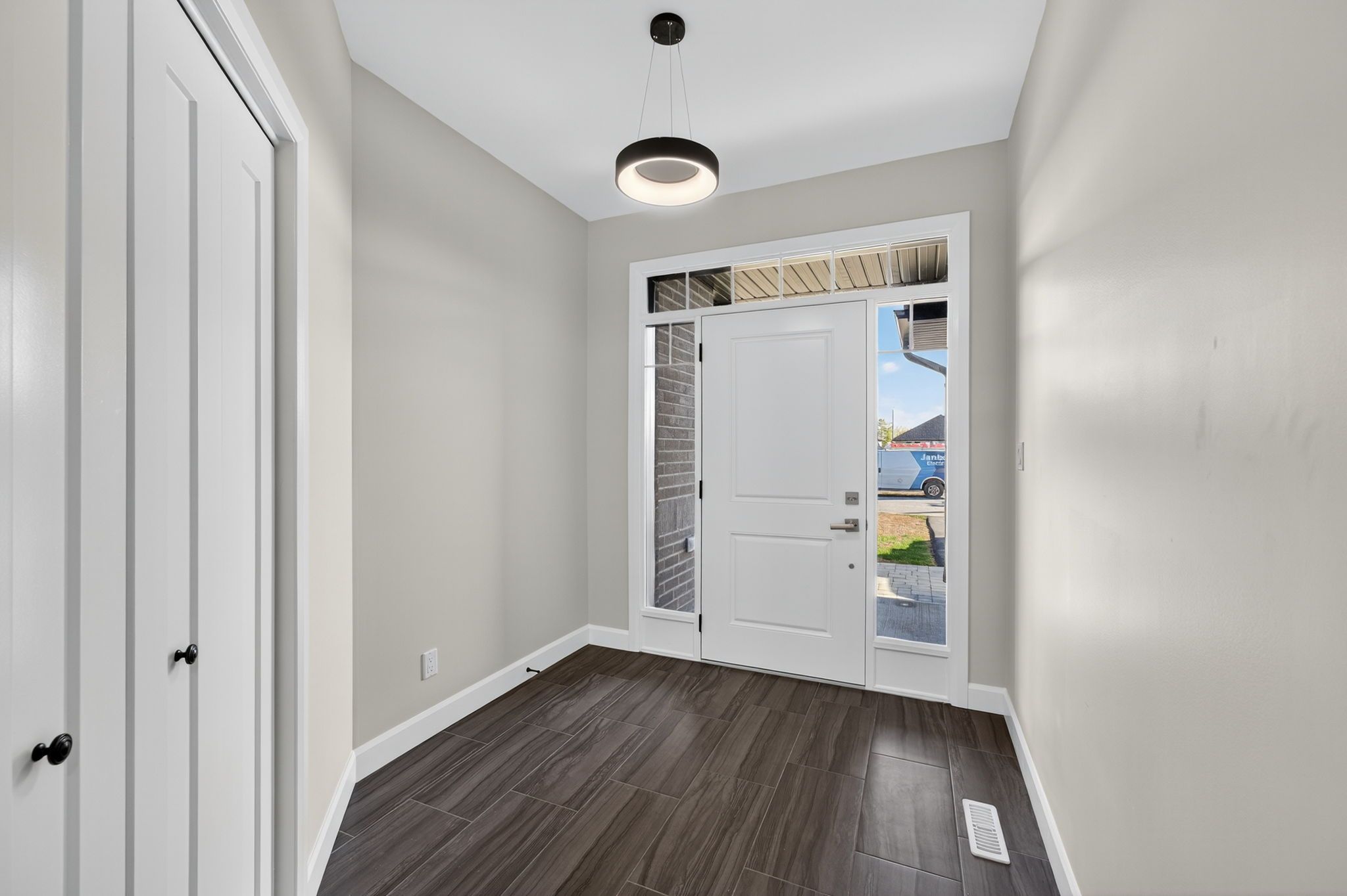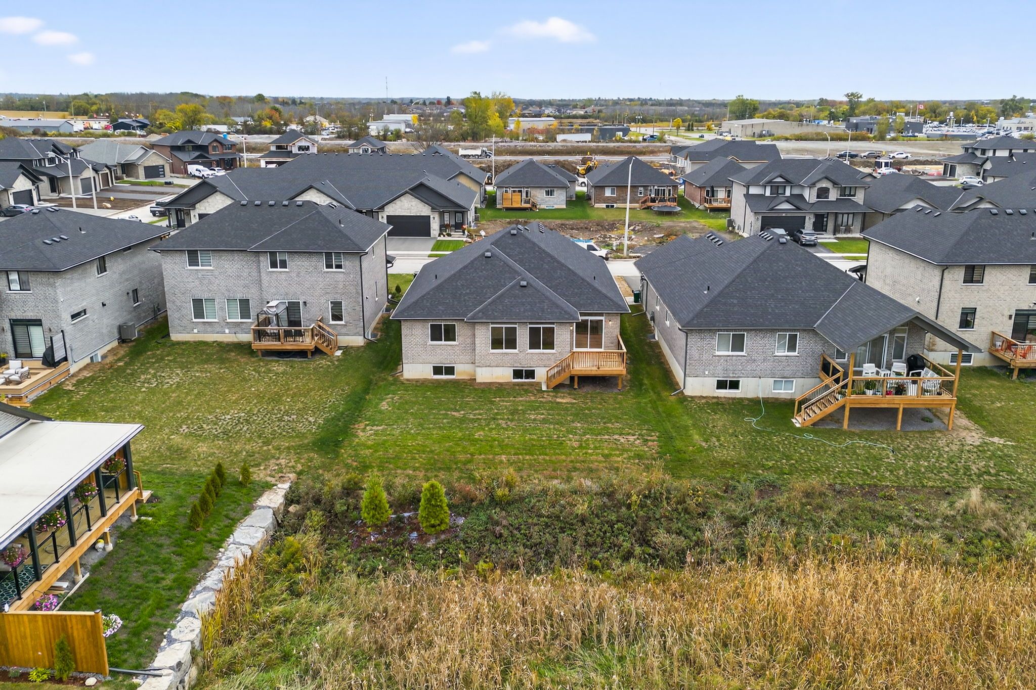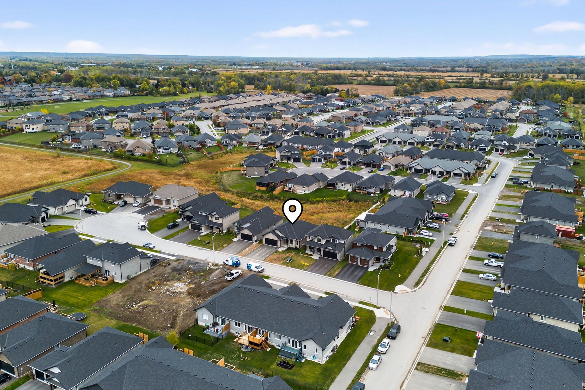 Move-in ready and fully finished! This 5 bedroom, 3 bathroom quinte model all brick bungalow by duvanco homes sits on a premium lot on cul-de-sac backing onto green space, offering privacy and peaceful views. Designed with modern living in mind, the open-concept layout features a custom quality kitchen with oversized island, coffered ceiling in the living room and distressed wide plank hardwood throughout the main floor. Modern light fixtures and finishes throughout. The primary suite includes a walk-in closet and luxurious ensuite with double vanity and glass-surround porcelain tile shower. Main floor laundry with access to the attached garage. Lower level finished with 2 bedrooms, 4pc bathroom and recreation room. Exterior landscaping complete with paved driveway, fully sodded yard, garden package and stone walkway. Completed pressure treated deck with black ballisters. This quinte model home is holmes approved. Settlers ridge subdivision offers trails, park, asphalt paved sidewalks, green space and is just minutes to all amenities.