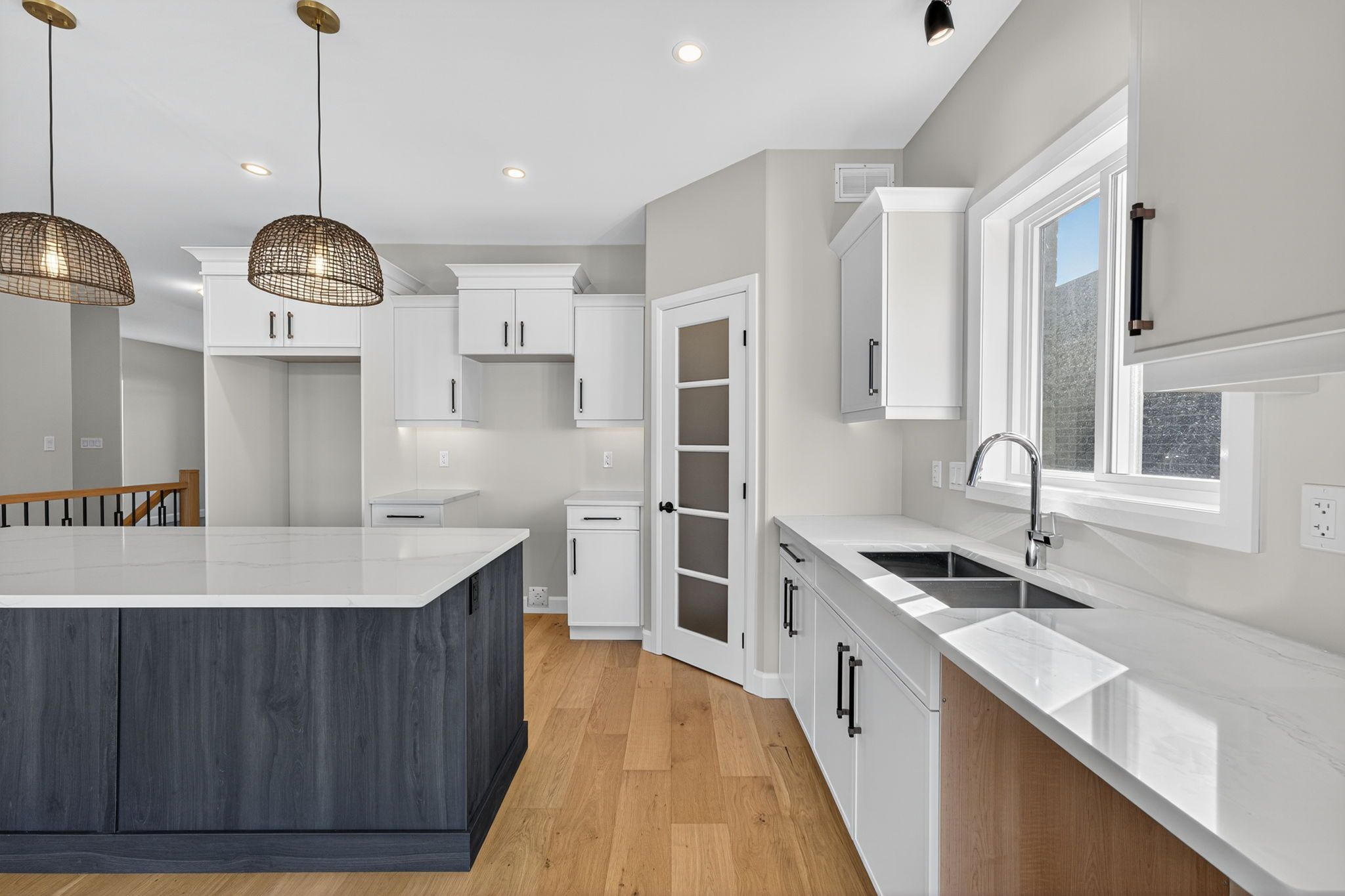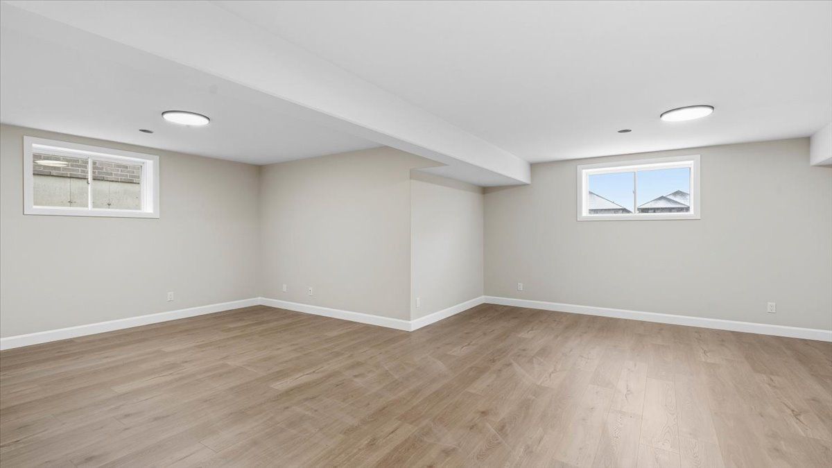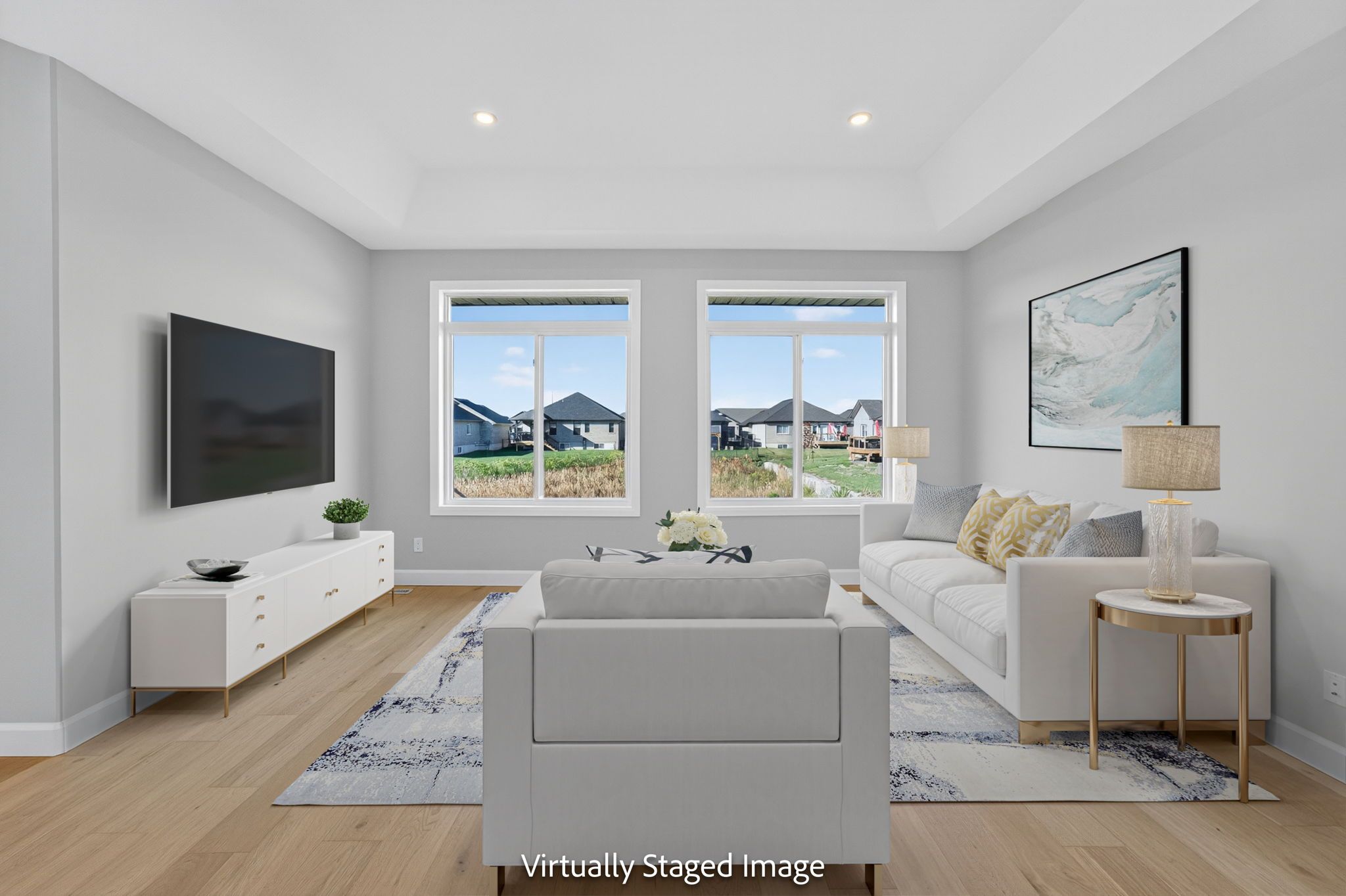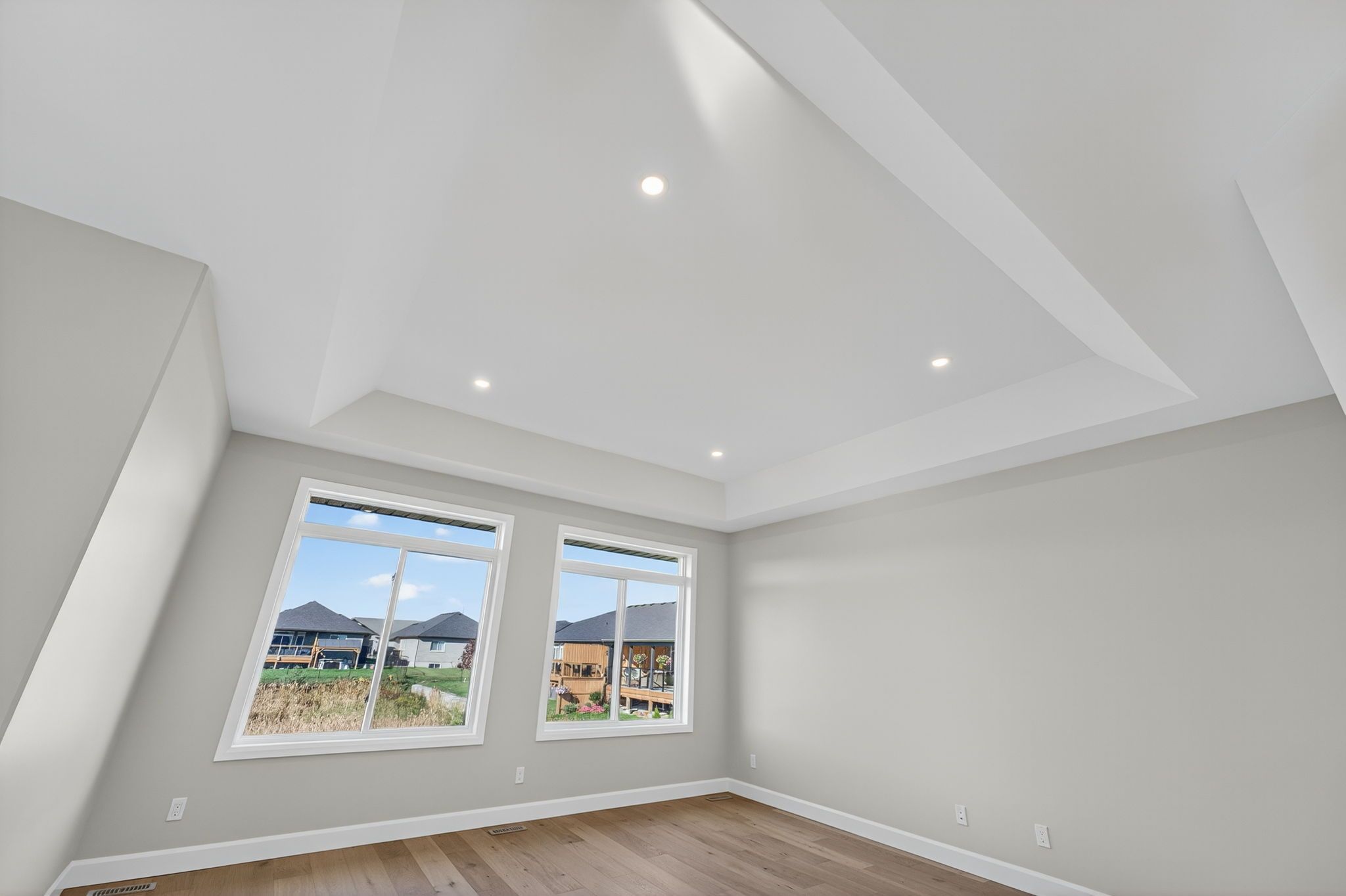 Move-in ready and fully finished! This 5 bedroom, 3 bathroom quinte model all brick bungalow by duvanco homes sits on a premium lot on cul-de-sac backing onto green space, offering privacy and peaceful views. Designed with modern living in mind, the open-concept layout features a custom quality kitchen with oversized island, coffered ceiling in the living room and distressed wide plank hardwood throughout the main floor. Modern light fixtures and finishes throughout. The primary suite includes a walk-in closet and luxurious ensuite with double vanity and glass-surround porcelain tile shower. Main floor laundry with access to the attached garage. Lower level finished with 2 bedrooms, 4pc bathroom and recreation room. Exterior landscaping complete with paved driveway, fully sodded yard, garden package and stone walkway. Completed pressure treated deck with black ballisters. This quinte model home is holmes approved. Settlers ridge subdivision offers trails, park, asphalt paved sidewalks, green space and is just minutes to all amenities.