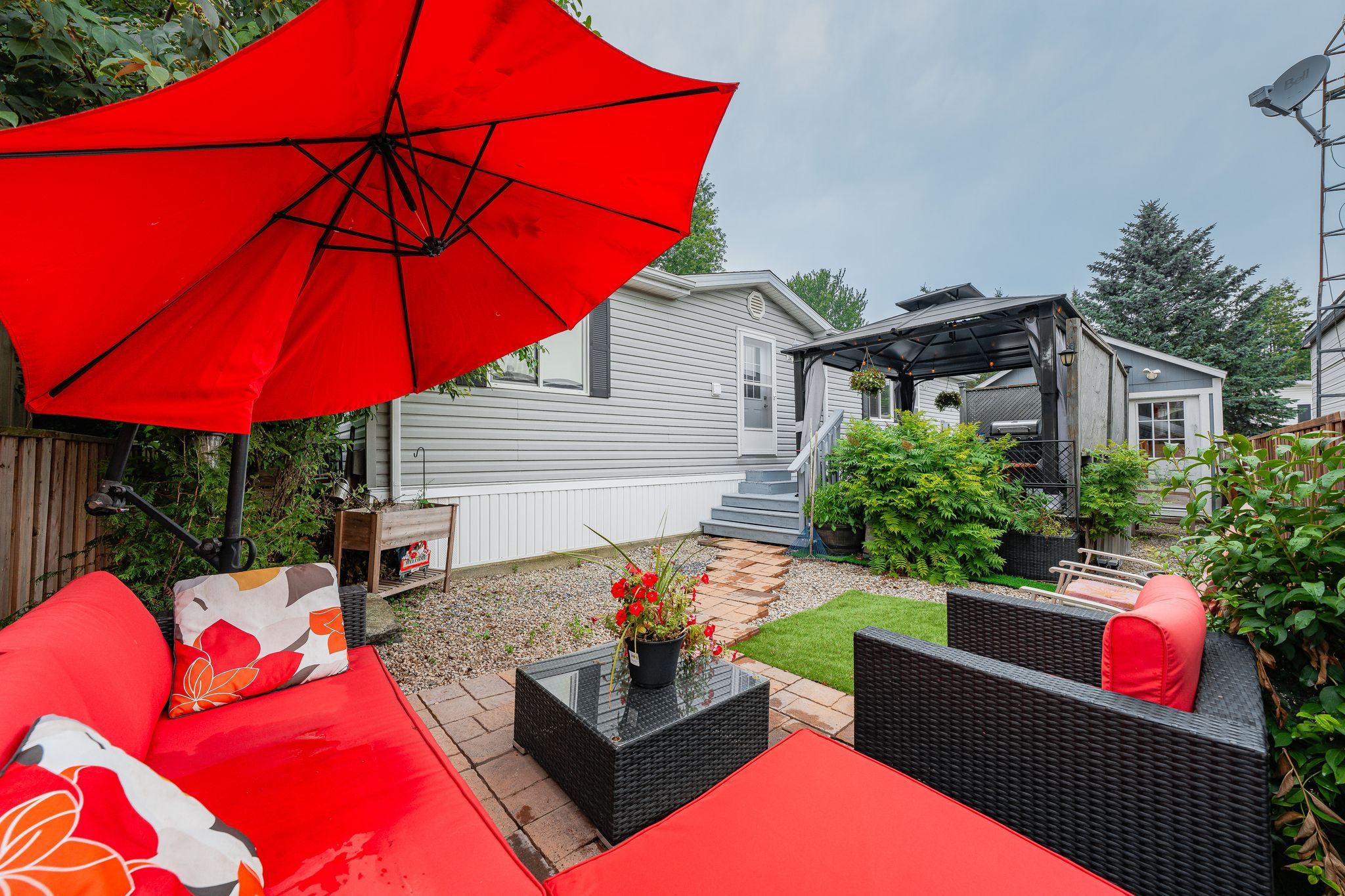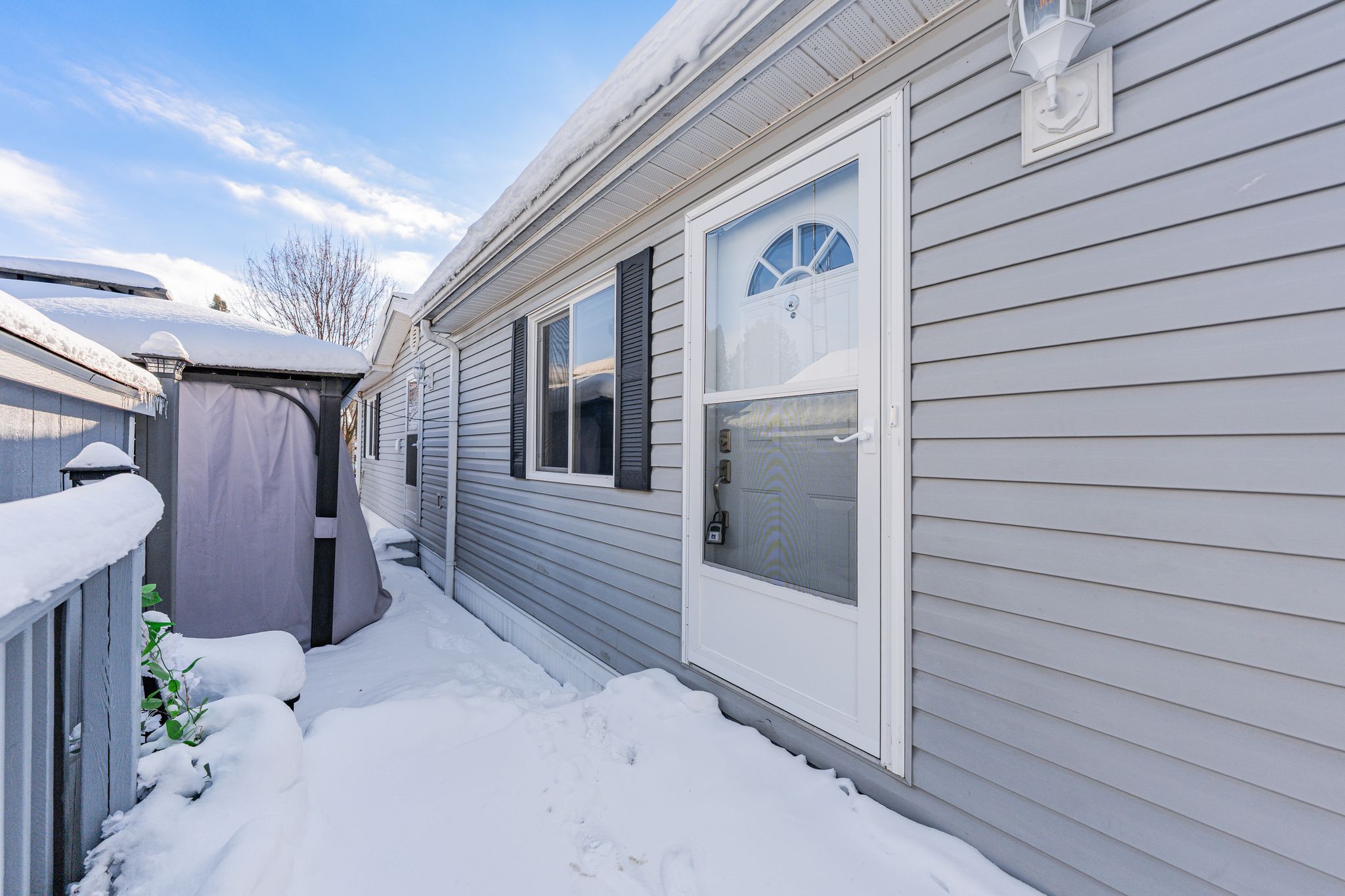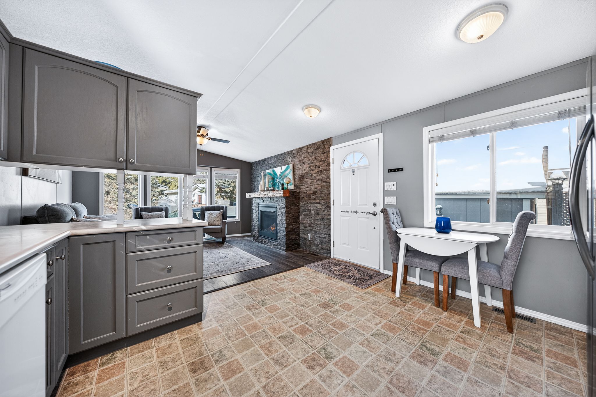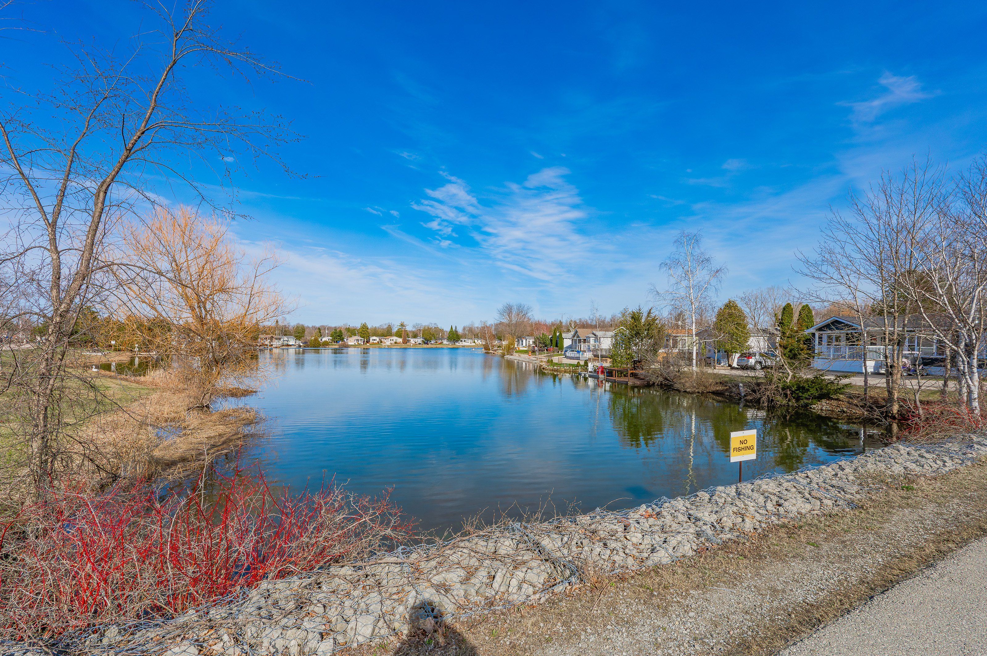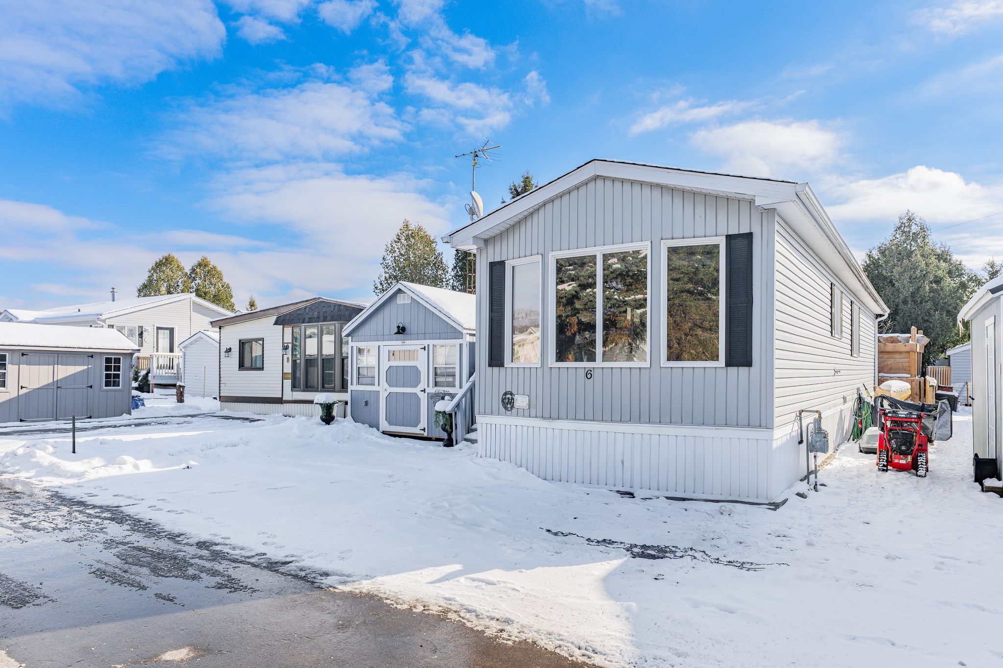 Cosy up in front of the fireplace! This charming home is located in a year round gated community and is perfectly situated on a quiet, private lot. You'll find all the comforts of home with plenty of charm, including the cozy natural gas fireplace featuring a beautiful stone surround and mantel. The open-concept living area is ideal for entertaining or simply enjoying everyday life, whether you're cooking dinner or catching up on your favourite show, you're always part of the conversation. Down the hall, the primary bedroom is peacefully tucked away at the back of the home, perfect for sleeping. A well-appointed bathroom with a bright skylight sits conveniently between the primary and second bedroom, offering privacy and functionality. Outside enjoy meals on the deck or lounging in the yard. The shed (10' x 12') with front and rear door provides ample storage for your tools and toys. The true magic of mini lakes lies beyond your door where a sense of community envelopes you. There are activities for every interest-bocce, cards, darts, golf tournaments, walking clubs, and more you'll never run out of things to do. The driveway has been freshly paved and there is plenty of room to park 2 vehicles and a golf cart! Whether you're looking for a peaceful retreat or a fun-filled lifestyle, this home and resort style community have it all.