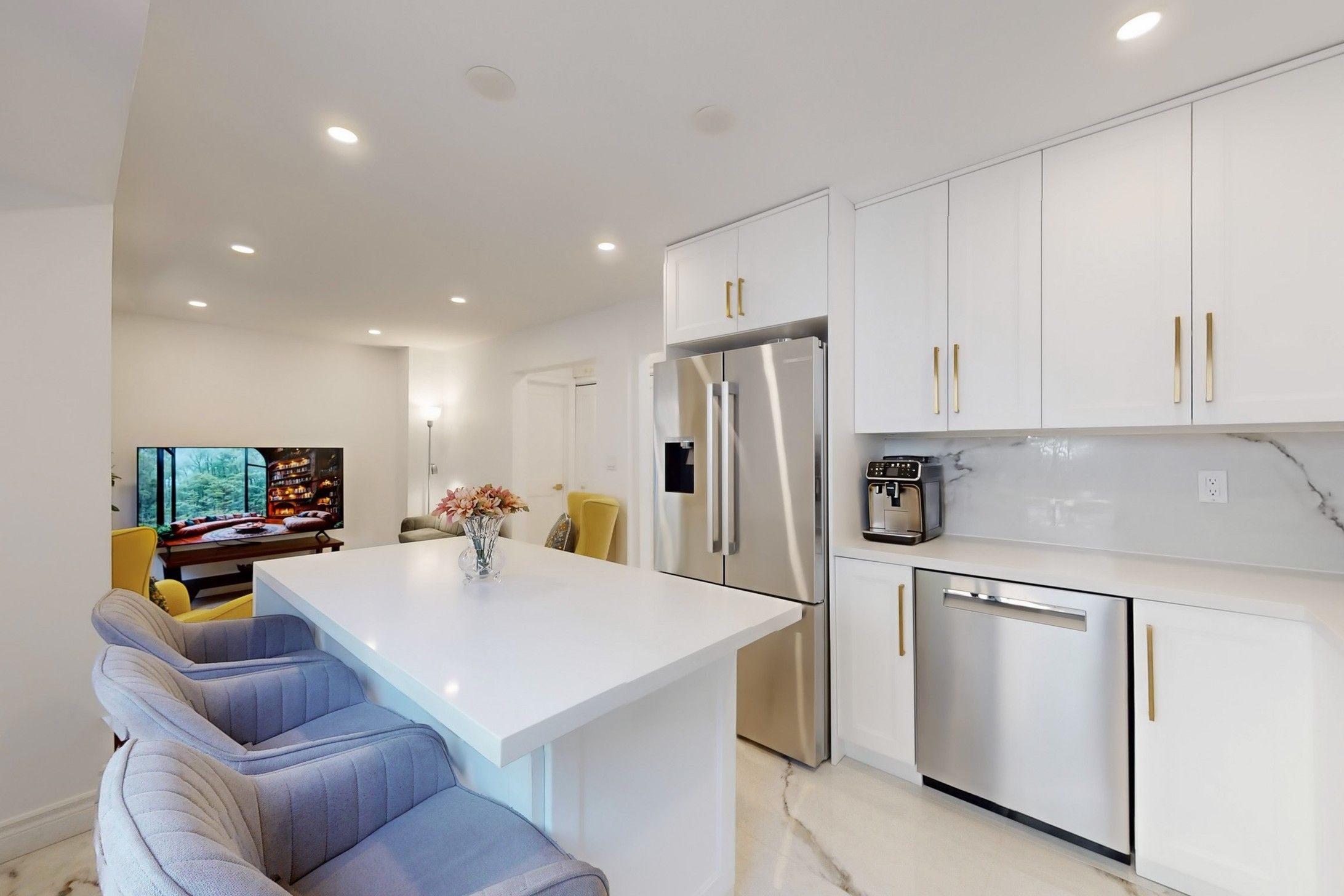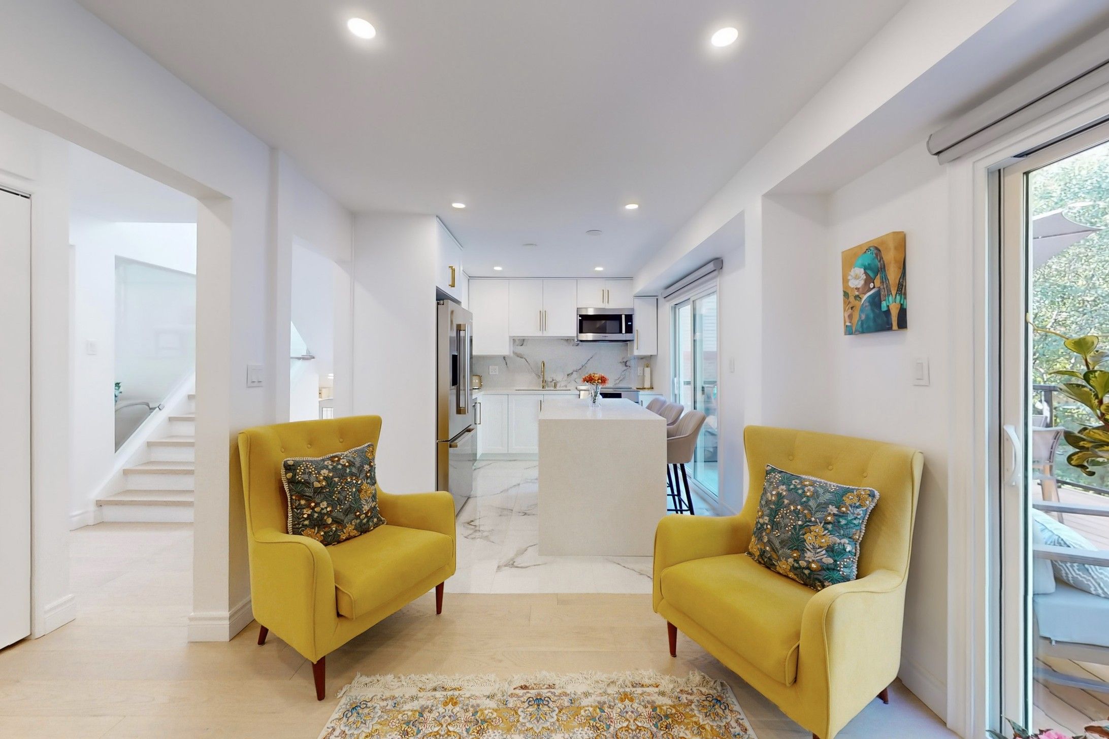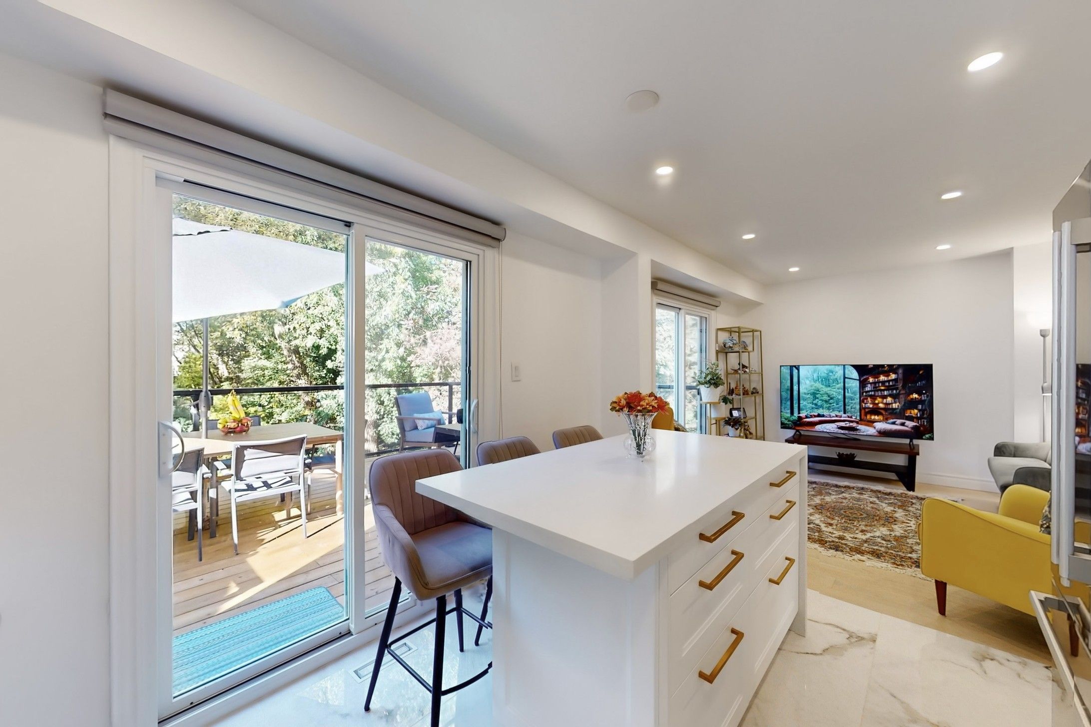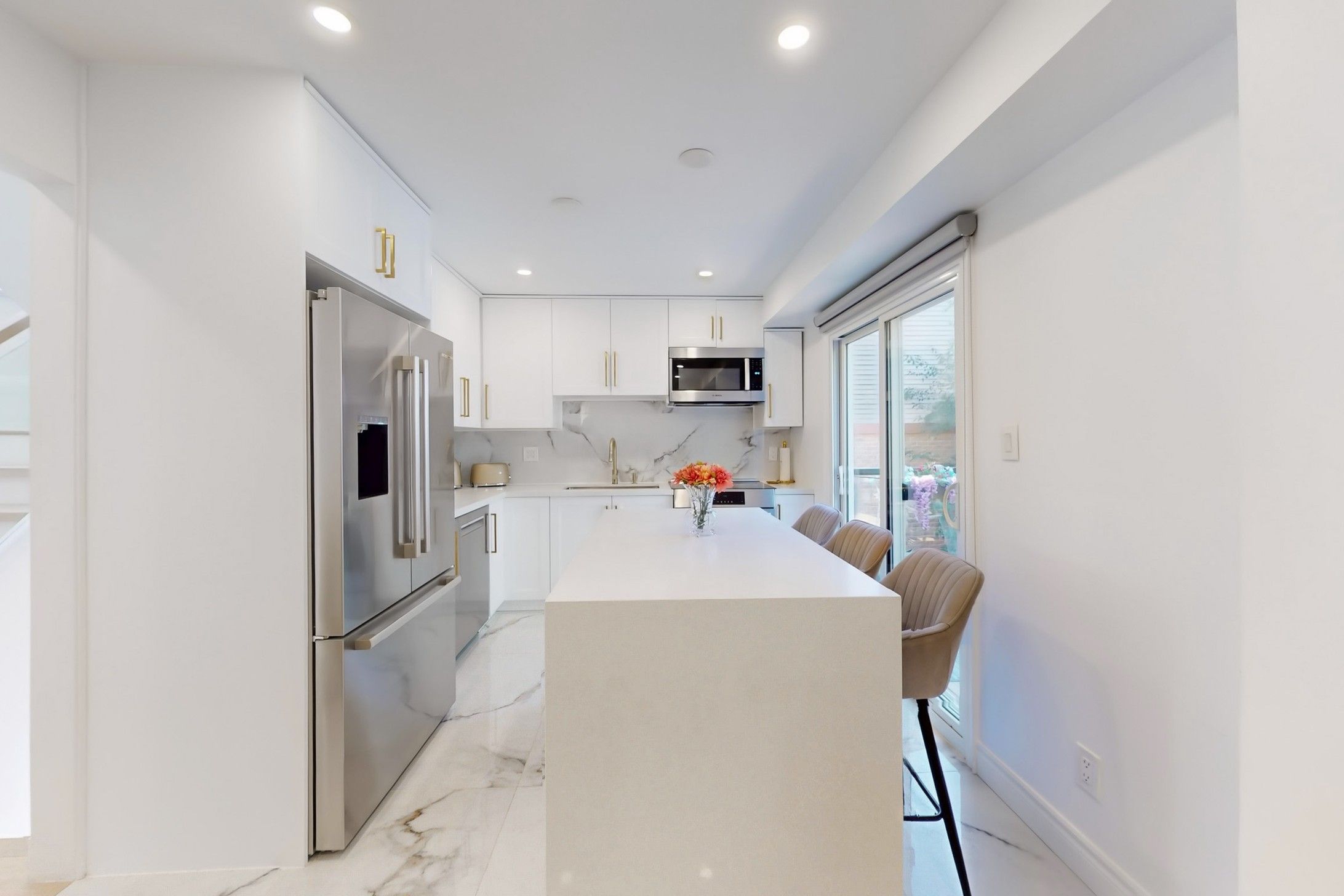 • Open-concept layout with new flooring and gourmet kitchen with premium appliances.
