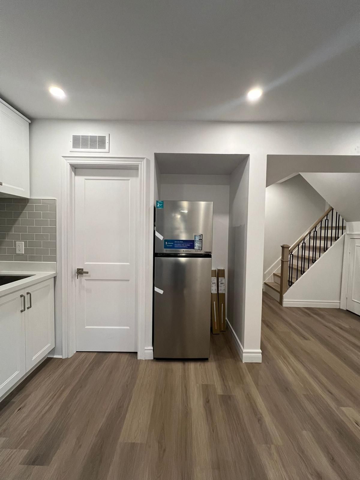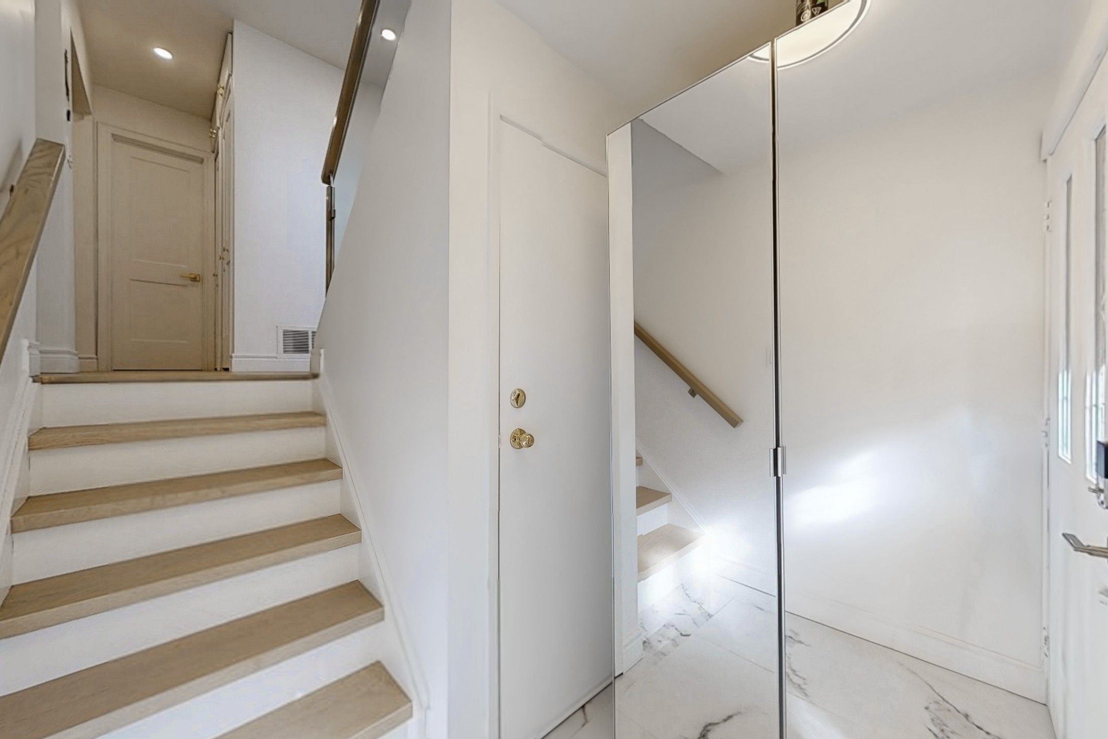Experience modern luxury and tranquillity in this beautifully renovated freehold townhome, which is only attached by the garage. Situated on a premium lot that backs onto lush green space with a small creek, this home offers a serene setting. The open-concept layout features new flooring and a gourmet kitchen equipped with premium bosch appliances. Entertain effortlessly on the expansive deck that overlooks your fully fenced, private backyardperfect for summer barbecues. The bright walk-out basement (1+1), complete with its own entrance & laundry, is ideal for an in-law suite or guest retreat. Conveniently located near major transportation, shopping, and amenities, this turnkey property is more than just a home; it's a destination. The renovations completed in 2025 feature high-quality upgrades, including new hardwood flooring, upgraded stairs, and a striking glass railing. You'll find modern pot lights, fresh paint throughout, a brand-new deck, and stylish patio doors. Built-in closets and a dedicated laundry closet add functionality. The kitchens and bathrooms have been expertly renovated with luxurious quartz countertops. Moreover, the property boasts an impressive interlocked driveway and walkway, along with numerous other enhancements that elevate its appeal.