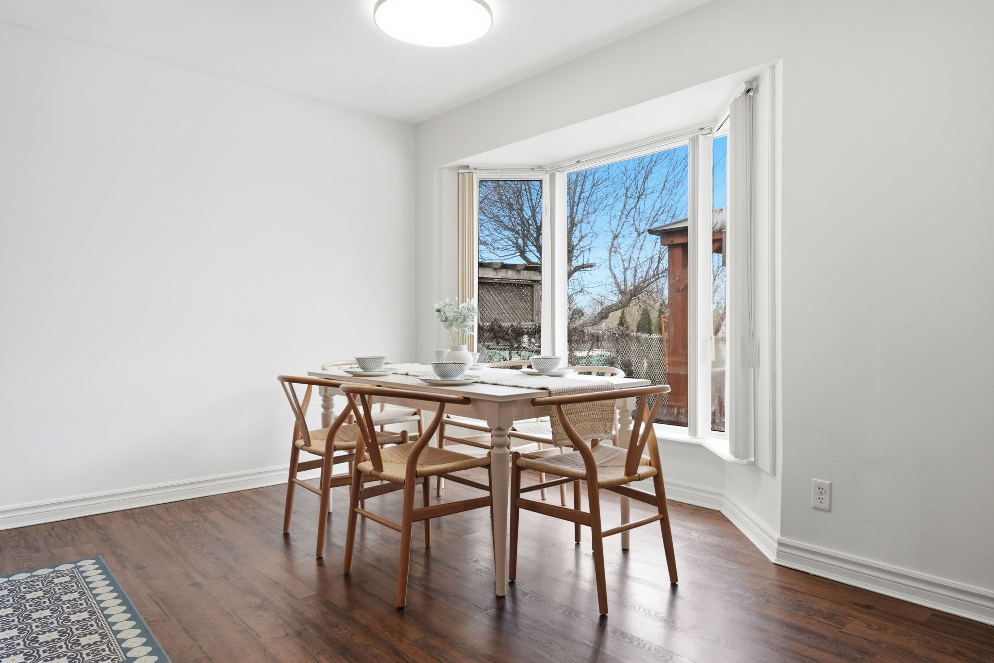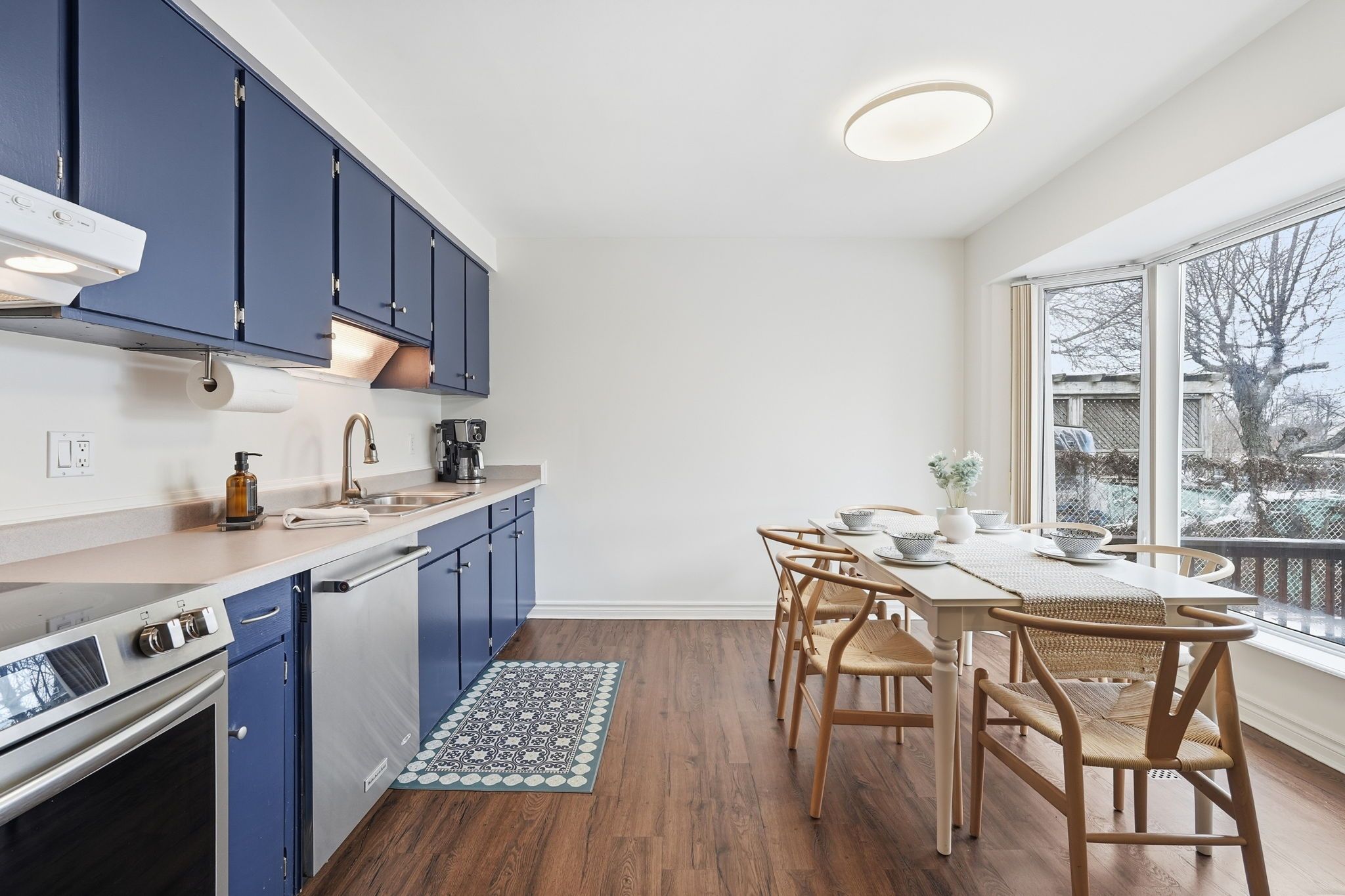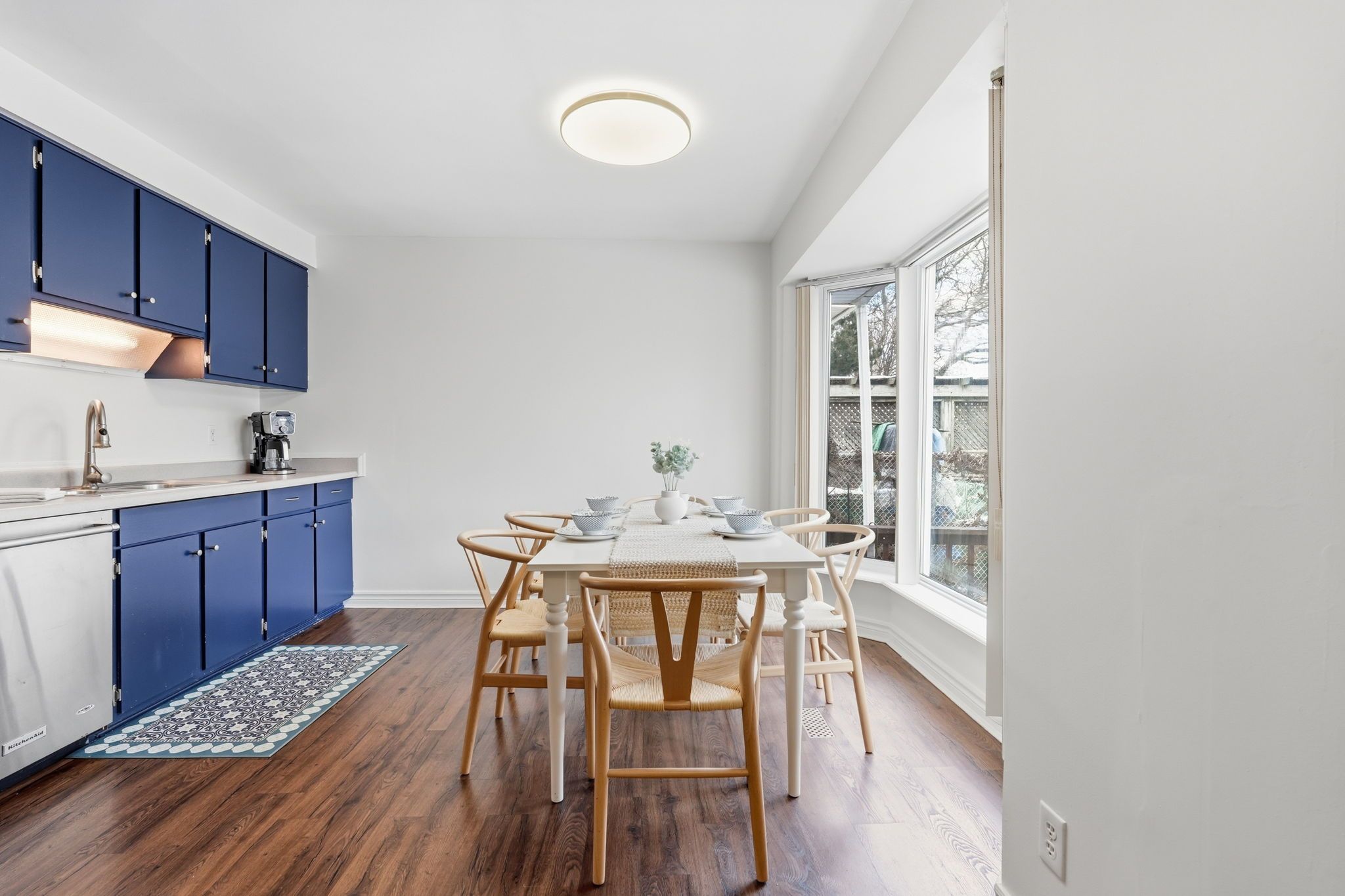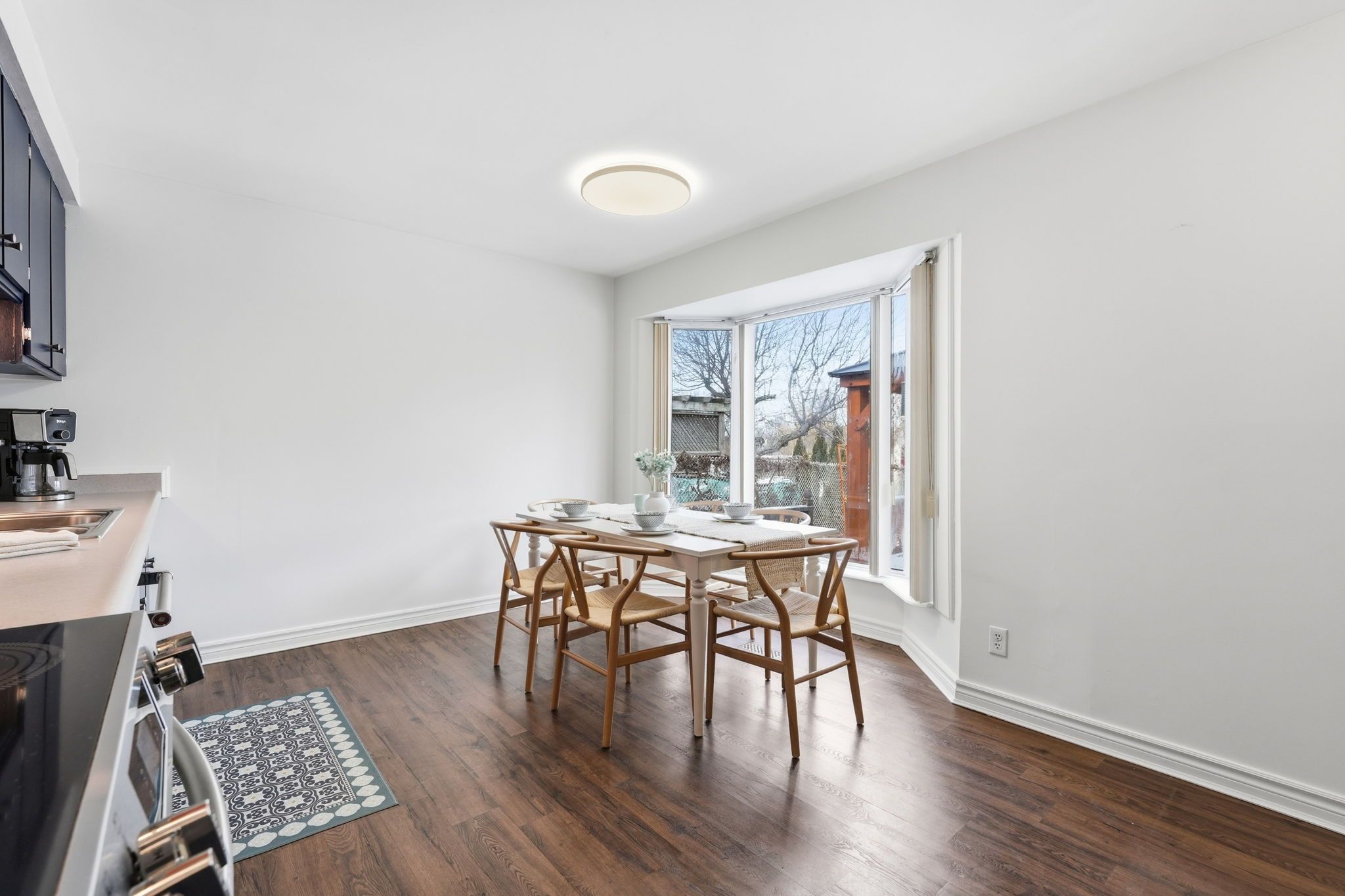 • Bright living room and spacious eat-in kitchen with charming bay window.