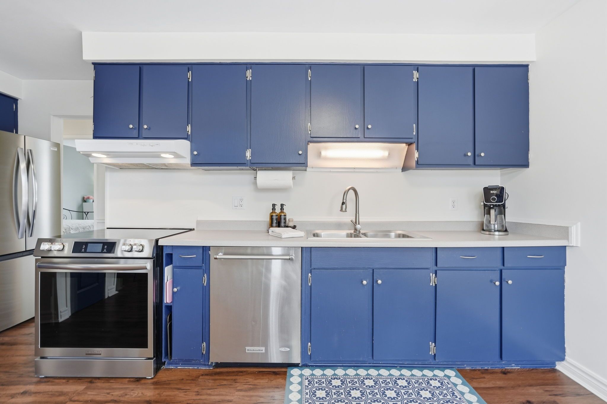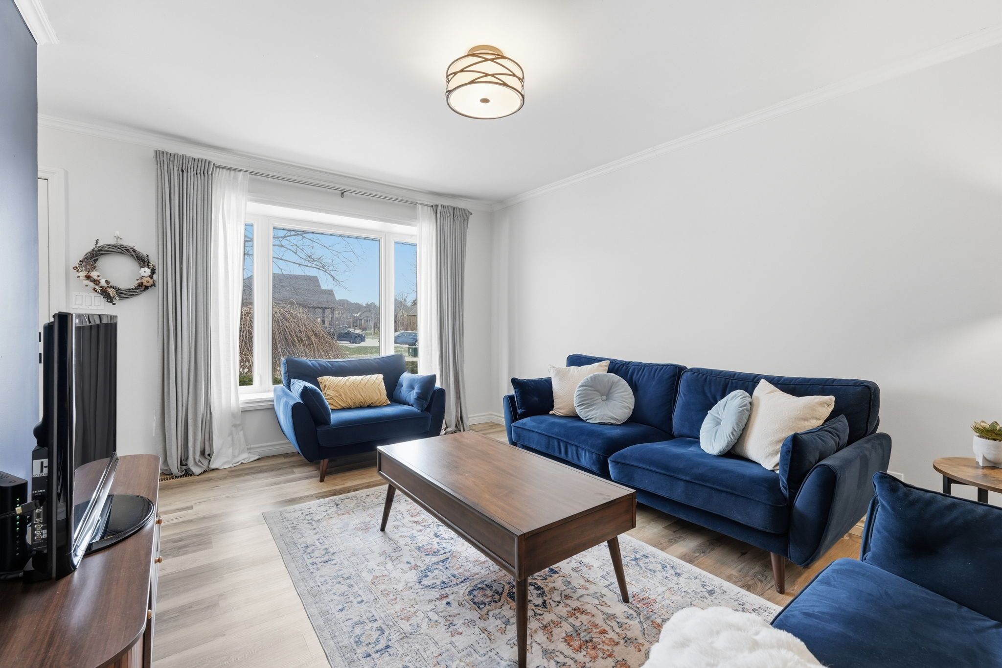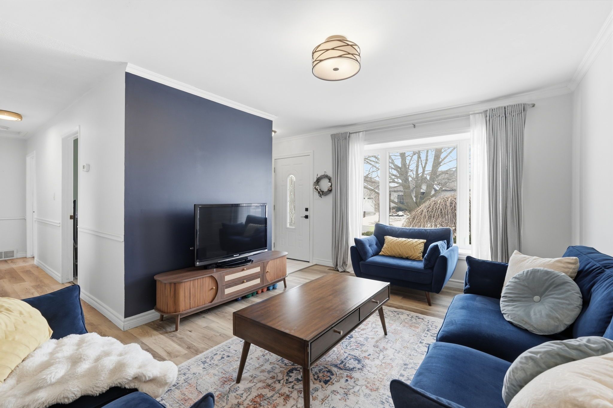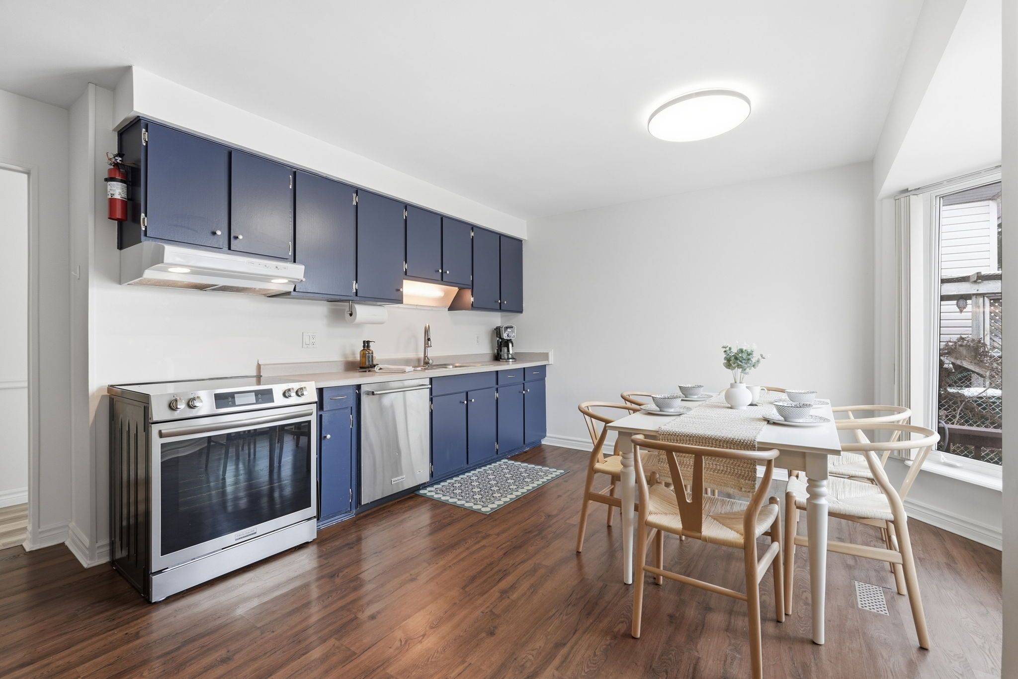 • Bright living room and spacious eat-in kitchen with charming bay window.