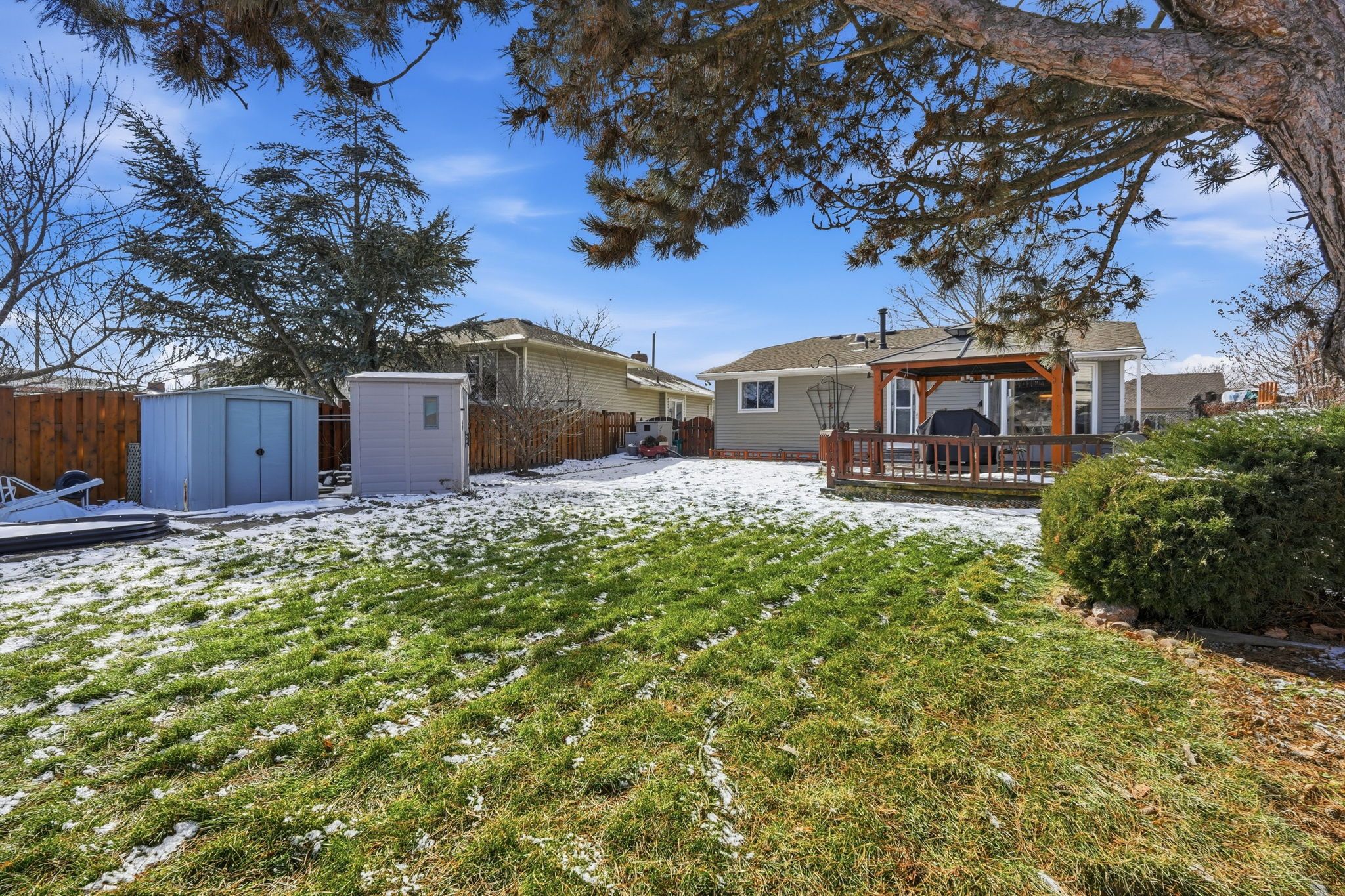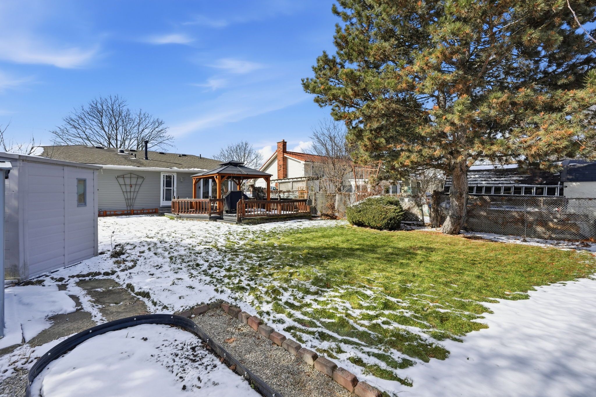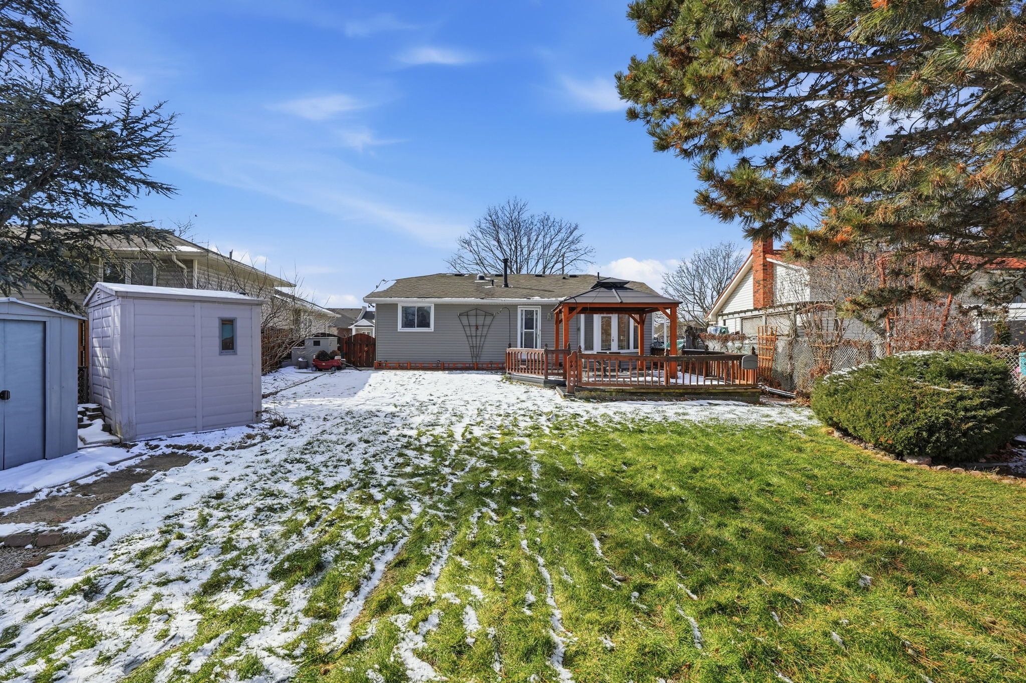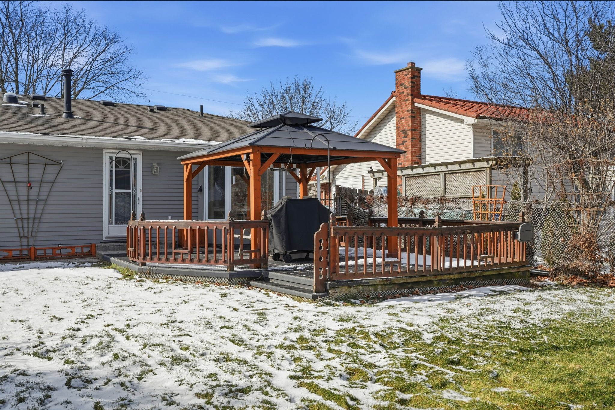• Beautifully landscaped backyard with gazebo and fully fenced yard for pets.