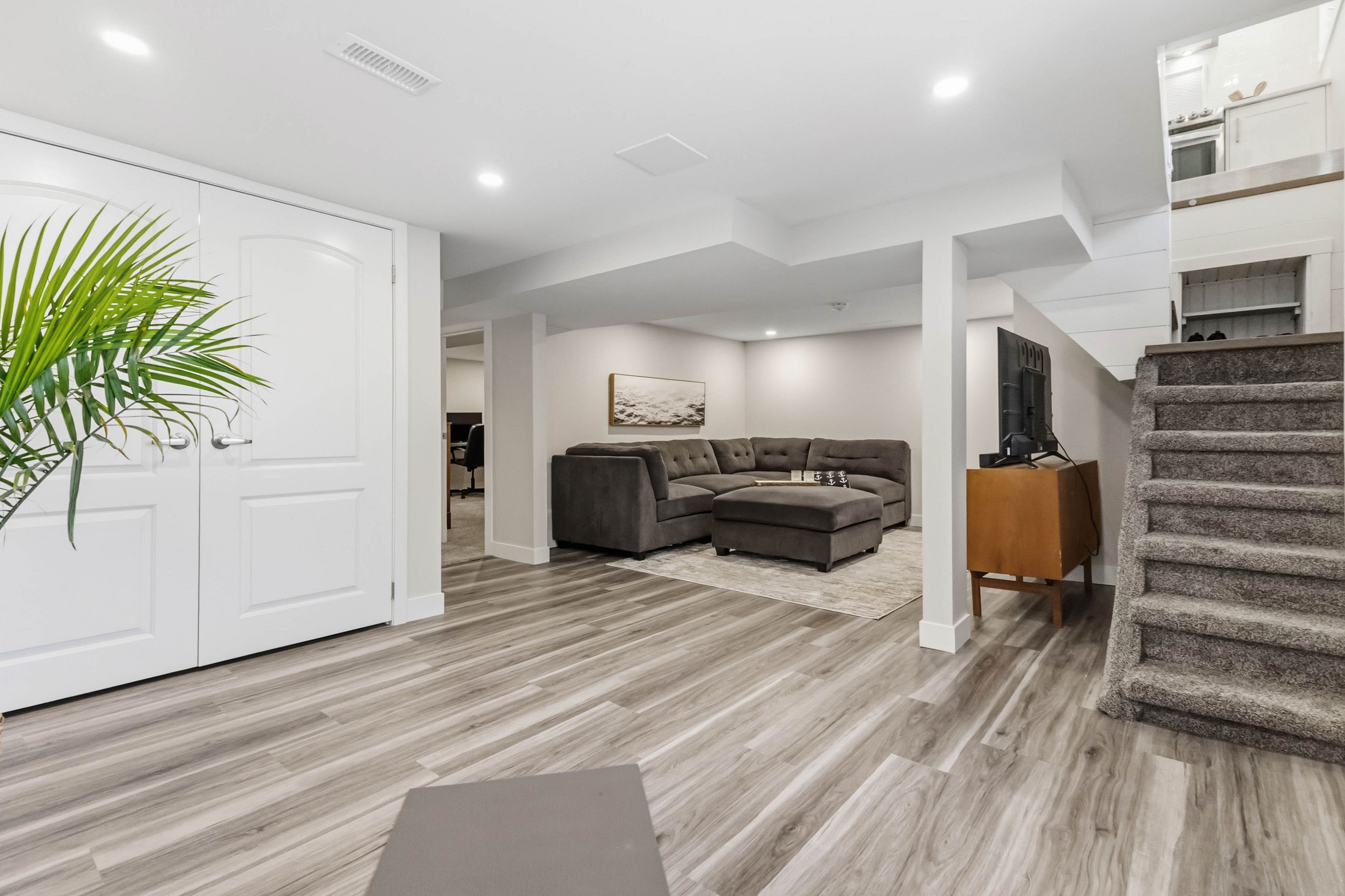 • Finished lower level includes two additional bedrooms and spacious recreation area.