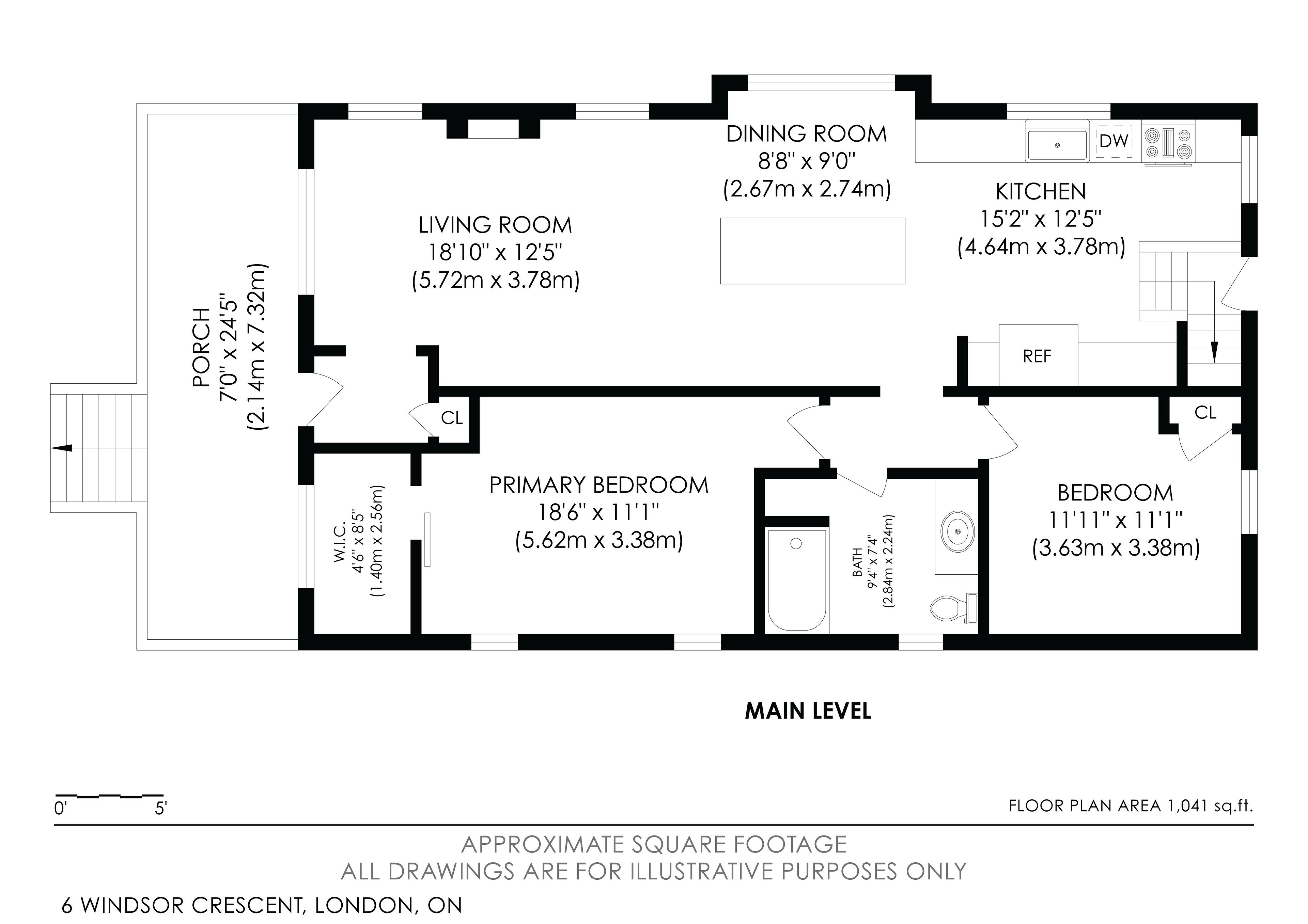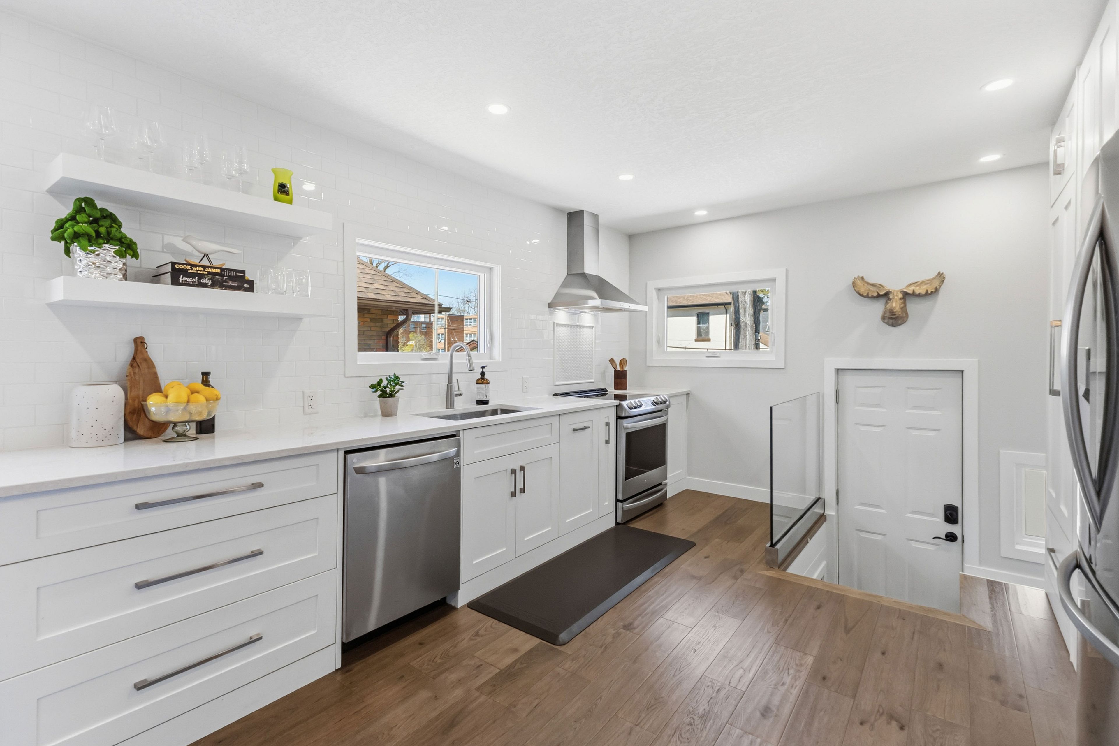 Welcome to 6 windsor crescent, a fully renovated bungalow that blends original character with modern upgrades, set in the heart of old south/wortley; voted one of canadas best neighborhoods. A covered front porch offers a welcoming introduction and a natural place to sit and enjoy the tree-lined streets. Inside, the home has been thoughtfully updated throughout, creating an open concept main living space where the kitchen, dining, and living areas connect seamlessly. The layout feels both functional and inviting, anchored by a gas fireplace, while stainless steel appliances and modern finishes complement the home's character. The main level features two bedrooms, including a primary with a walk in closet, along with a full bathroom for convenient everyday living. The finished lower level adds flexibility with two additional bedrooms, a second full bathroom, laundry, and a spacious recreation area. With approximately 1,041 sq ft above grade and 961 sq ft below, the home offers generous living space across both levels. Outside, the detached 20 x 26 two-car garage built in 2022 and fully insulated/heated; provides year-round functionality, complemented by 3 additional parking spots on concrete pad. The multi-tier backyard creates distinct outdoor spaces for relaxing or entertaining. Old south/wortley is known for its charming home, mature tree canopy, and strong architectural character, with wortley village serving as the hub of the neighbourhood, offering a mix of local shops, cafés, restaurants, and community spaces providing that small town feel.