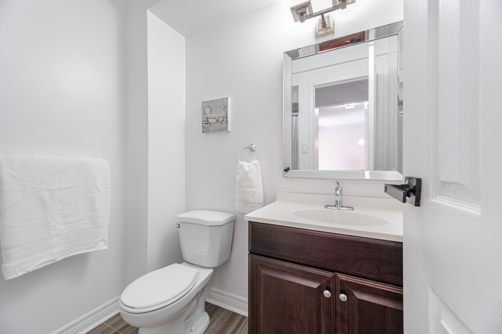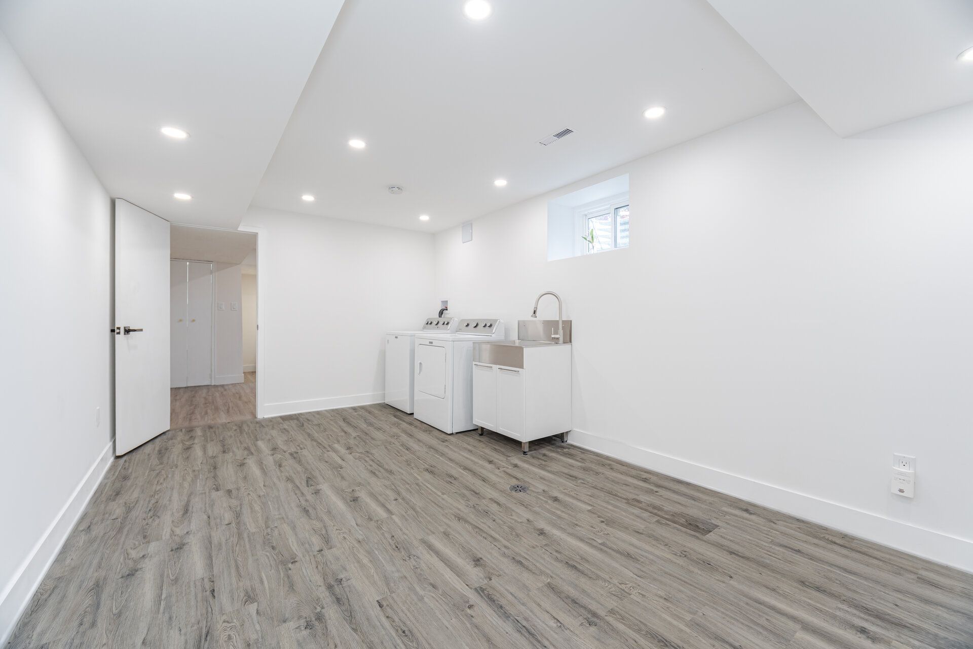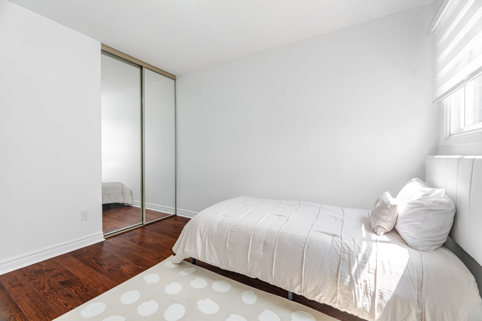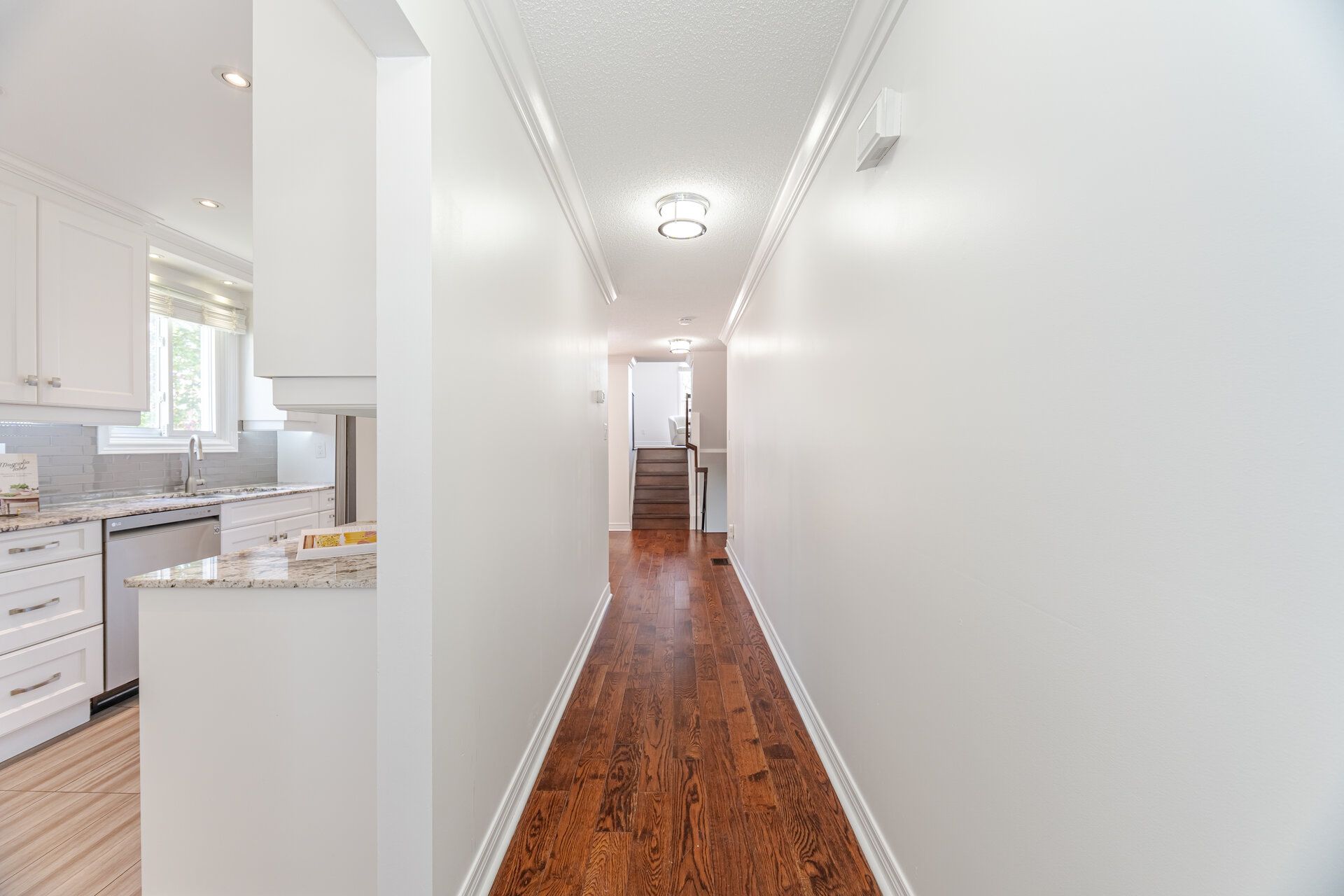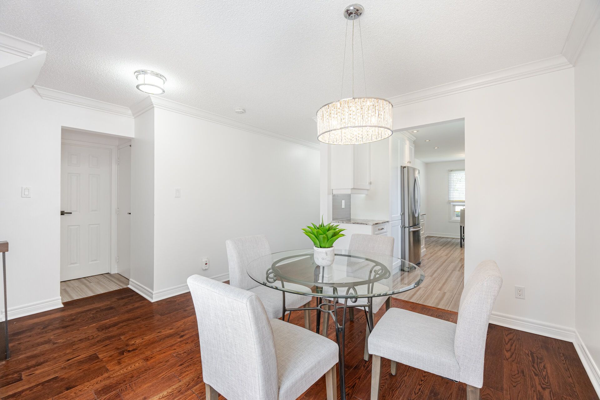 • Modern hardwood flooring and sun-filled open-concept living and dining area.
