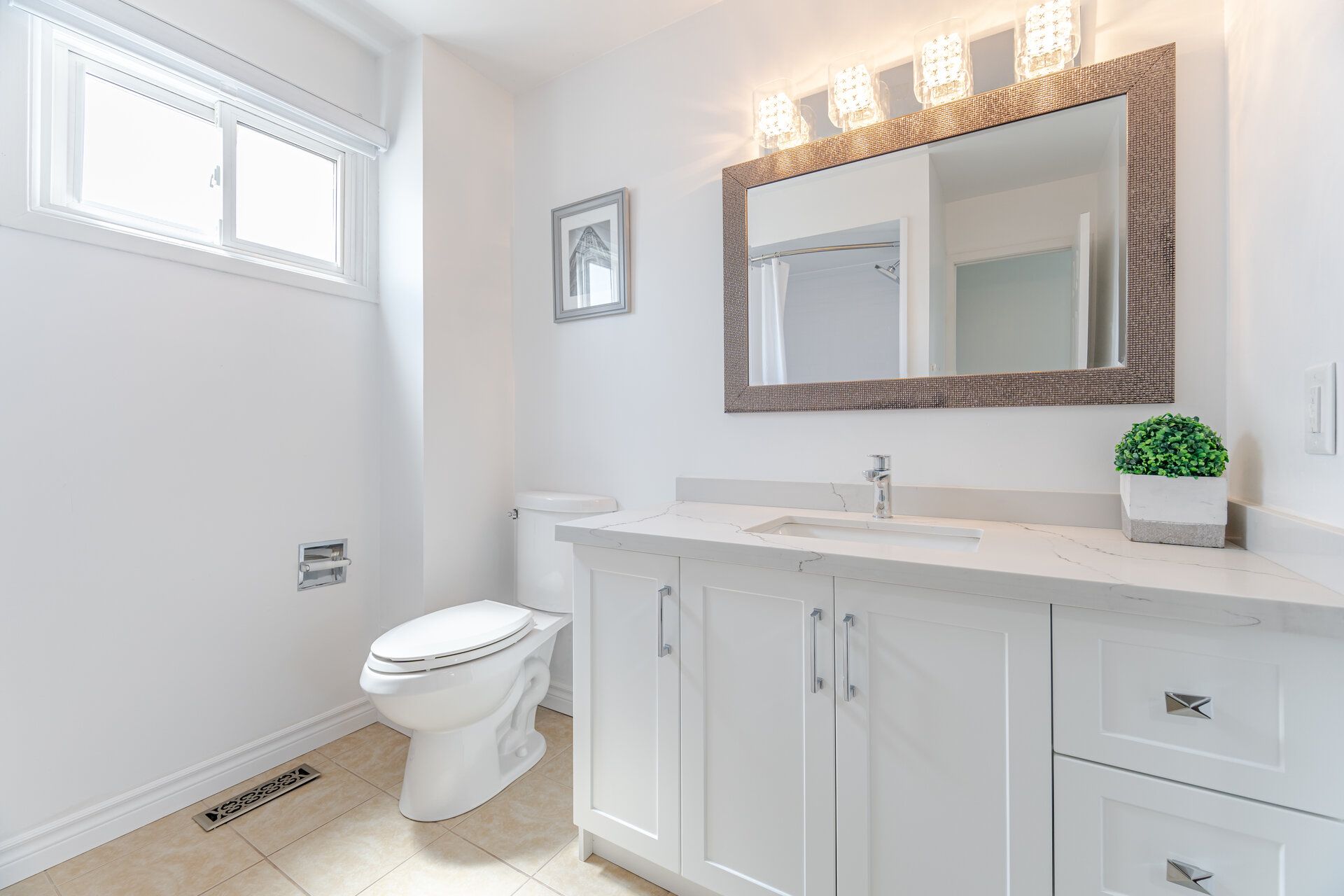 • New kitchen with stainless steel appliances and quartz countertops for easy cooking.