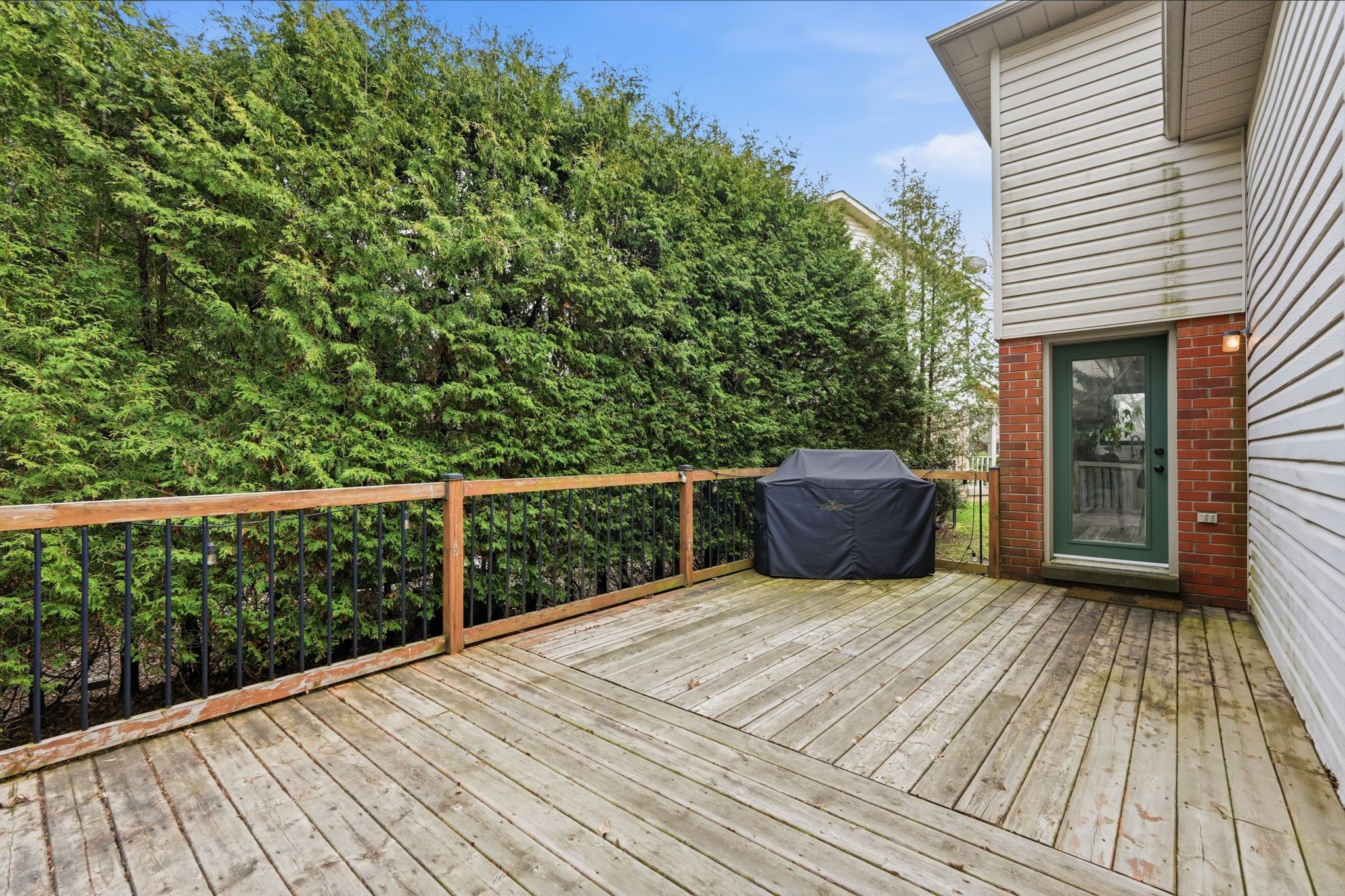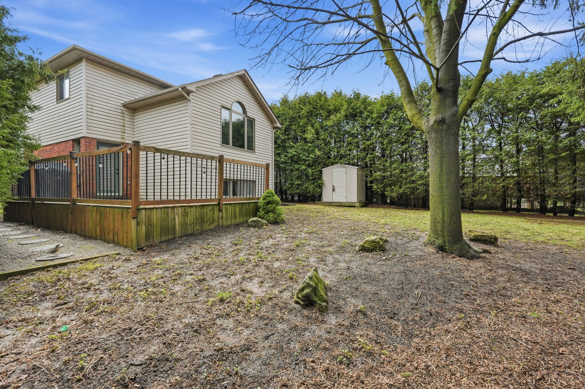 Step into a beautifully maintained three-bedroom, two and a half-bathroom, five-level backsplit in one of waterdown's most sought-after west-end neighbourhoods, offering a perfect blend of comfort, style and versatility for modern family living. The main floor features a bright, white kitchen with quartz countertops and a french door leading to a spacious deck, ideal for outdoor dining and entertaining, along with a formal dining room with hardwood flooring, convenient main-floor laundry with garage access and a beautifully updated powder room (2026). A few steps up, the inviting living room showcases vaulted ceilings, a cozy natural gas fireplace and an open view over the kitchen and dining areas, creating a warm, light-filled atmosphere. Upstairs, the generous primary suite includes a five-piece ensuite and walk-in closet, complemented by two additional bedrooms and a refreshed four-piece main bathroom. The lower level offers large above-grade windows and a bright, flexible space currently used as a home office, perfect as well for a family room or play area, while the unfinished basement provides ample storage and potential for additional living space. Set on a fantastic pie-shaped lot (35. 07 x 141. 93), the oversized backyard is lined with mature cedar trees for exceptional privacy and features a large wood deck perfect for relaxing or entertaining. Situated on a quiet crescent in a family-friendly community, this home is within walking distance to schools, the ymca, parks, shopping and everyday amenities, making it an exceptional opportunity for anyone seeking both convenience and lifestyle. Rsa.