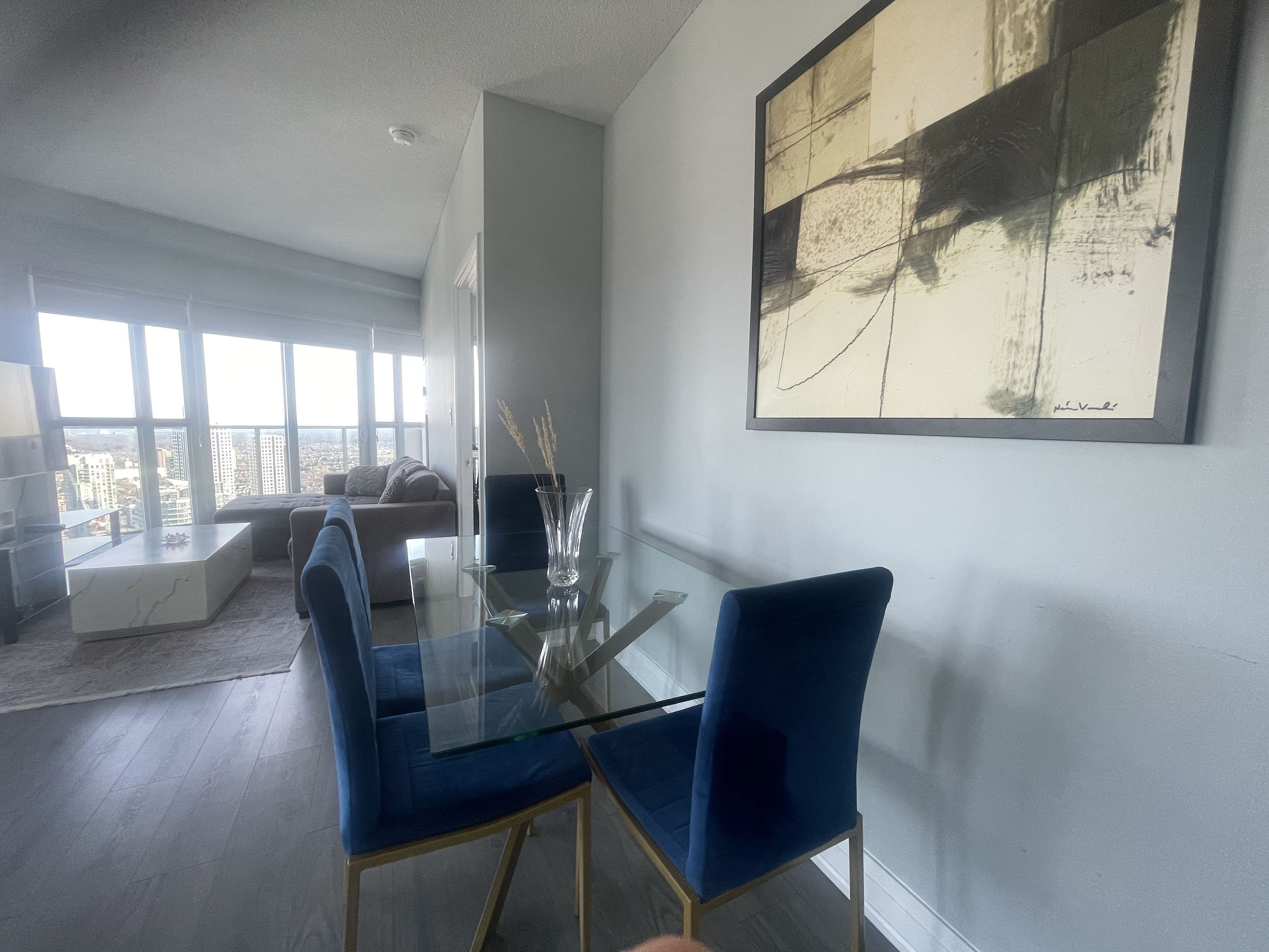 • Fully furnished 2 bedroom + den suite on the 46th floor with stunning views.
