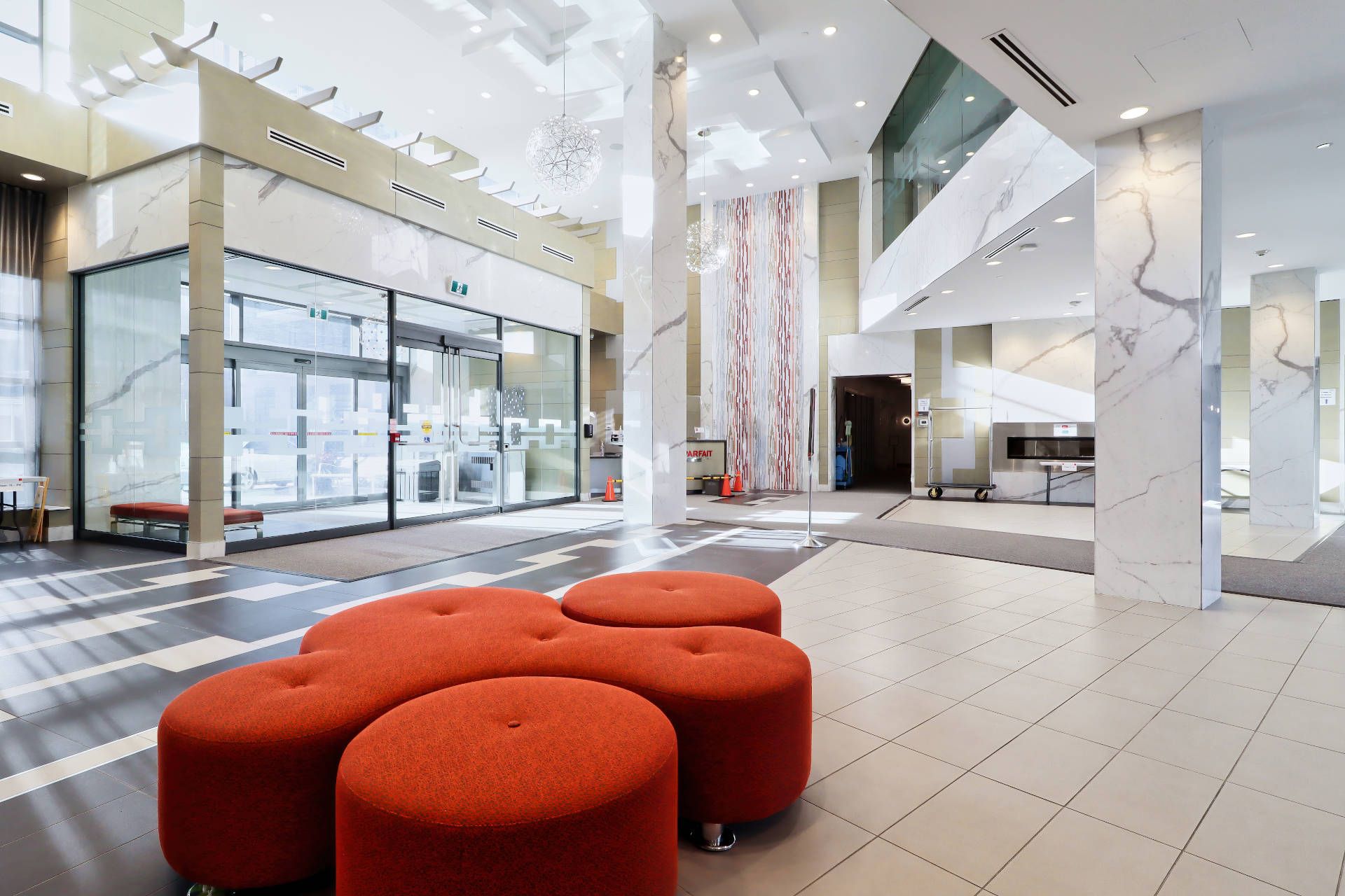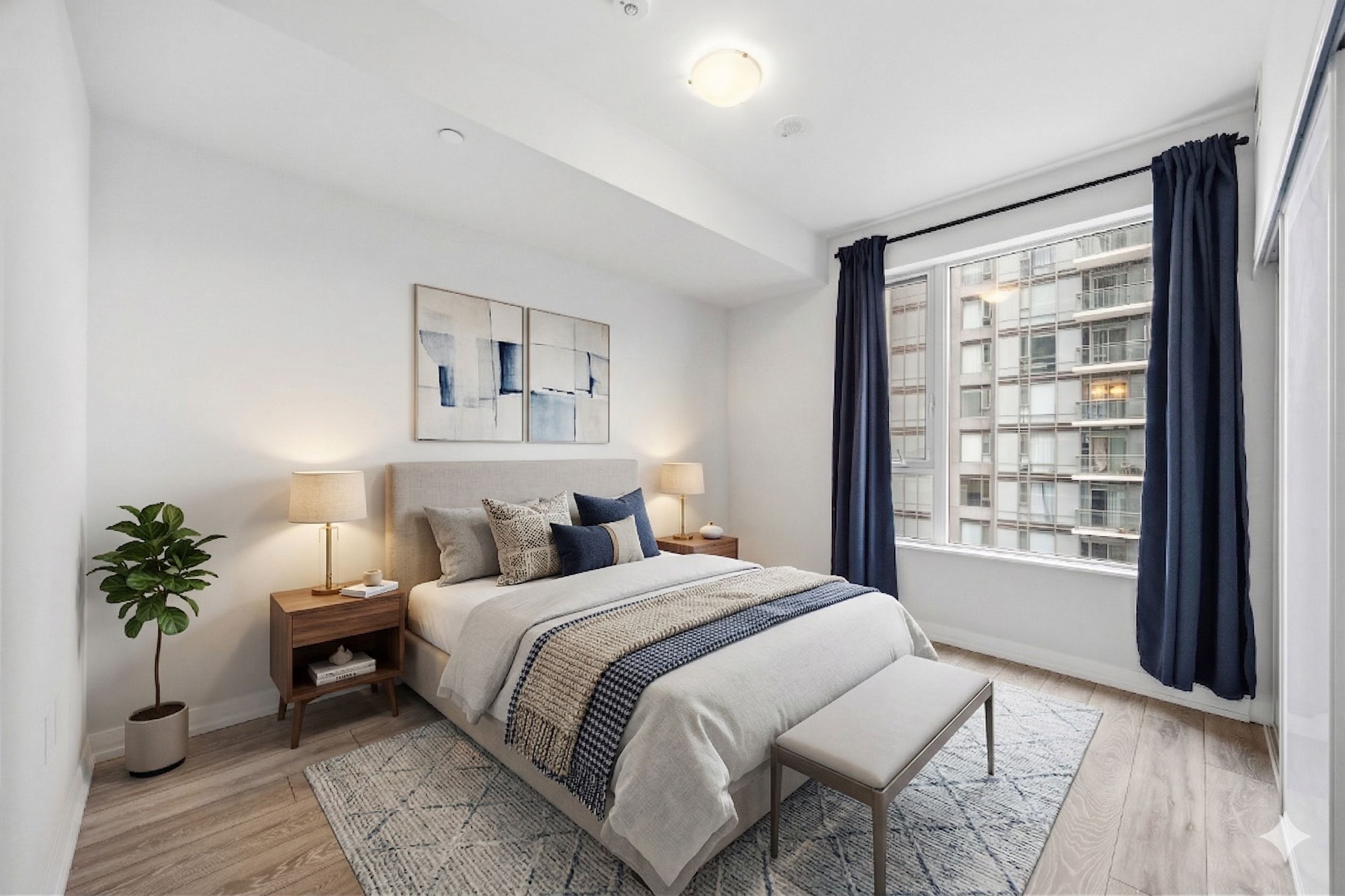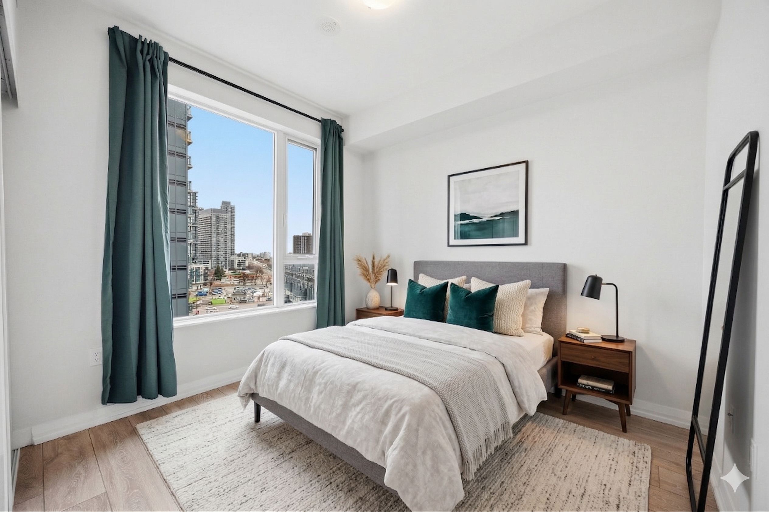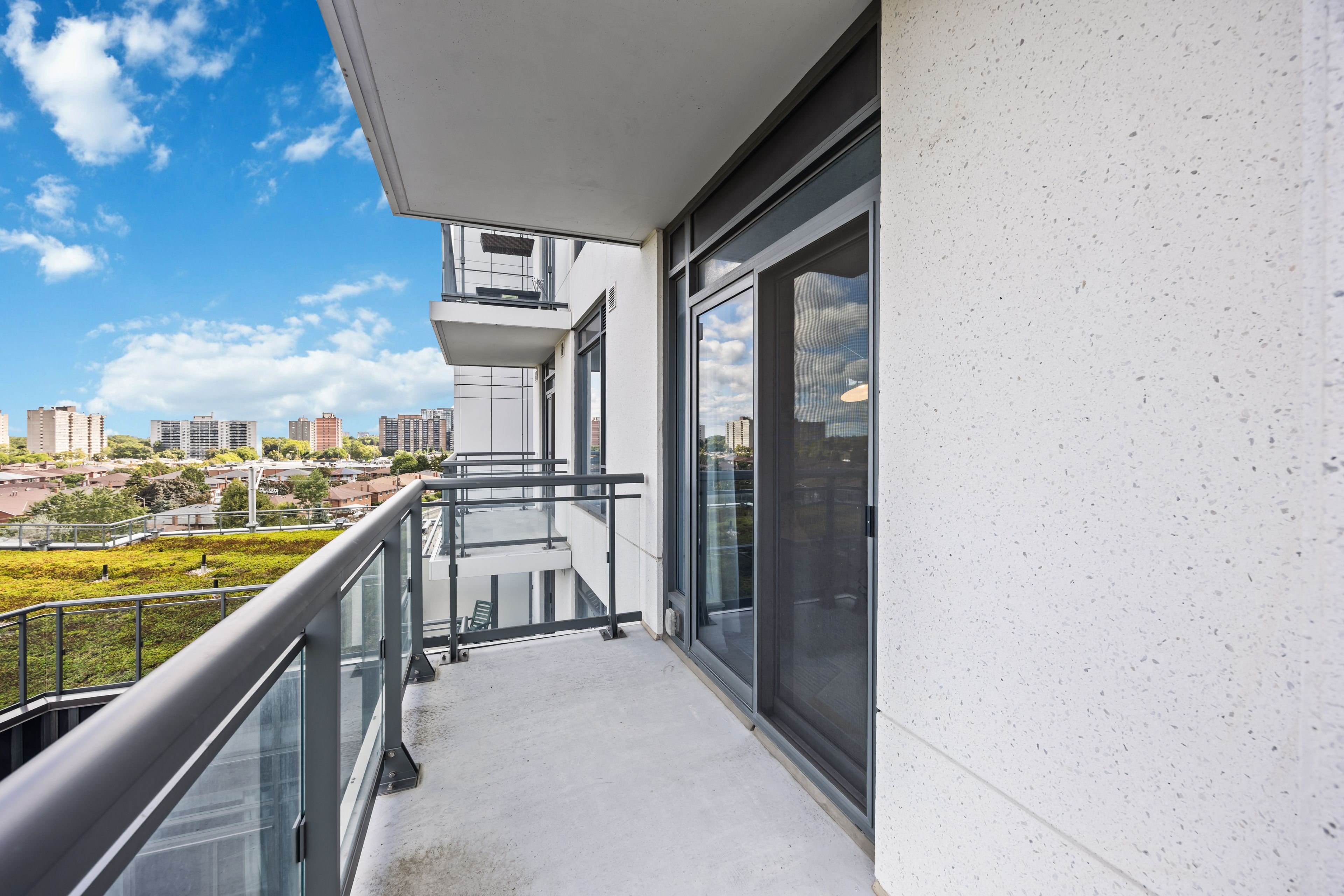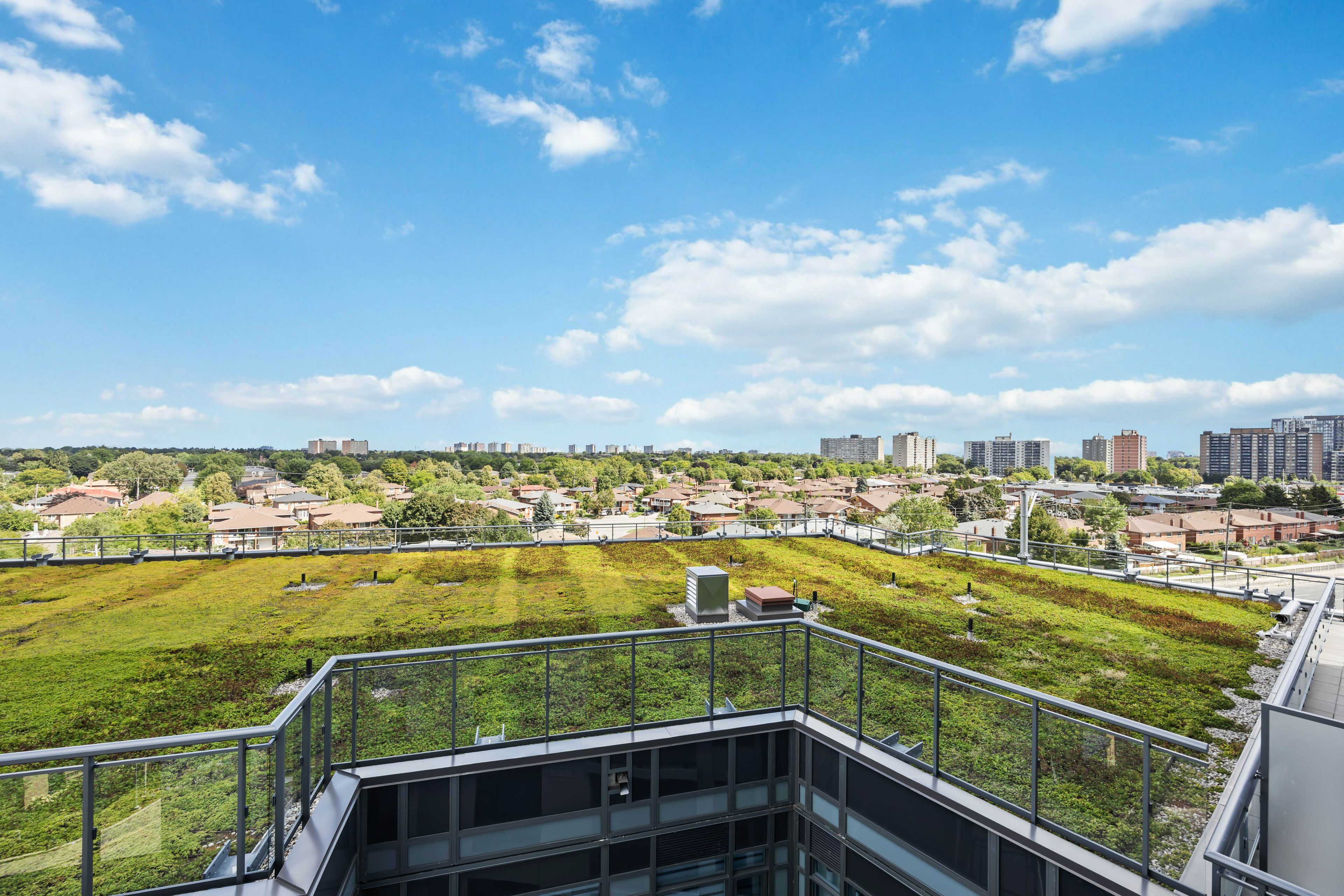 • Bright corner suite with 9-ft ceilings and stunning north view.