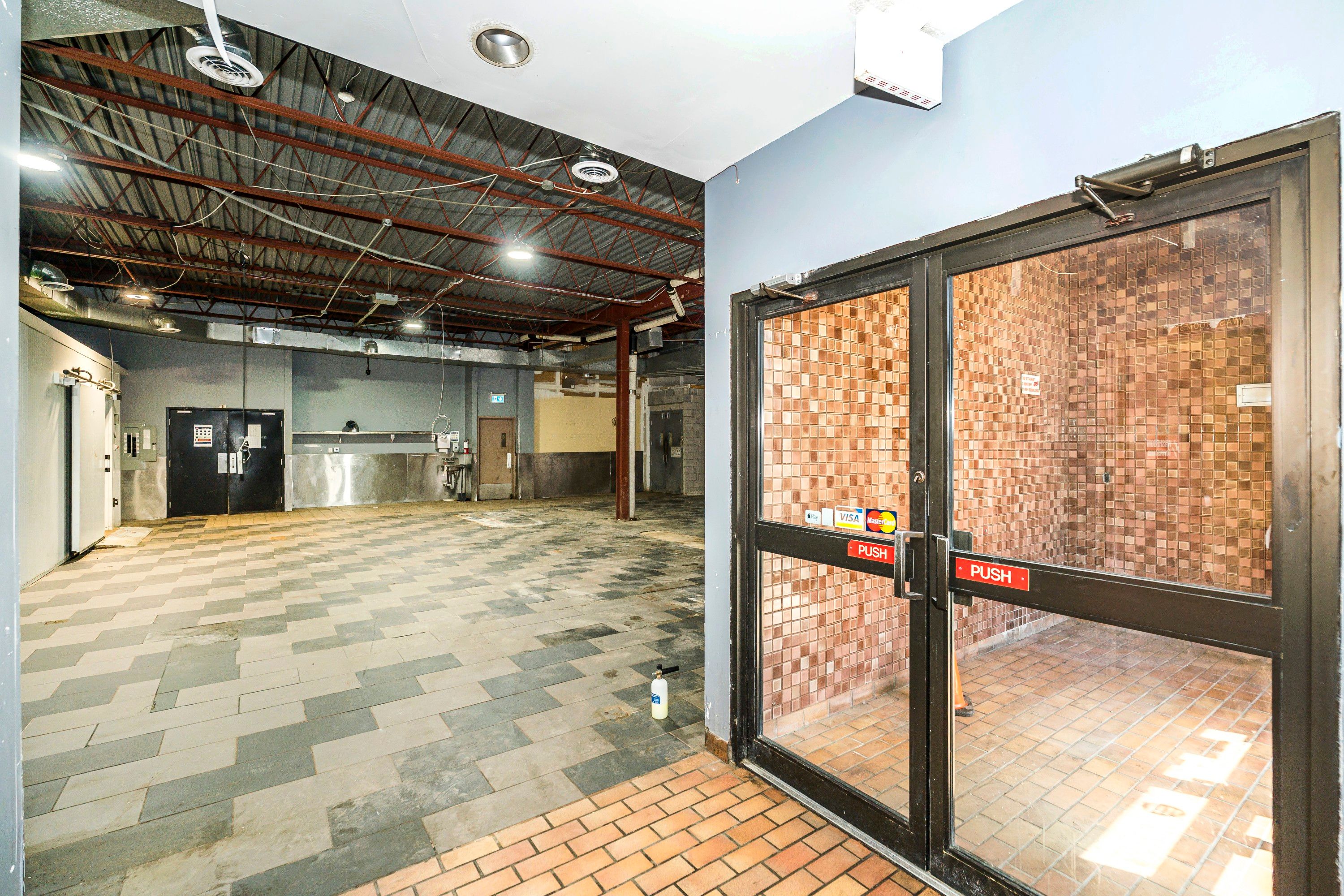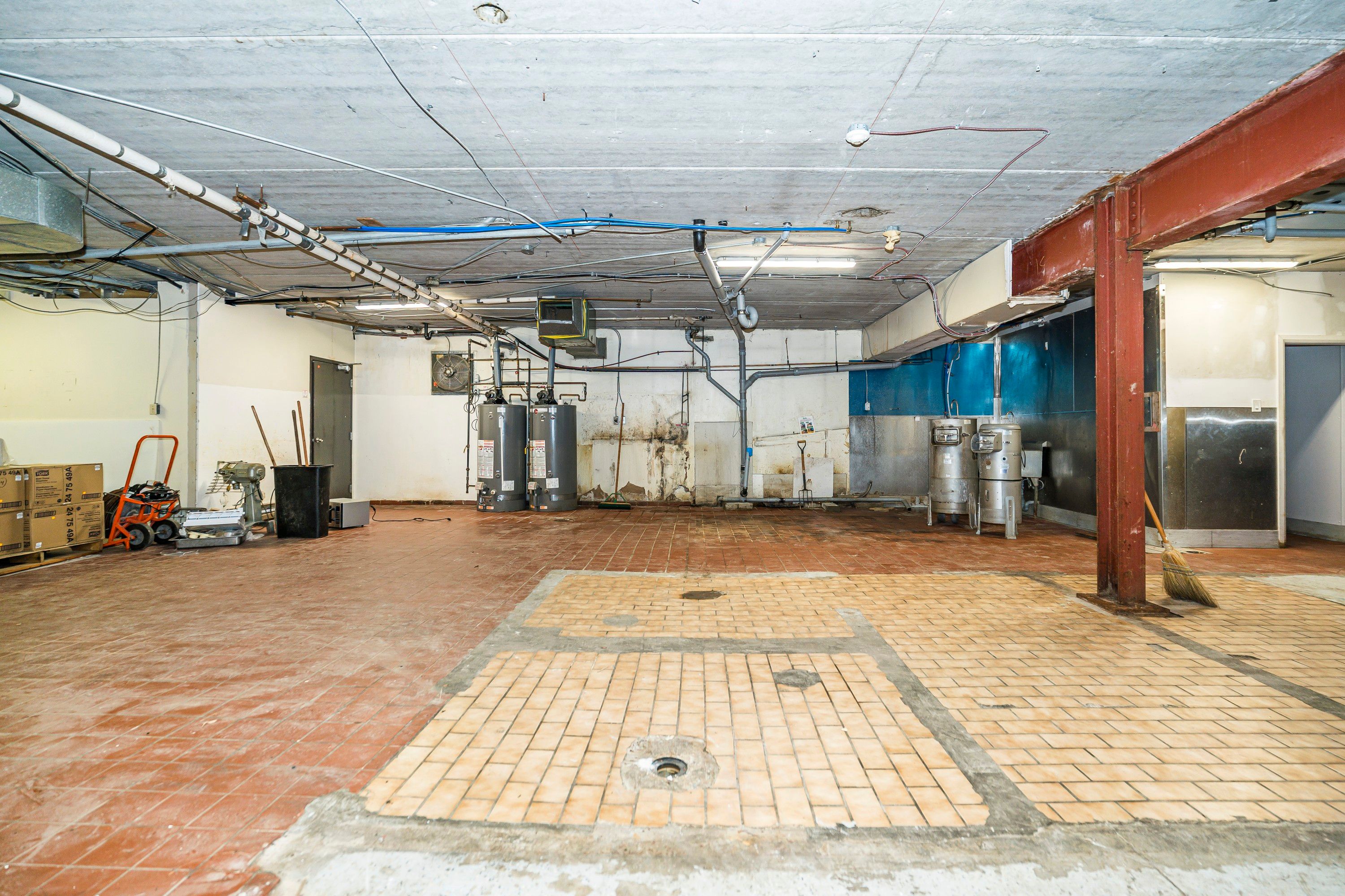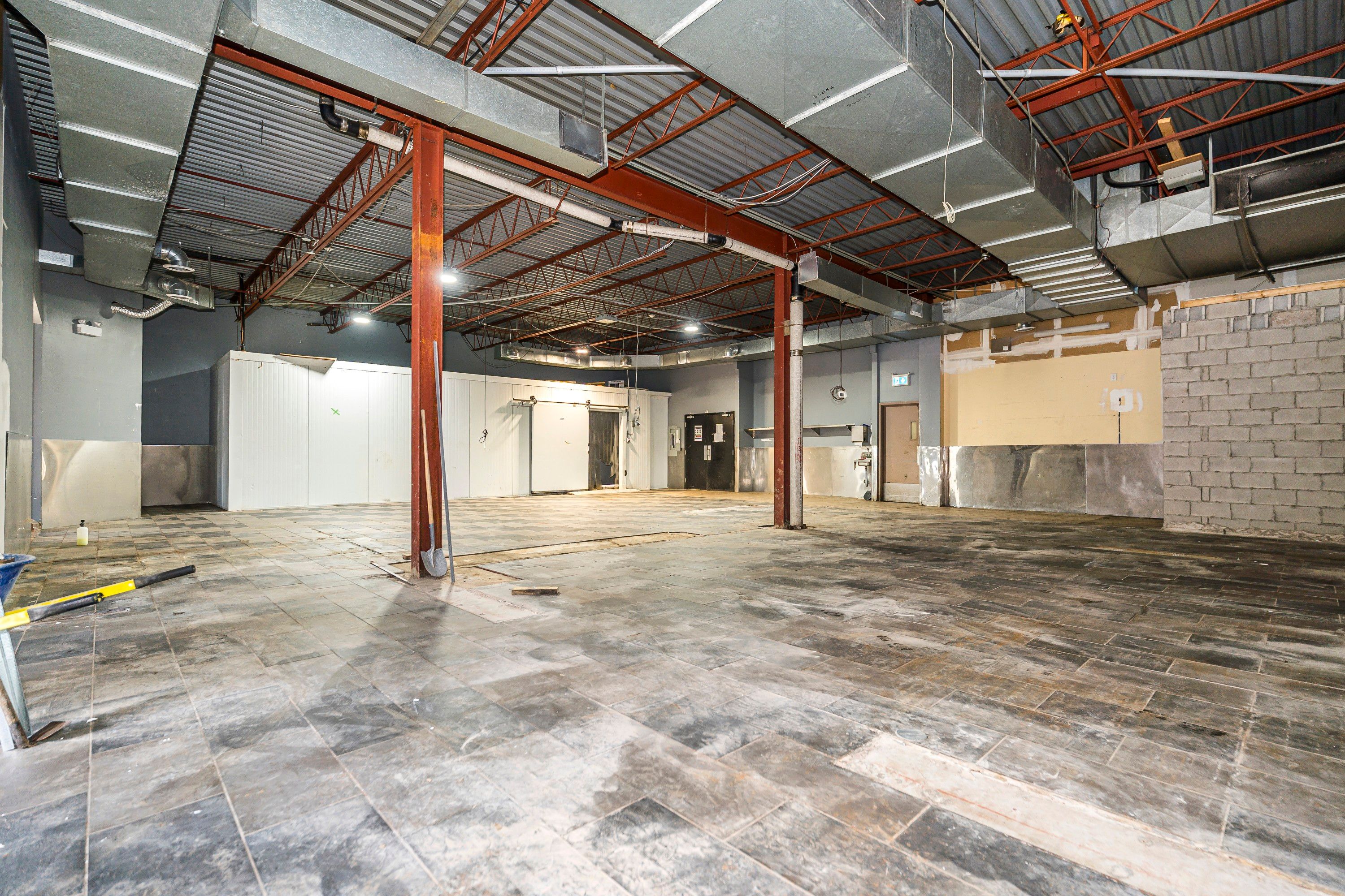• Existing infrastructure includes a walk-in cooler for food-related operations.