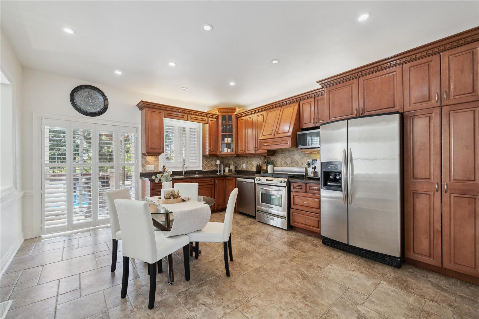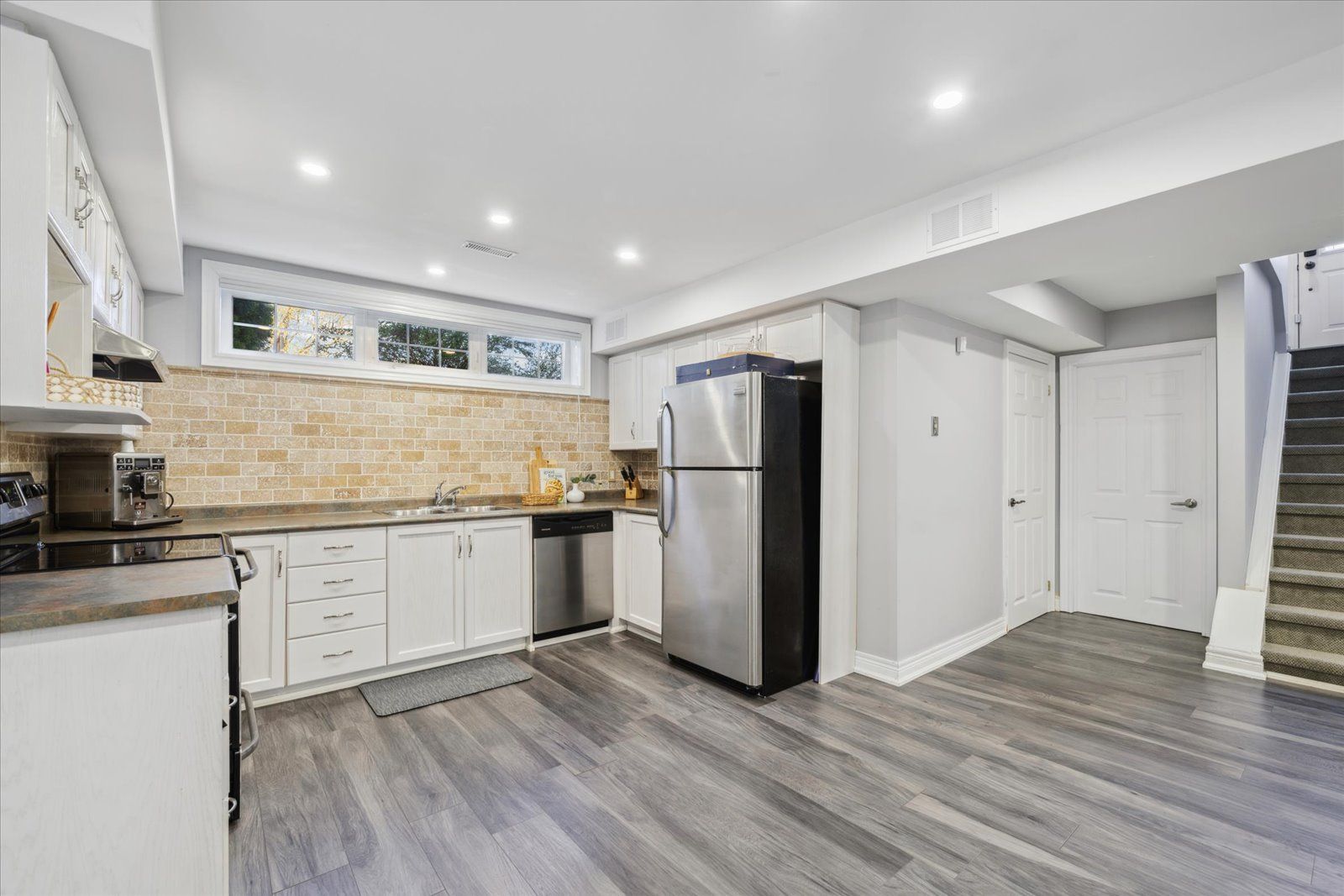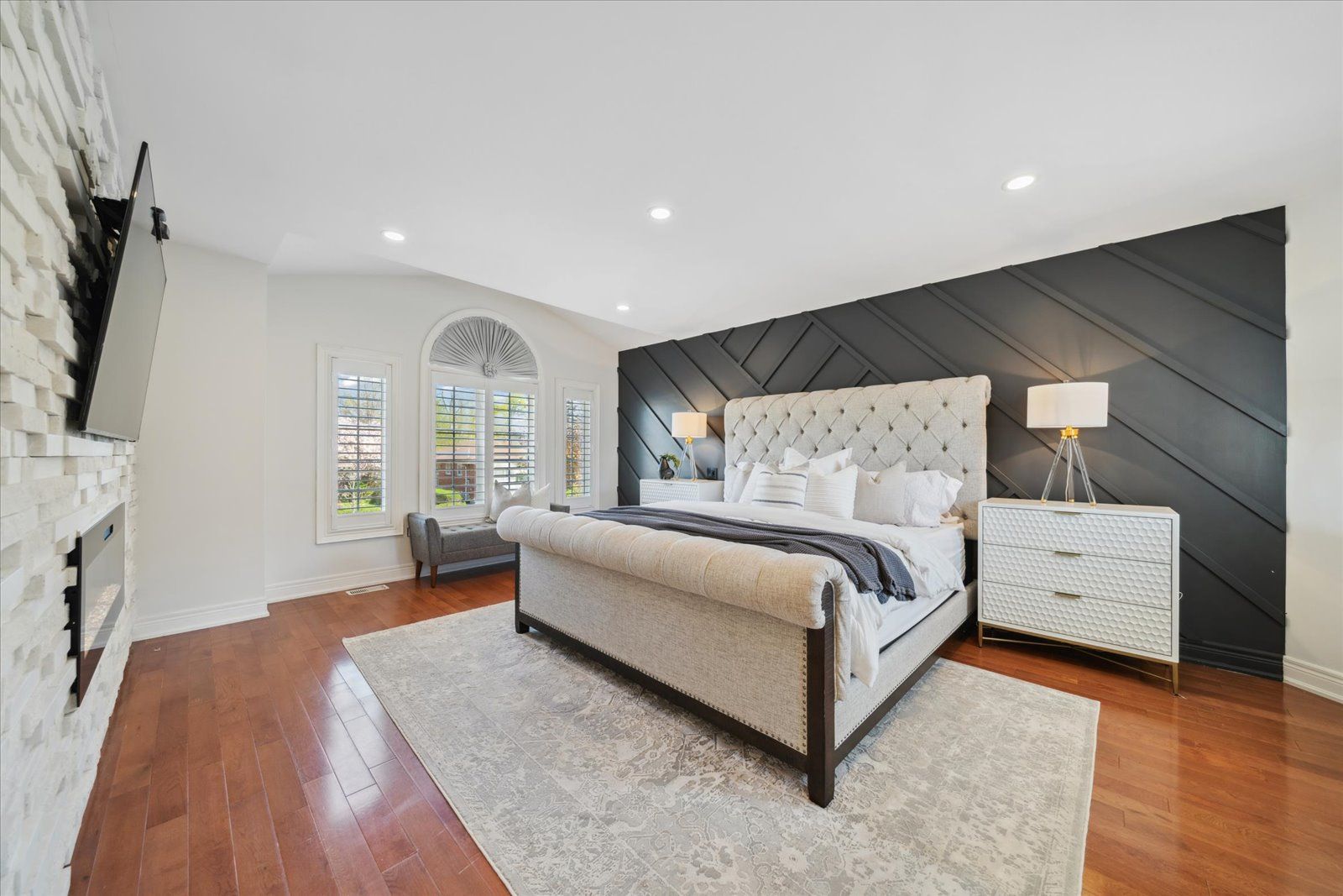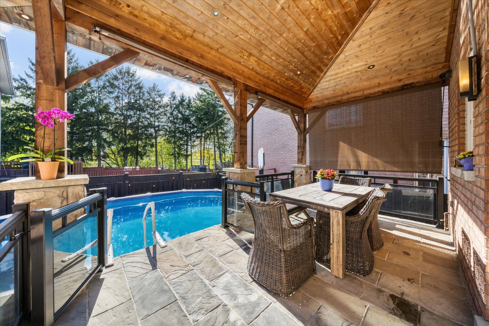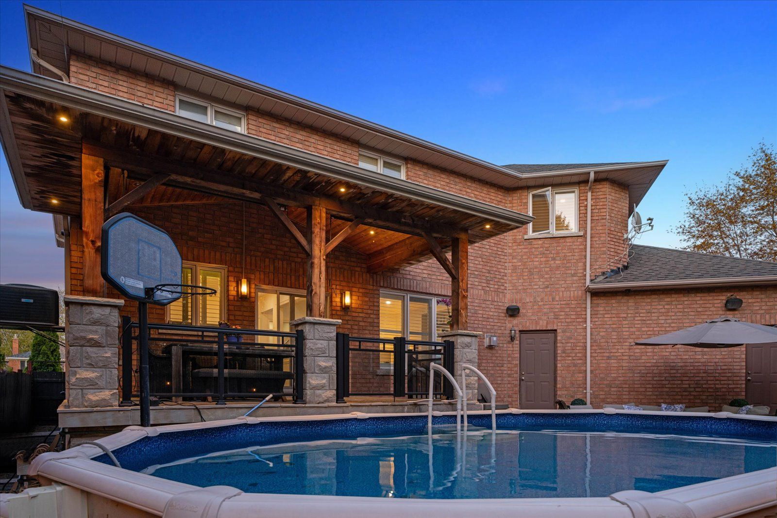 Welcome to this custom built all brick and stone home with exceptional curb appeal and premium finishes throughout. Featuring elegant soffit lighting and an oversized double car garage complete with a car hoist a dream setup for auto enthusiasts. Professionally landscaped with an irrigation system in the front yard and side of the driveway near the garage for easy maintenance. Step into the gourmet kitchen with real wood cabinets, travertine flooring, built-in stainless steel appliances, and a walkout to a fully landscaped backyard oasis. The backyard includes a covered cabana with a large storage area beneath, an above ground pool, and a fully interlocked patio - perfect for entertaining. This thoughtfully designed home boasts a renovated basement with a bright and spacious in-law suite featuring laminate flooring, a fireplace, a full laundry room, and a private entrance - ideal for extended family or potential rental income. The main floor offers a beautiful mud room with laundry and a separate shower for added convenience. Enjoy formal dining beneath a coffered ceiling, surrounded by new wainscoting and stunning handcrafted plaster ceiling details found throughout the home. Wired speakers run throughout the house for seamless audio, while high-end security cameras can be monitored on your devices and tvs for peace of mind. The master bedroom retreat features a striking stone feature wall with a built-in electric fireplace and a walk-in closet. Additional highlights include new pot lights throughout, california shutters, and fresh paint from top to bottom. Conveniently located close to schools, parks, shopping, transit, and all amenities. This one-of-a-kind property truly has it all!