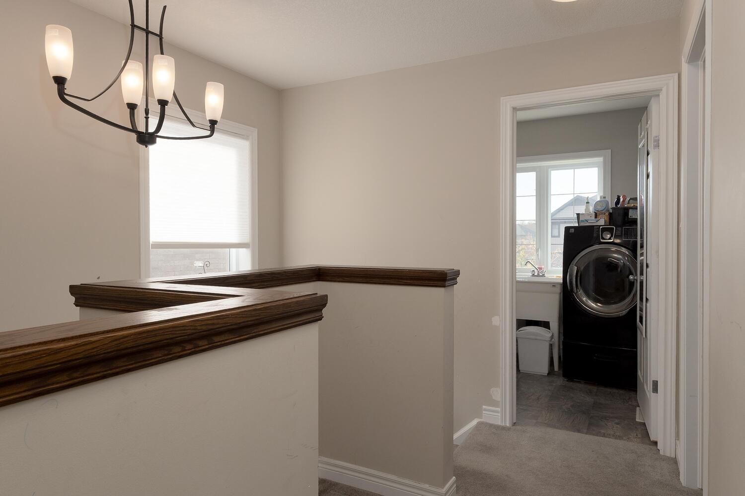 • Partially finished basement ready for customization with bathroom rough-in.