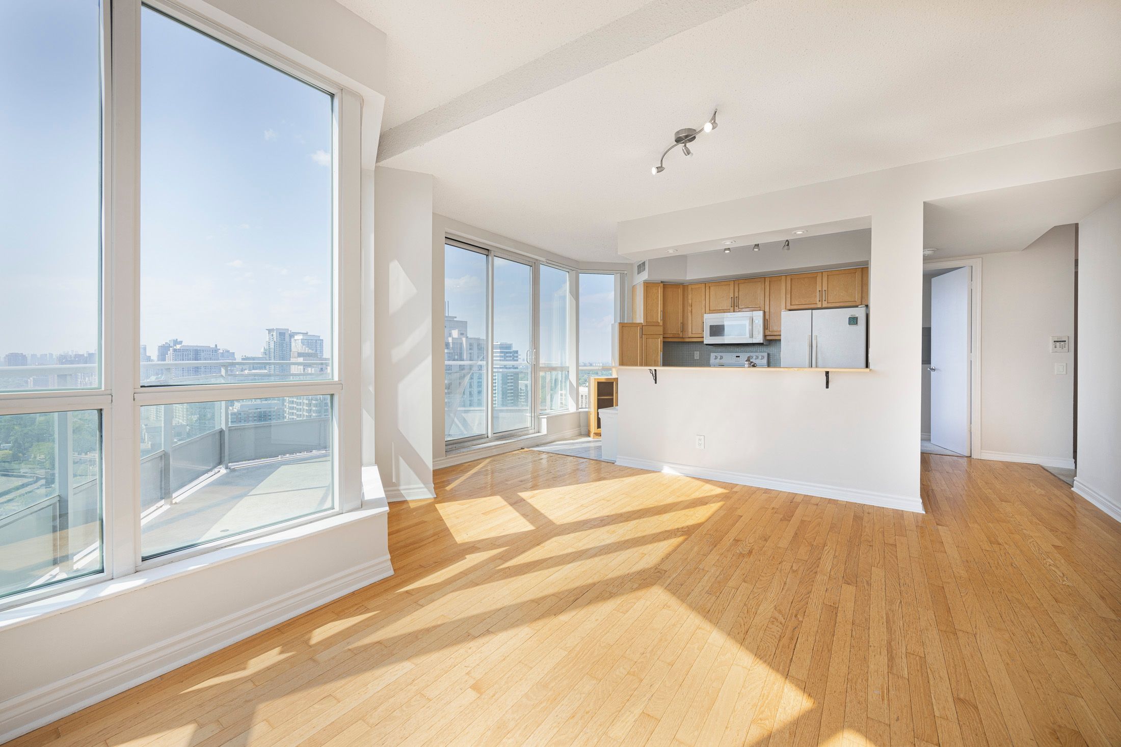Experience the perfect blend of comfort and style at the "monet" building, beautifully situated in the lively heart of north york. This stunning sub-penthouse corner unit boasts awe-inspiring south-east views that stretch from downtown toronto's skyline and the iconic cn tower to the peaceful expanse of lake ontario - and on those clear days, you might even catch a glimpse of the misty beauty of niagara falls! Step into a bright, inviting space where expansive floor-to-ceiling windows fill the kitchen, living, and dining areas, as well as both bedrooms, with natural light. The wrap-around balcony offers a peaceful retreat for your morning coffee while enjoying panoramic urban views. The open kitchen with its utmost user-friendly design makes daily meal preparation and entertaining guests easy and fun. Both bedrooms are generously sized and include ample closet storage, while the cozy primary bedroom features a 4-piece ensuite bathroom for your convenience. Throughout the open concept area, warm hardwood floors create an elegant atmosphere, complemented by a versatile den that offers plentiful space for work or relaxation. All this in a very community oriented building with a wide range of amenities and activities! Welcome tours, winter/summer parties, community bbqs, 24/7 concierge, indoor pool, gym & rec center, ping-pong & pool table, party room, family room, media room, business center, library, guest suite, visitor parking, the list goes on... This building's prime location, just a short walk from yonge-finch subway station, york region transit, and finch go station, ensures you are at the center of a thriving community with shopping, dining, entertainment, and cultural attractions. Embrace the ease and excitement of urban living at the "monet", and schedule your viewing today!