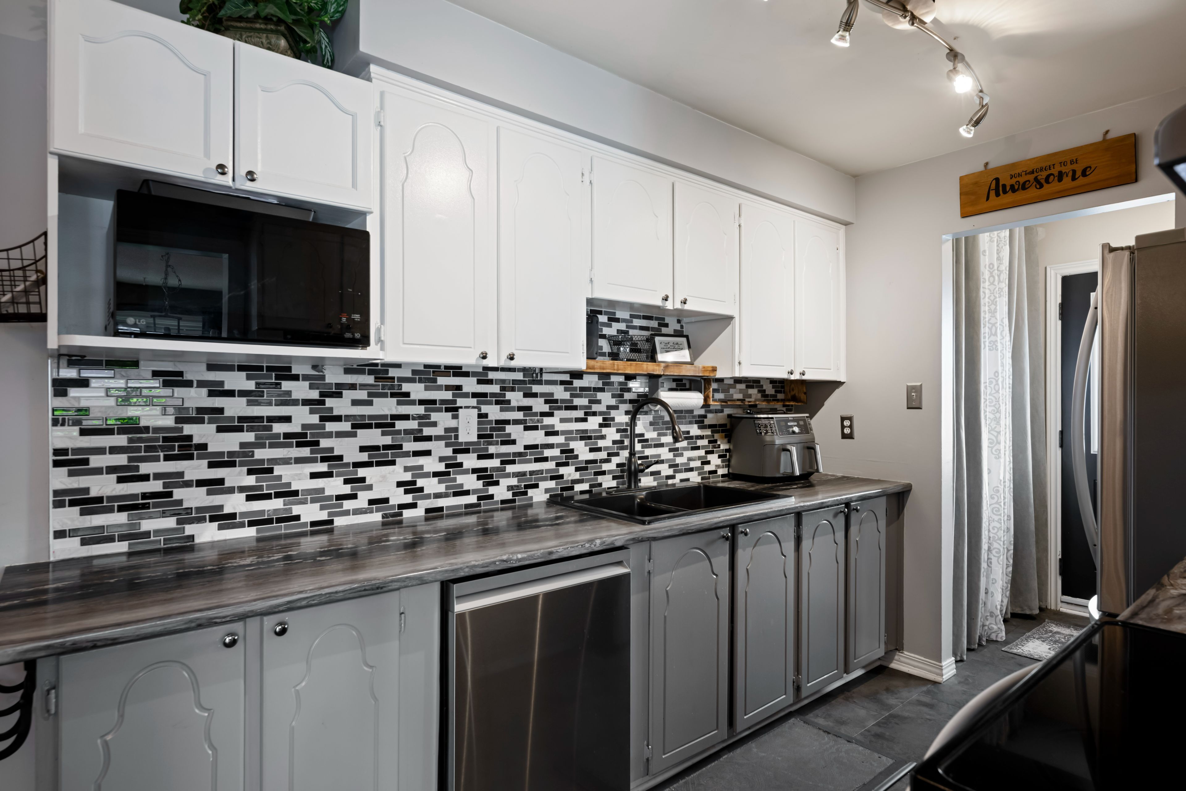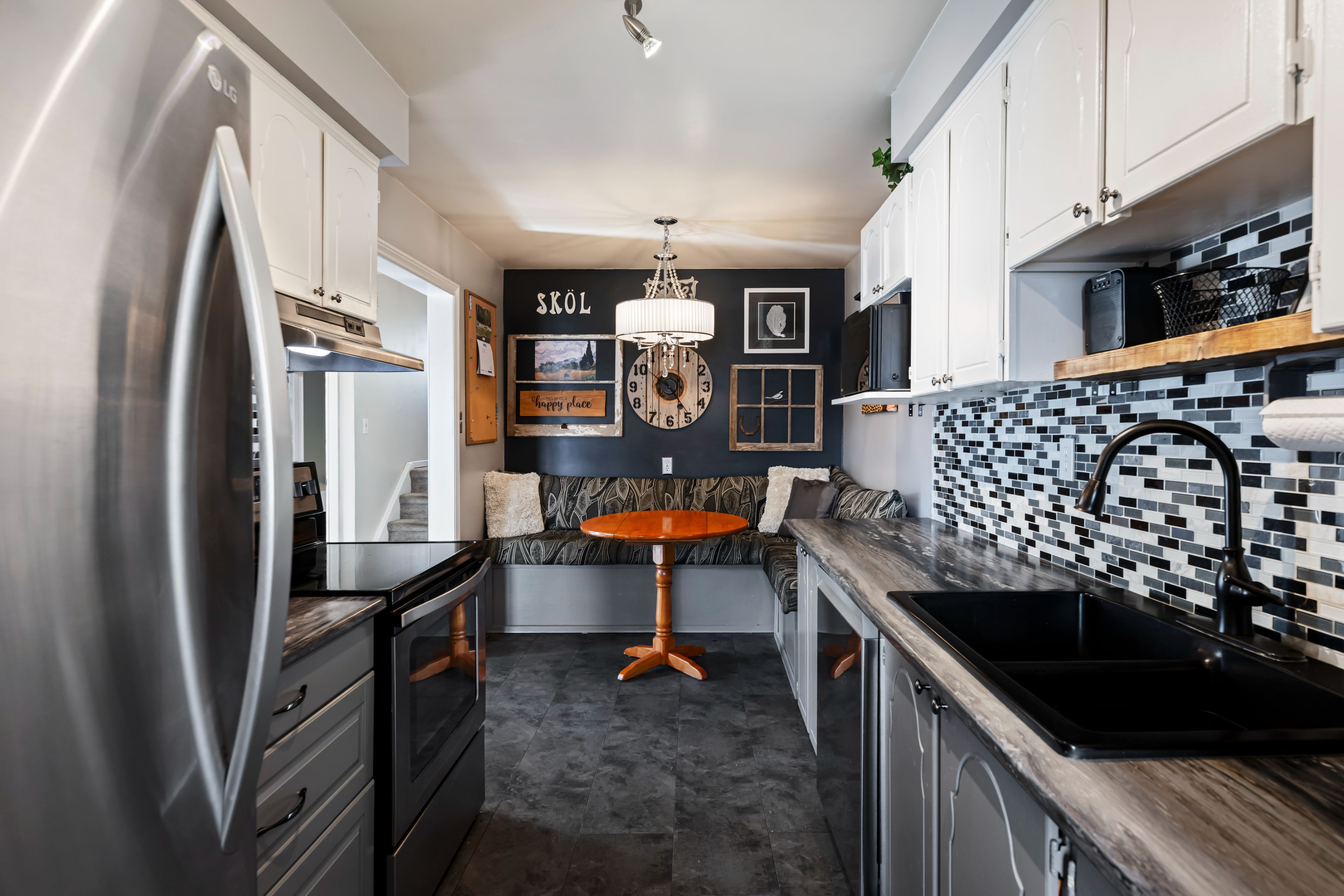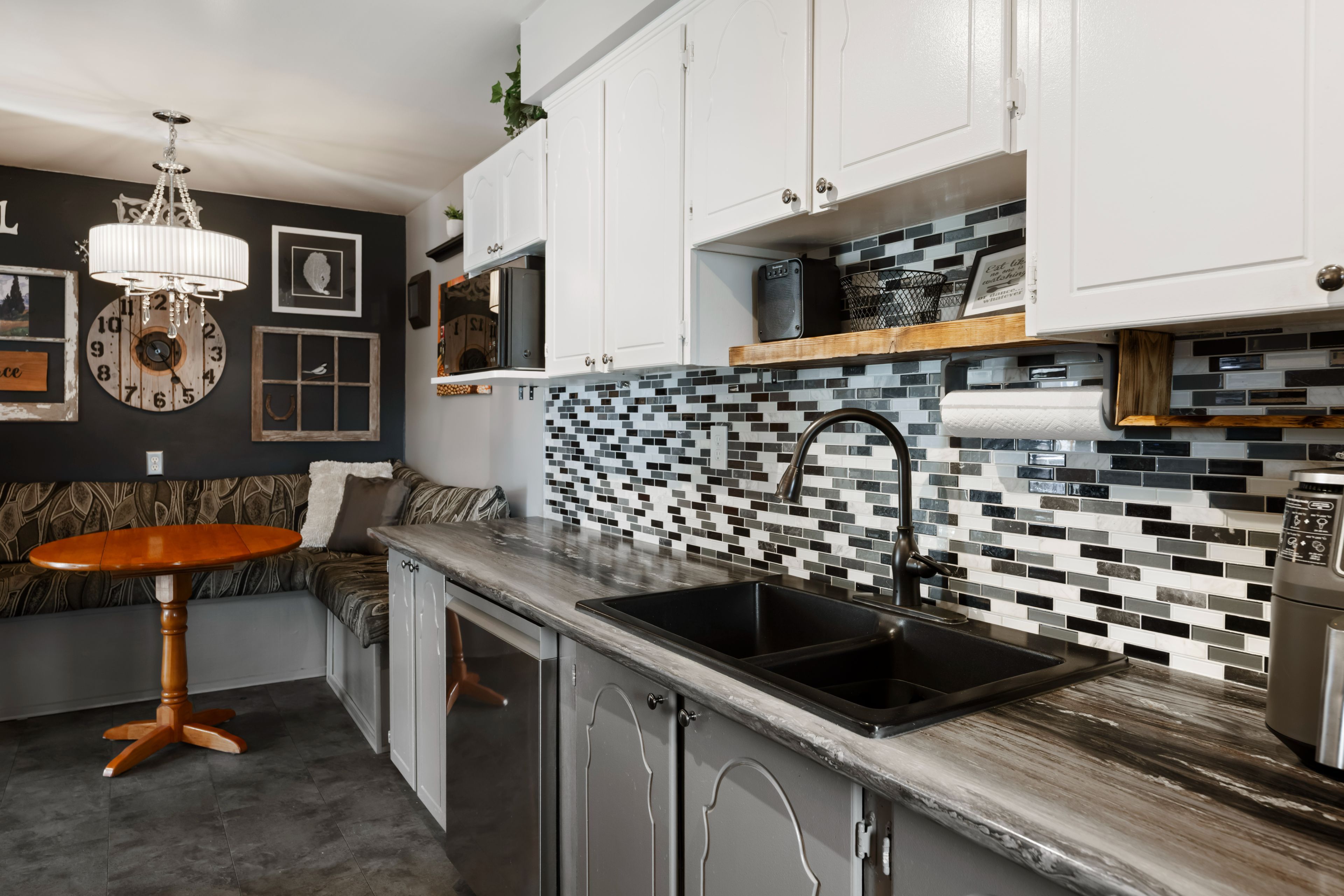 • Eat-in kitchen with dining room and cozy living area nearby.