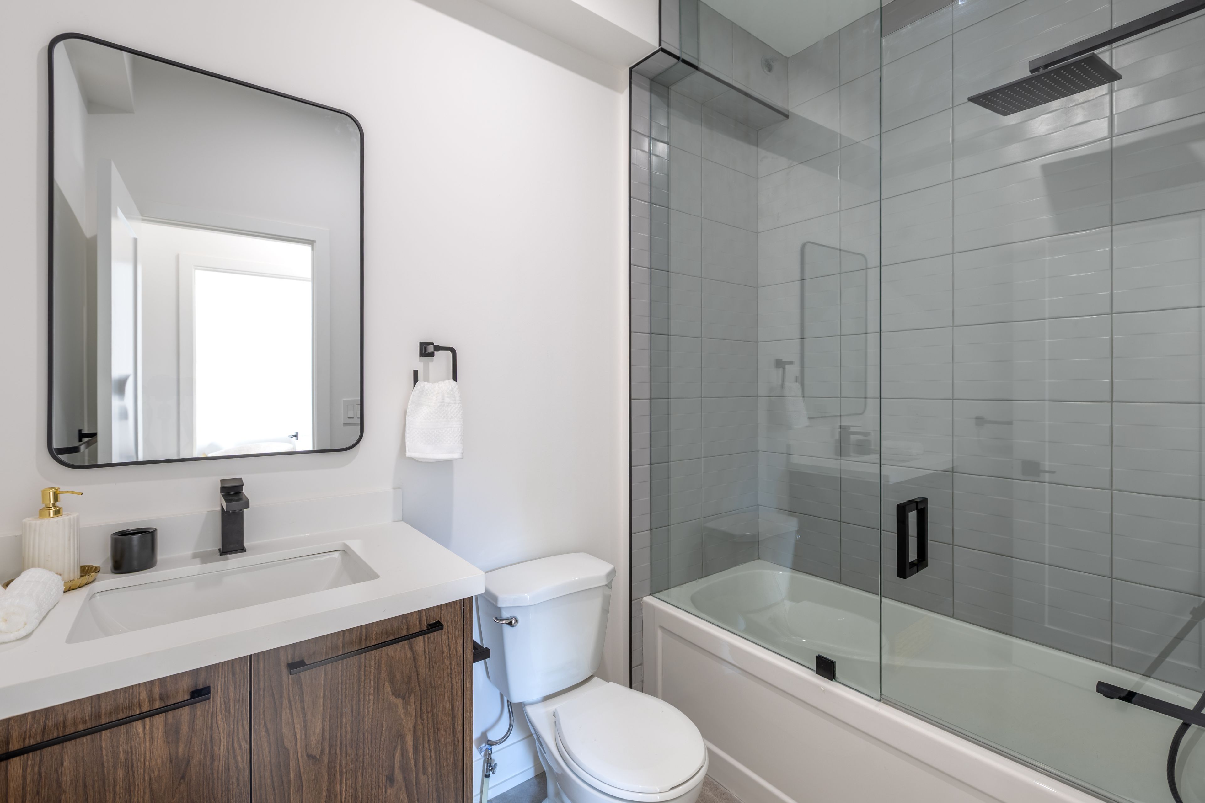 Your next move starts here. Limited time offer: $3,300 per month for your first year! (rental amount equivalent to two months free rent). Be the first to live in this brand-new, never-occupied suite, available now! Each suite showcases a modern kitchen with cream wood-finished cabinetry, quartz countertops, and full-sized stainless steel appliances. The primary ensuite offers double sinks and a free-standing tub for a touch of luxury. Highlights include durable vinyl flooring, a spacious walk-in closet, individual hydro and water meters, and access to a shared outdoor common area. With top-rated schools, humber bay park, lake ontario, the mimico go station, and major highways just minutes away, this suite delivers both lifestyle and convenience.